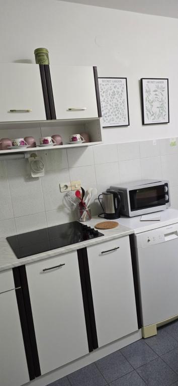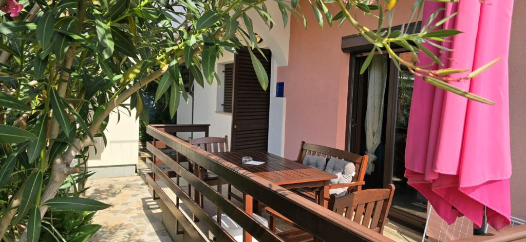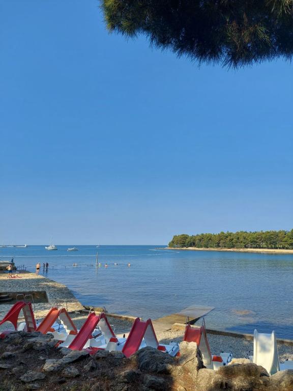 Gelegen in de directe omgeving van het strand, leunt het Marina-huis tegen een dennenbos en een pittoreske lange boulevard met uitzicht op het eindeloze blauw van de zee. Het leidt in de ene richting naar rustige stranden en verborgen baaien en in de andere richting door de jachthaven naar het centrum van de stad. Langs de boulevard zijn er restaurants, cafés, een kinderpark, sportvelden, tennisbanen, een minigolfbaan, een buitengymnastiek en een ecoplein met een groene vlag. De geur van dennenbomen, de zee en het zout geven het geheel een aangename en bijzondere sfeer. Huis Marina is de perfecte plek voor een rustige vakantie, maar desgewenst ook voor een actief verblijf in de natuur. Het interieur van het huis is ontworpen om klassieke en moderne stijl te combineren. Het gaat erom het comfort van de slaapkamer en andere ruimtes te maximaliseren. De appartementen zijn comfortabel en voorzien van moderne apparatuur. Elk appartement heeft een ruim terras waar gasten kunnen ontspannen. Op het erf van het huis is er een barbecueplaats en een parkeerplaats. Het is een minuut lopen naar het strand en 10 minuten naar het stadscentrum, langs de boulevard aan zee.