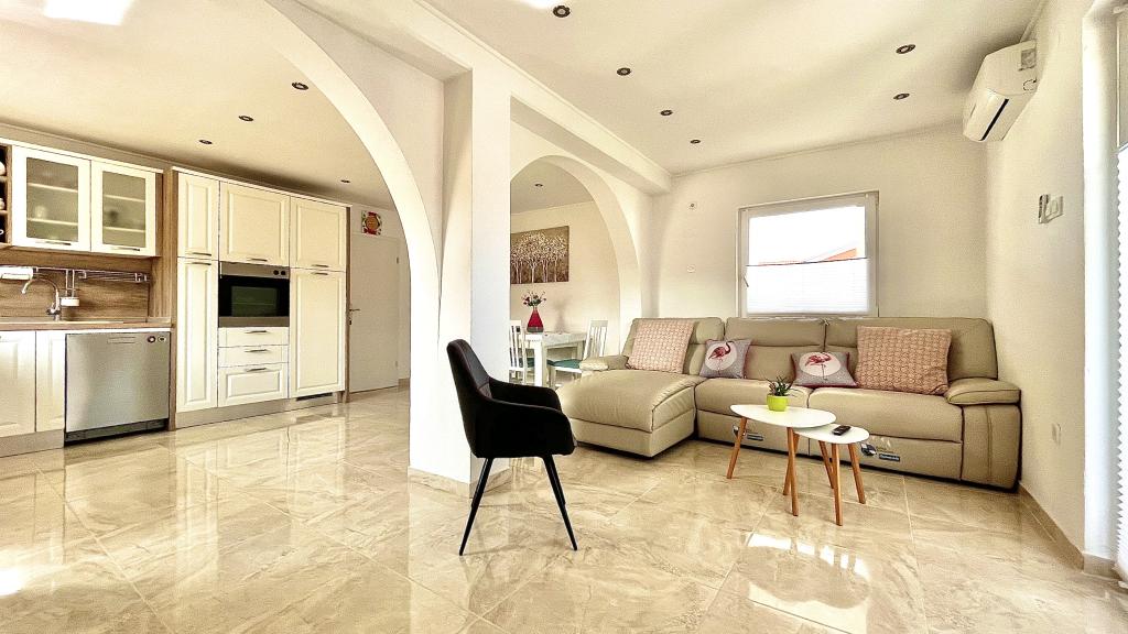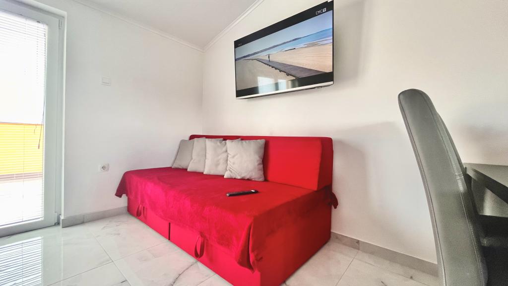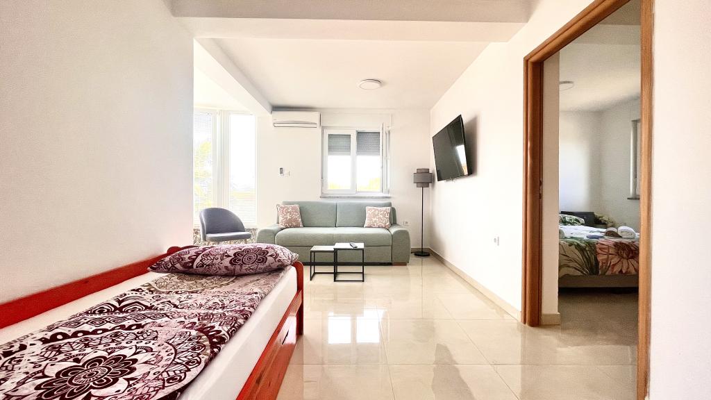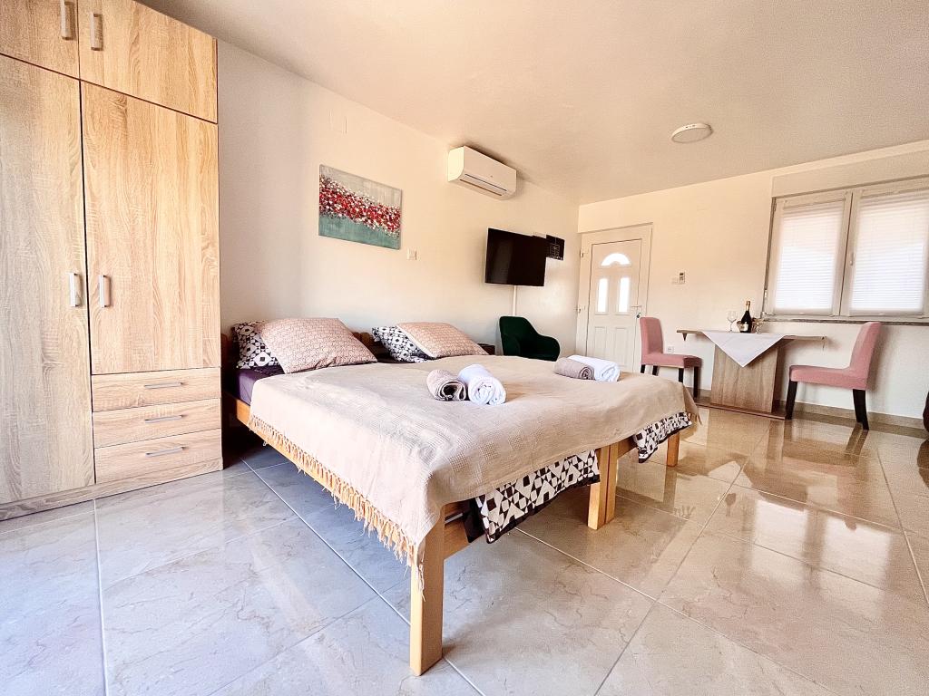4 appartementen te huur nabij Novigrad. Afstand van het strand en het centrum 1800m. De appartementen zijn nieuw, omgeven door wijngaarden en natuur. Er is een zwembad aan de voorkant van het huis. Wi-Fi, airconditioning, satelliet-tv. Op 2 km afstand ligt het grootste waterpark van Kroatië, Istralandia. Ideaal voor kinderen en jong van hart.