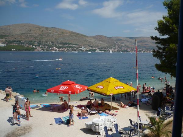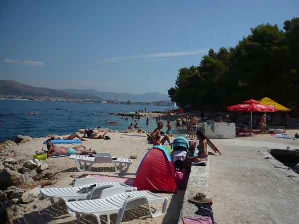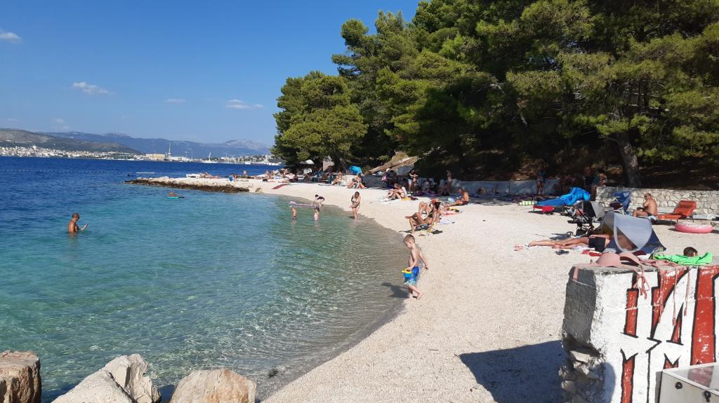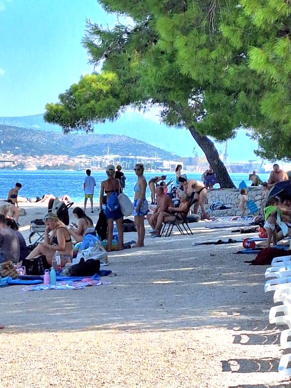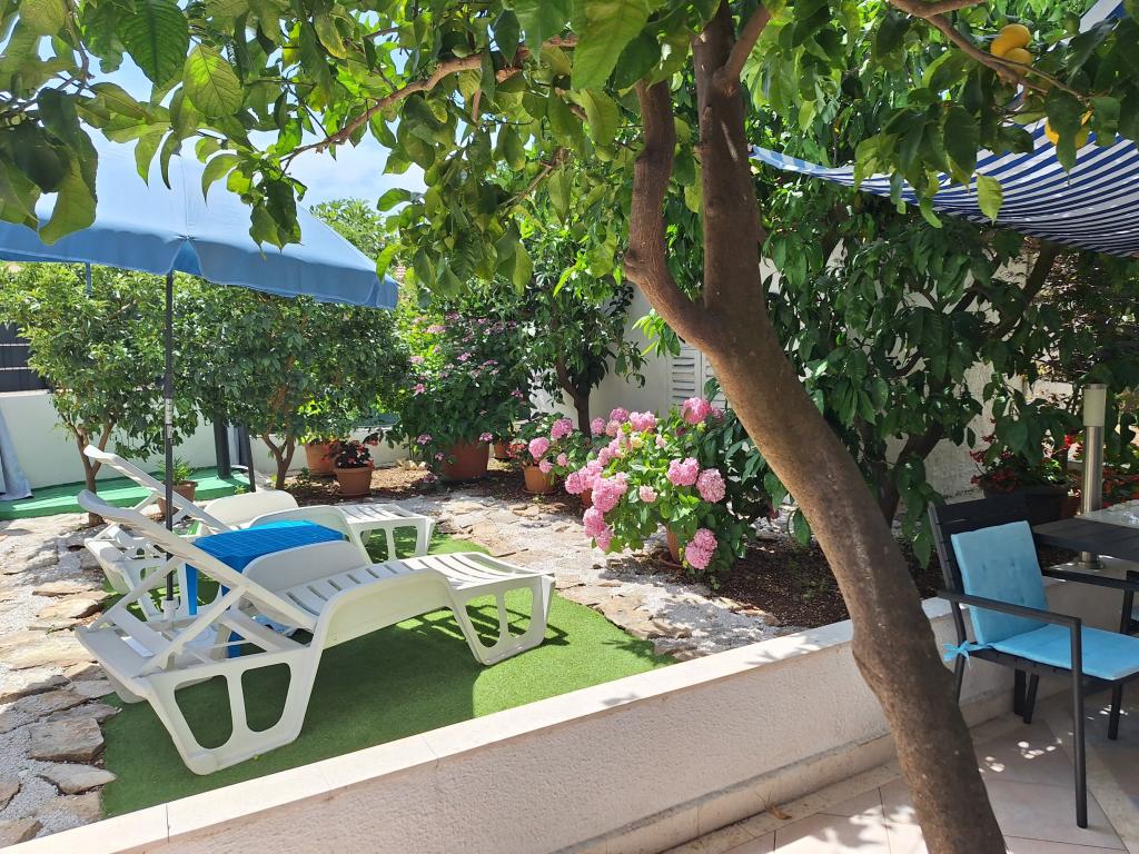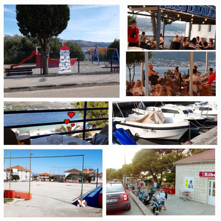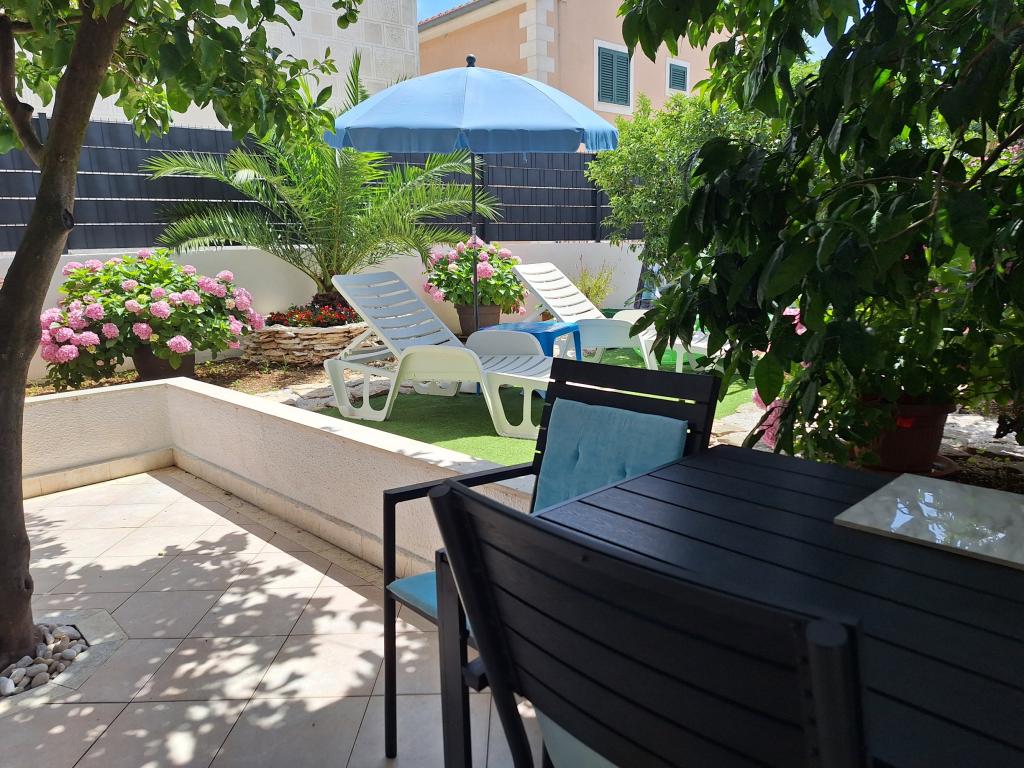 Uitstekend uitgerust (alles inbegrepen in de prijs, evenals de toeristenbelasting), ruim appartement Gizella, op de begane grond van een gezinswoning, met een terras, tuin en parkeerplaats, de locatie biedt een rustige, ontspannende familievakantie in de schaduw van sinaasappel-, citroen-, mandarijn- en prachtige dennenbossen, die uittorenen boven de kristalheldere zee, met de mogelijkheid om te wandelen en fietsen naast olijfgaarden en mediterrane geneeskrachtige planten. U bent de enige gasten in de faciliteit en u heeft een aparte ingang. Kiezel-, rots- en betonstranden, met parkeergelegenheid, winkels, cafés, restaurants, fastfoodrestaurants, kinder- en sportspeelplaatsen, bus en geldautomaat liggen op vijf tot zes minuten lopen. Tegelijkertijd, op slechts 8 km afstand, bieden de oude stad Trogir, onder de bescherming van UNESCO, verbonden door bruggen, dicht bij het Krka Nationaal Park, de eilanden Šolta en Brač, dynamische excursies en entertainment. De nabijheid van de luchthaven maakt uw aankomst gemakkelijker en het is mogelijk om een transfer te regelen. De plaats is klein, rustig en mooi. Wij wachten u vriendelijk op met een welkomstdrankje