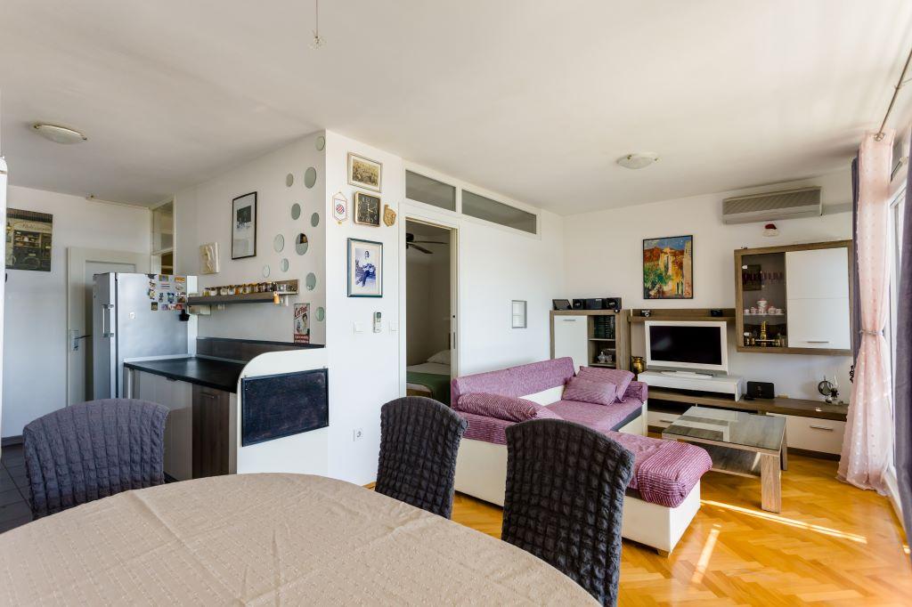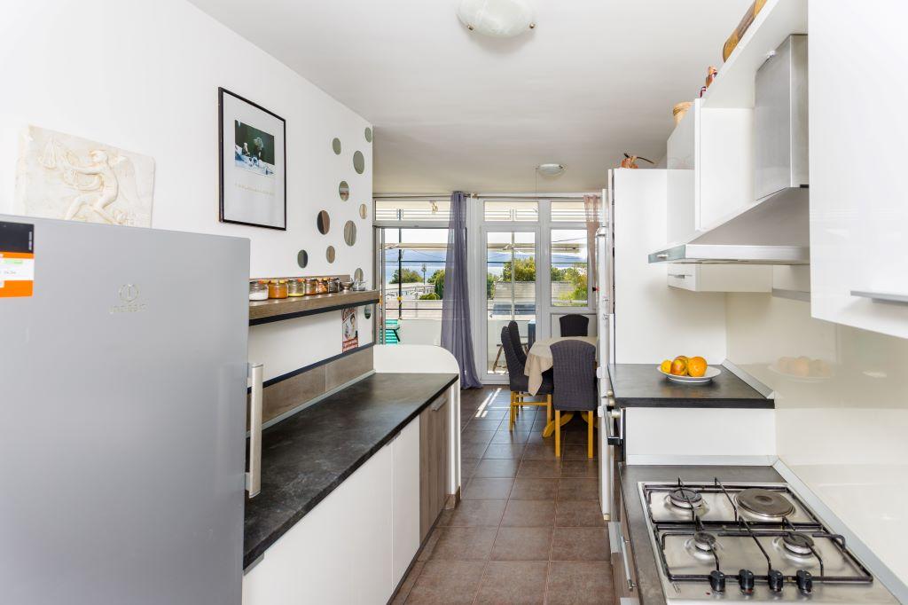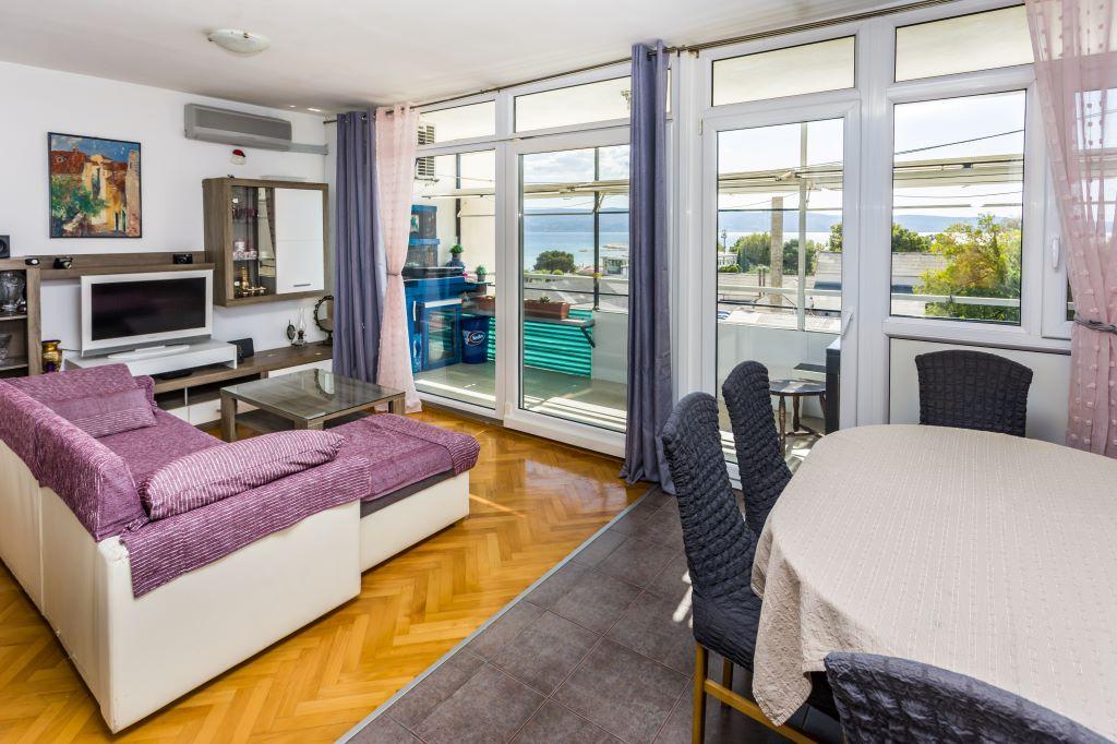 Het appartement ligt in het centrum van Omiš, direct aan zee en met een groot zandstrand. Het stadscentrum ligt op slechts enkele meters afstand, net als restaurants, markten, apotheken en alle andere voorzieningen. Bovendien ligt het vlak bij de rivier de Cetina, waardoor u van alle mogelijke activiteiten kunt genieten (raften, kajakken, ziplinen, quadtochten, boottochten...). Parkeren kan vlakbij het gebouw op de openbare parkeerplaats. De kosten hiervoor bedragen € 20,- per week. Het appartement is ruim, heeft 3 slaapkamers, een grote woonkamer met een grote slaapbank, 1,5 badkamer en een terras. Er is plaats voor 7 personen.