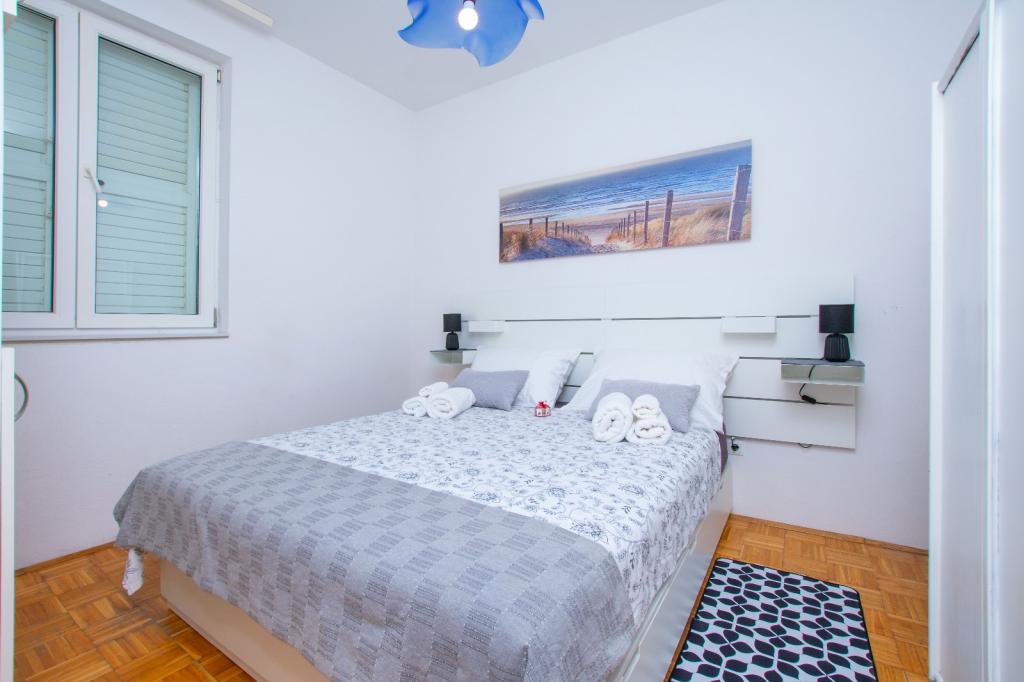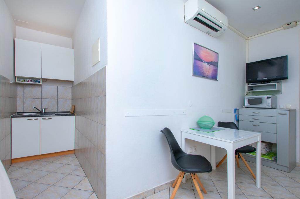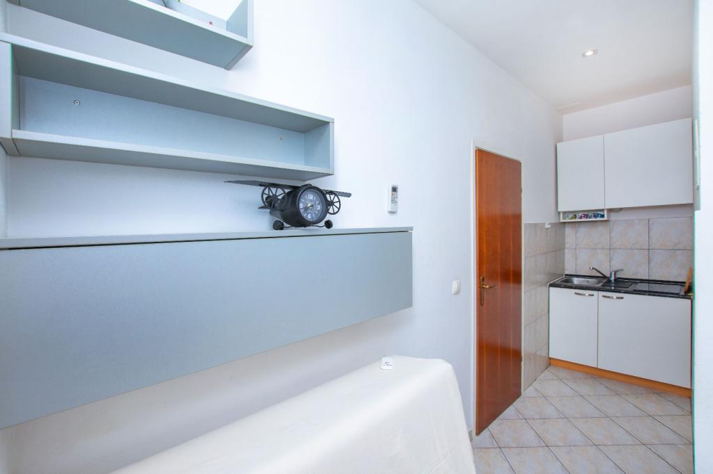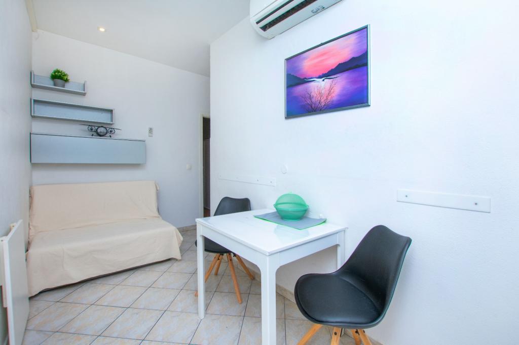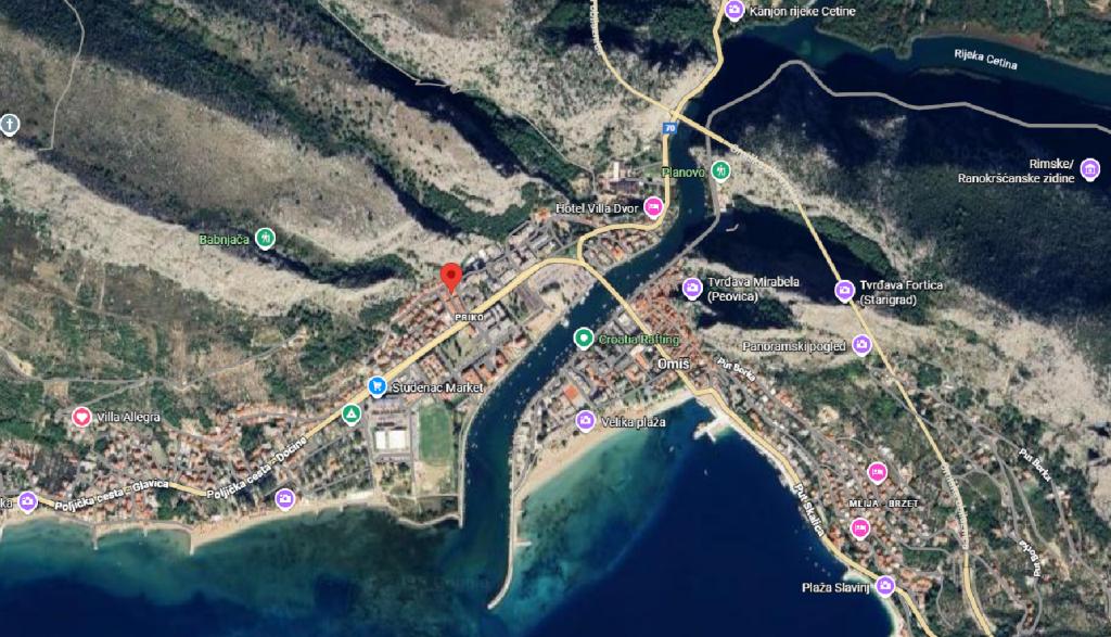 Appartement "Piccolo" ligt in Omiš, op 5 minuten van de oude stad en op ongeveer 5-7 minuten lopen van het zandstrand (Velika plaža). Het bestaat uit een woonkamer met eethoek en keuken, een aparte slaapkamer, een badkamer met douche en wasmachine - totale oppervlakte 25 m². Het appartement biedt airconditioning, een terras en gratis internet. In de goed uitgeruste keuken vinden gasten een magnetron, koelkast, fornuis, koffiezetapparaat, waterkoker en servies. Het appartement bevindt zich in een woongebouw en heeft een eigen ingang via de trap aan de zuidkant van het gebouw. Er is gratis parkeergelegenheid voor gasten. Slaapgelegenheid: 1 tweepersoonsbed (160x210 cm) + slaapbank. In de buurt van het appartement zijn er mogelijkheden voor ziplinen, raften op de rivier de Cetina, populaire boottochten naar nabijgelegen eilanden, kajakken, klimmen, wandelen en prachtige kustpromenades. Het appartement is gelegen in een rustige omgeving en beschikt over een beveiligde werkruimte en snel internet. Aantal personen: 2
