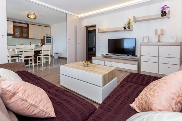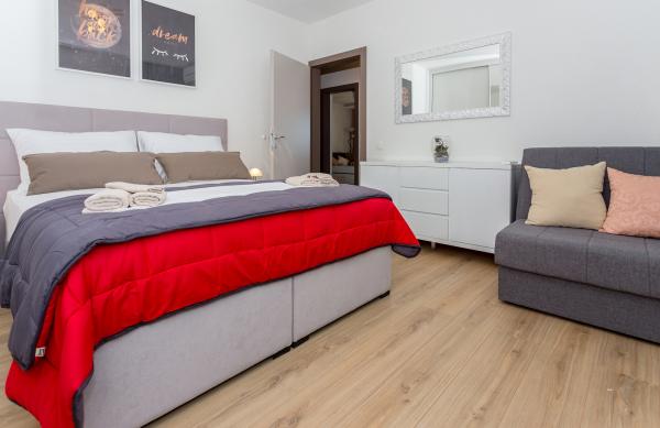 Allereerst wil ik de gastheren, Matea en Mama, bedanken, twee bijzondere mensen, een dikke 10! Het appartement is erg schoon, het uitzicht is fantastisch (het ligt op de heuvel, het is echt een klim, maar het uitzicht maakt alles goed)! We kwamen iets te vroeg aan, maar we werden hartelijk ontvangen! Bij aankomst stond er een drankje en een taartje klaar in de koelkast! Heel erg bedankt, en we hopen terug te komen!
