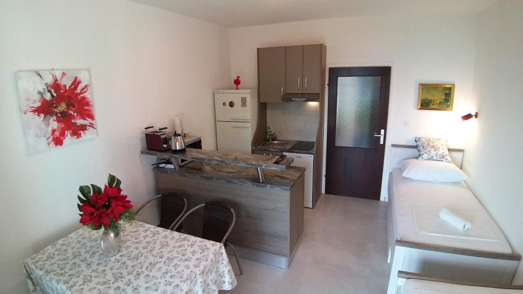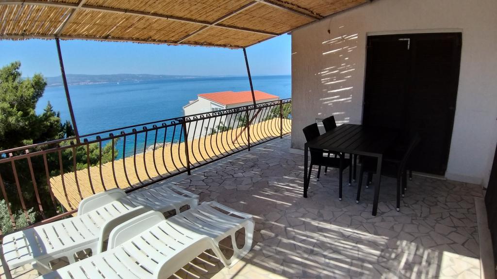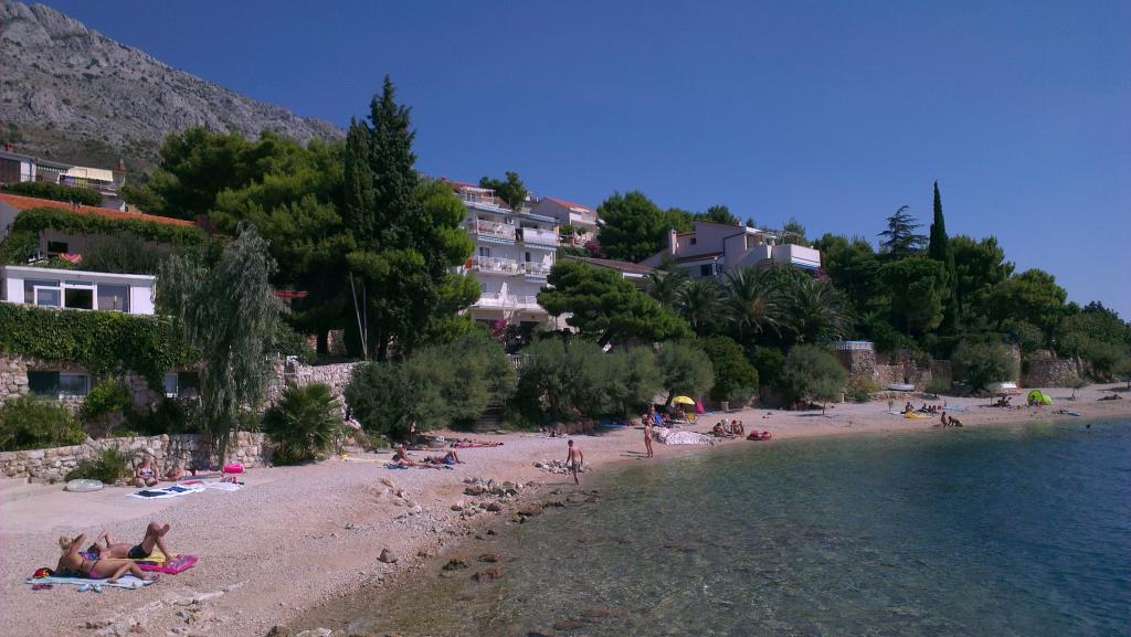 Geachte gasten! We hebben 1 A4+2 appartement (68 m2 30 m2 terras) en 2 A2+2 appartementen (32 m2 10 m2 terras) beschikbaar voor in totaal 12 personen. Alle appartementen hebben een terras met tafel en stoelen en uitzicht op zee. Het huis ligt op 30 meter van het kiezelstrand. Parkeerplaats voor 2 x 2 auto's bevindt zich direct achter de woning. Er is ook een barbecue voor gebruik. Een prachtig kiezelstrand ligt op 30 meter van het huis. De buurt is rustig en de zonsondergangen zijn prachtig. Er zijn 3 restaurants, een markt, een geldautomaat en een bakkerij in de buurt. Er zijn visverkopers en slagers voor verse vis en vlees in het nabijgelegen Omiš. Sinds 1985 staan wij voor u klaar voor alle vragen en advies.