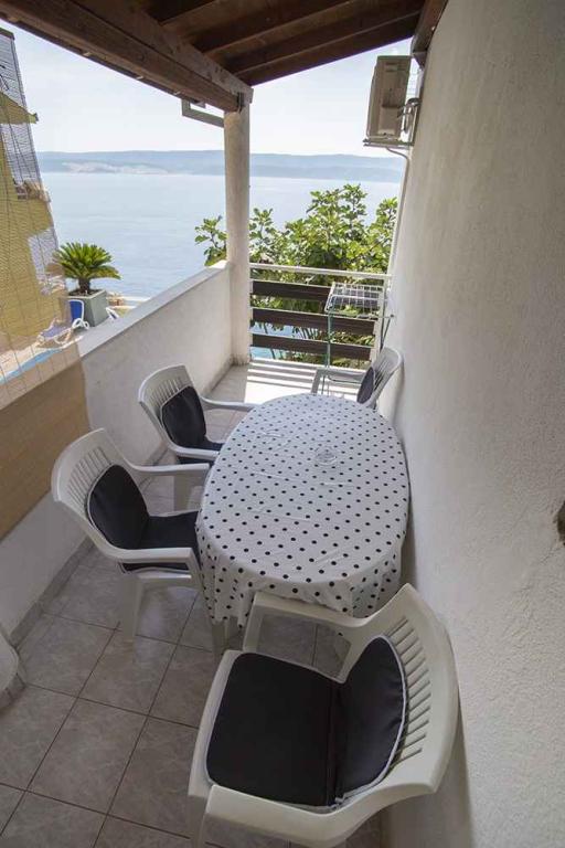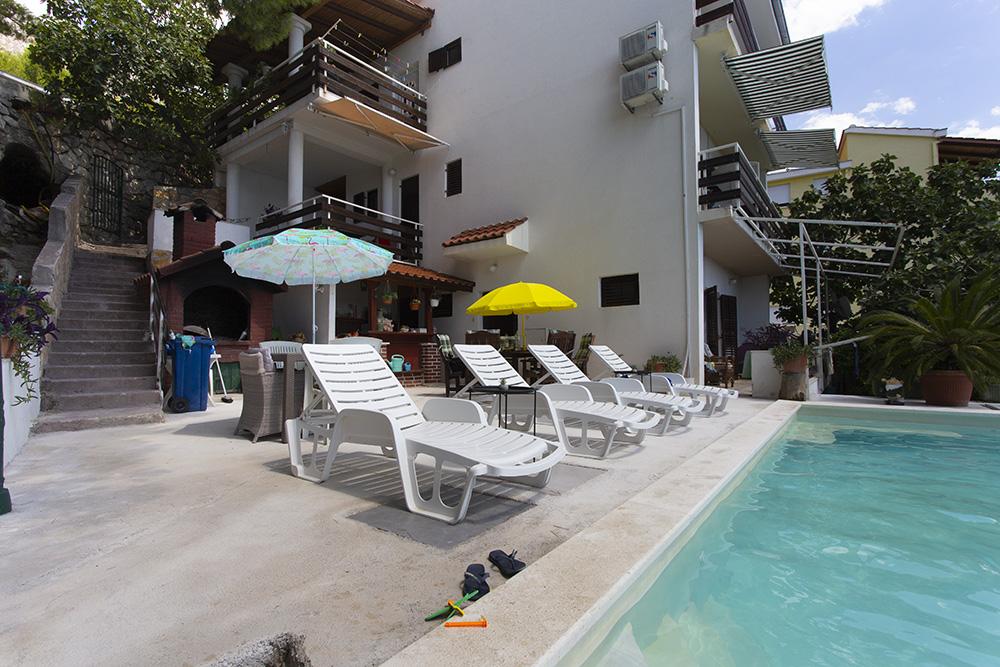 Appartementen Kapela zijn gelegen in het kleine toeristische plaatsje Ruskamen, niet ver van het stadje Omis. Het huis is gelegen in een rustige omgeving, op slechts 40 meter van het kiezelstrand, dat bereikbaar is via een eigen trap. Op het strand hebben de gasten de beschikking over ligstoelen en parasols, die volledig gratis kunnen worden gebruikt. Binnen het gebouw is er een tuin met een zwembad, ligstoelen en een grote barbecue, waar gasten ongestoord gebruik van kunnen maken. Er is privéparkeergelegenheid voor de auto's van de gasten in het gebouw. Alle appartementen hebben airconditioning, satelliet-tv, keuken, badkamer, Wi-Fi internet, houtskoolgrill en terrassen met uitzicht op zee. In de directe omgeving kunt u genieten van prachtige kiezelstranden met natuurlijke schaduw en kristalheldere zee. Het stadscentrum met een supermarkt, restaurants, cafés en een hotelcomplex ligt op ongeveer 400 meter afstand. We raden een bezoek aan de steden aan: Omis (5 km), Split (30 km), Makarska (30 km), Brela (18 km), Trogir (40 km).
