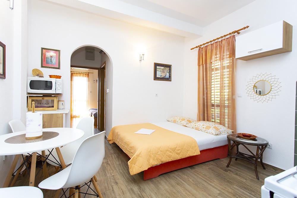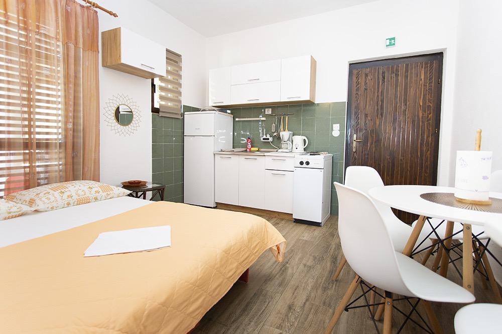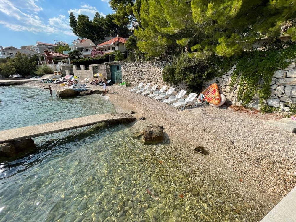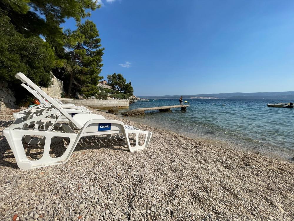 Als je een plek zoekt om te ontspannen, weg van de drukte, dan raden we deze van harte aan. De omstandigheden zijn precies zoals beschreven, schoon en de eigenaren zijn erg aardig. De trap naar het strand is steil, maar hierdoor kun je je conditie verbeteren. Winkels en restaurants kun je het beste met de auto bezoeken; er is geen trottoir voor een ontspannen wandeling, maar dat is wat Kroatië heeft. Een typische plek om even weg te zijn van alles wat de rust verstoort.