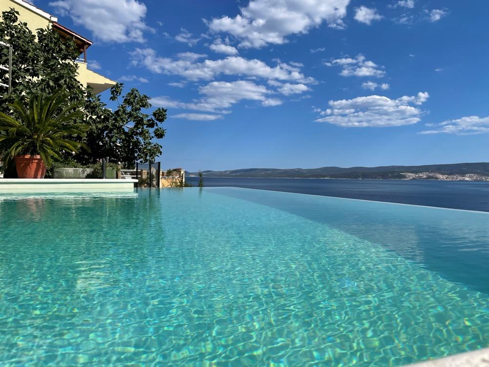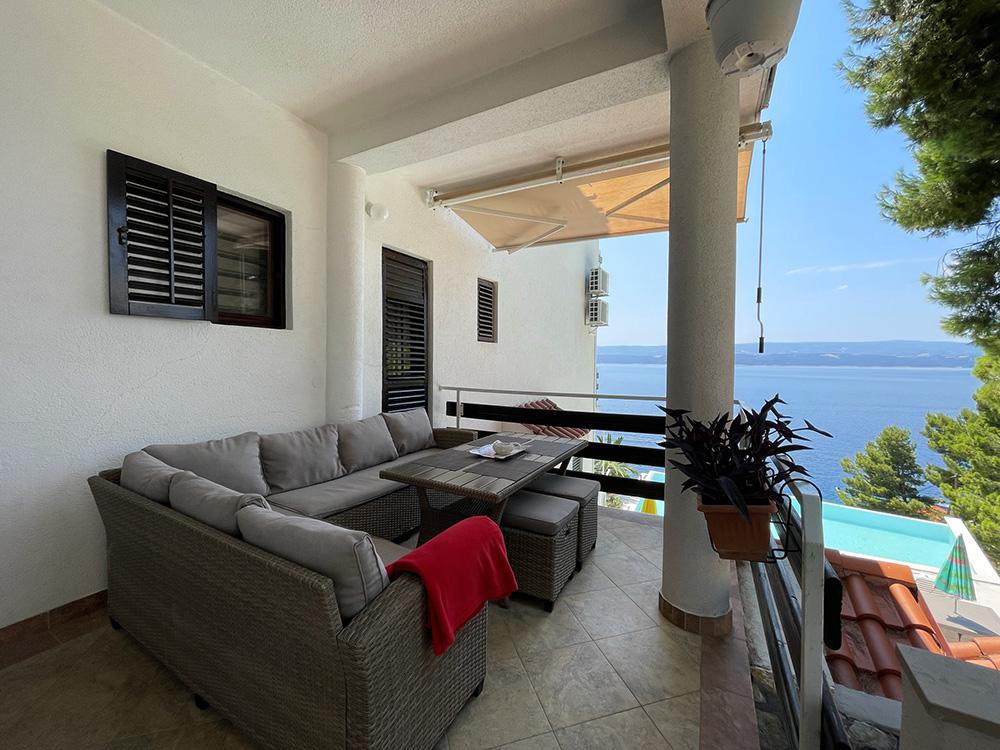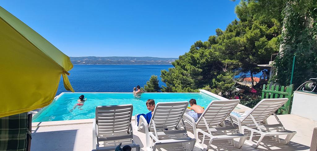Ik beveel de appartementen van harte aan. Wij waren er dit jaar medio juli. Het appartement precies zoals op de foto's. Alles zoals in de beschrijving. De keuken is goed uitgerust. Een set handdoeken, een strijkijzer en een haardroger. Prachtig terras met uitzicht op de zee. Het zwembad is schoon en het uitzicht is geweldig. We hebben 's avonds twee keer dolfijnen zien zwemmen. Ik raad het aan aan gezinnen met kinderen. De eigenaren verhuren slechts 2 appartementen, dus het zwembad was nooit druk. Je zou kunnen zeggen dat het zwembad bijna alleen voor ons was. Locatie weg van stadslawaai. Restaurant en winkel ongeveer 400 meter. Er is een privéafdaling naar het strand via behoorlijk steile trappen, maar de charme van Kroatië is dat er overal trappen zijn. De eigenaar stelt een privéstukje strand ter beschikking met ligstoelen. Het strand hebben we echter iets verderop te voet gebruikt, omdat de kinderen de voorkeur gaven aan kleinere kiezelstenen. Zeer dicht bij Omis en niet ver van Split. De eigenaren zijn erg aardig. Wij adviseren. We zullen zeker ooit nog eens terugkomen.