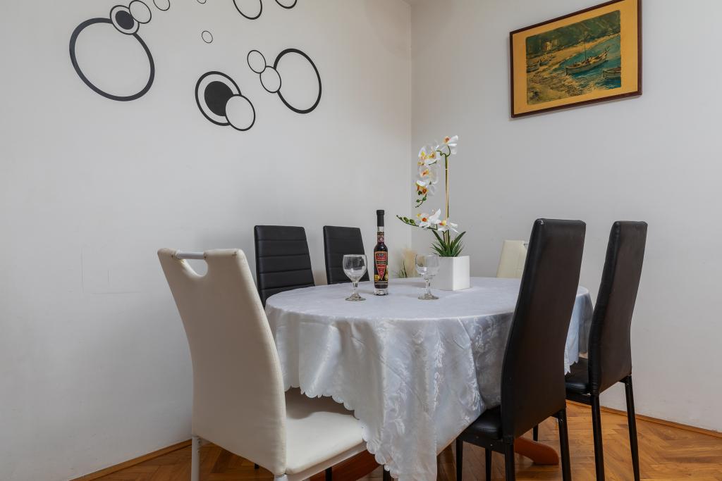 Appartement A5 is gelegen in Omiš, aan Četvrt ribnjak 13, vlakbij het strand en het stadscentrum. Het beschikt over twee slaapkamers, een keuken, een badkamer, een woonkamer en een terras. Appartement A7+1 is eveneens gelegen in Omiš, aan Četvrt ribnjak 13. Een ruim appartement met uitzicht op de rivier de Cetina, de zee en de oude binnenstad van Omiš. Welkom in ons ruime en comfortabele appartement, ideaal voor grote gezinnen of groepen vrienden! Het appartement biedt plaats aan maximaal 7 + 1 personen en bestaat uit 4 slaapkamers, 2 moderne badkamers met douches, een volledig uitgeruste keuken en een ruime en comfortabele woonkamer. Alles is binnen handbereik: winkels, apotheken, artsen, sportfaciliteiten, een prachtige nieuwe promenade die Omiš en Dugi Rat verbindt, de oude binnenstad van Omiš met een gevarieerd gastronomisch aanbod aan lokale specialiteiten, en voor avonturiers: raften en ziplinen. Een bijzondere charme van deze accommodatie is het balkon met een prachtig panoramisch uitzicht op de rivier de Cetina, de Adriatische Zee, het fort Fortica en heel Omiš – de perfecte plek voor een kopje koffie in de ochtend of om 's avonds te ontspannen.