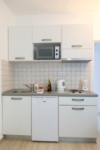 Inlusief wel Toeristenbelasting.Het appartement voldeed niet aan onze verwachtingen; de badkamer is erg klein en je moet bukken om iets te doen. Het bed in de kleine kamer was onmogelijk om op te slapen omdat de plank in je rug prikte; ik denk dat een tweepersoonsmatras beter zou zijn in plaats van dit bed. Er is ook een wasmachine, de eerste wasbeurt is gratis en de volgende kost 5 euro. Het enige pluspunt is het terras met een prachtig uitzicht.