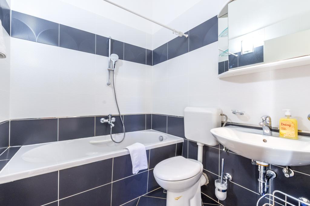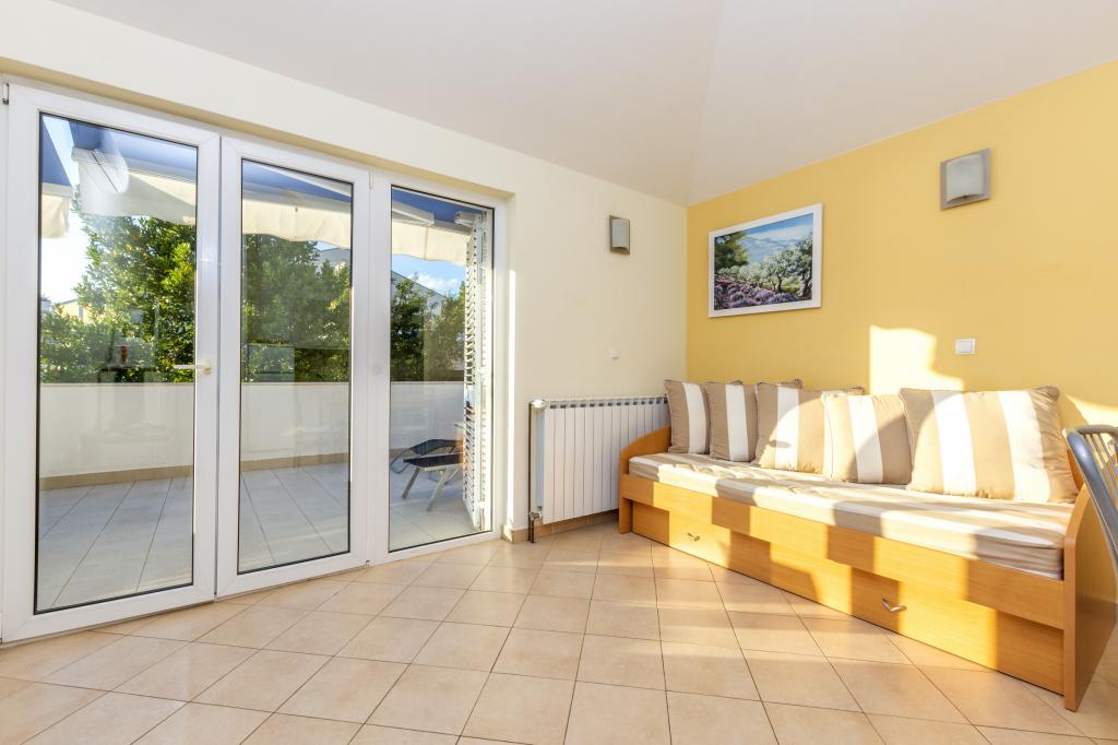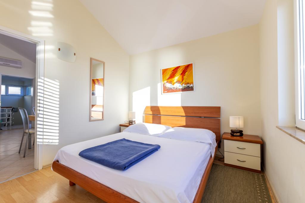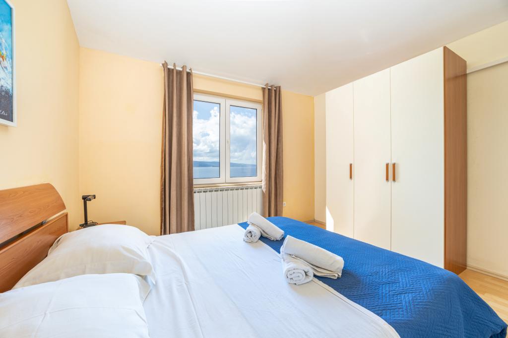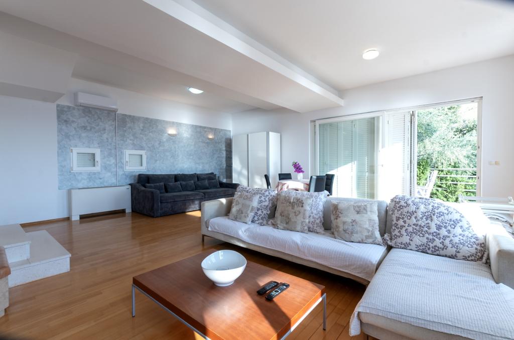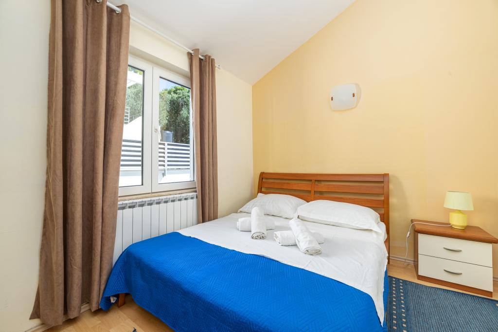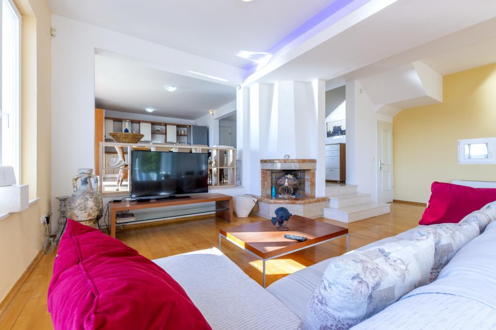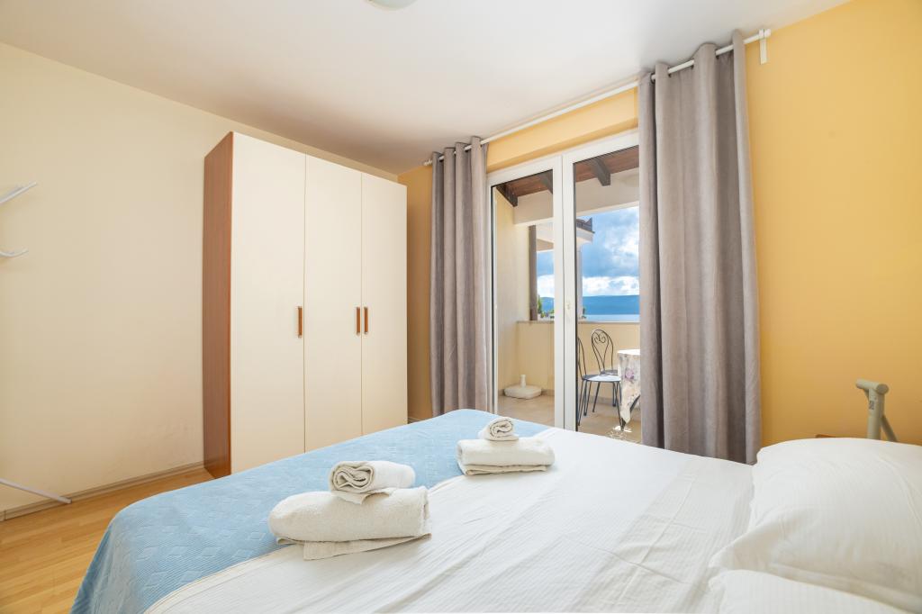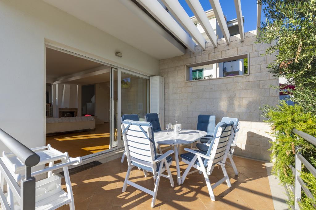 Accommodatie in nieuw gebouwde, uiterst comfortabele en uitstekend uitgeruste appartementen. De accommodatie ligt op 3 km van het centrum van Omiš. In totaal acht appartementen, direct aan zee gelegen. Alle appartementen hebben grote terrassen met uitzicht op zee en het eiland Brač. Parkeerplaatsen direct naast de villa. De appartementen liggen 300 meter onder de hoofdweg, direct aan zee en een groot kiezelstrand. Er zijn vier typen appartementen: -- type 2+2 met een aparte slaapkamer met tweepersoonsbed en een woonkamer met twee eenpersoonsbedden, -- appartementen type 2+2 grote studio, -- grote luxe appartementen, -- type 4+2 met twee slaapkamers met tweepersoonsbedden en een grote woonkamer met twee slaapbanken en -- grote de luxe appartementen. Appartement, type 14+2, in werkelijkheid een villa van drie verdiepingen, 300 m² groot, met een verwarmd zwembad van 9 x 4 meter, zeven tweepersoonsslaapkamers, twee grote woonkamers met balkons en terrassen, vier badkamers, een apart toilet, een buitenbarbecue, een sauna en een fitnessruimte, enz. Het zwembad is exclusief voor appartement A 14+2. De andere appartementen hebben er geen toegang toe.