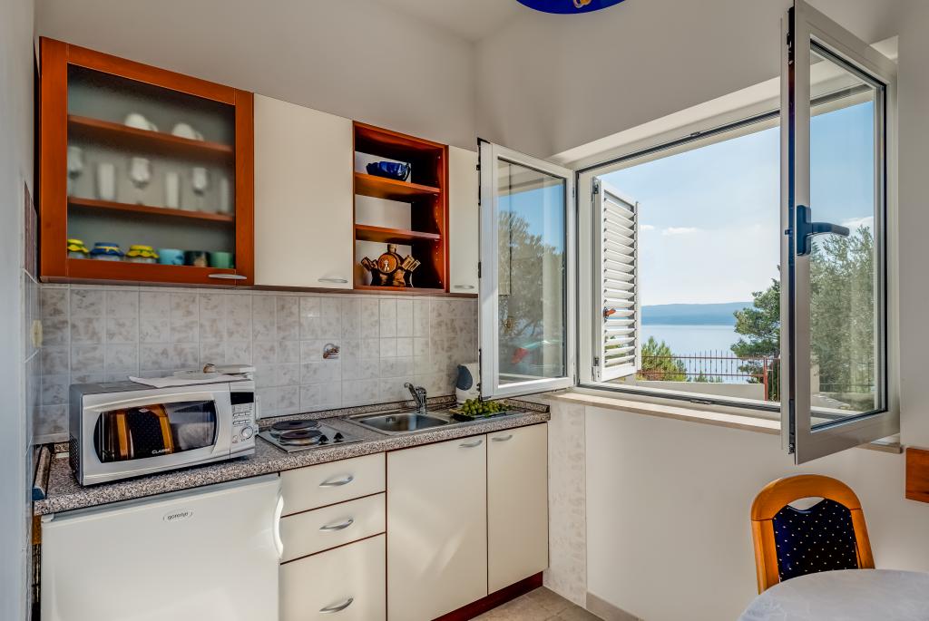 Apartments Tafra ligt in Lokva Rogoznica in het hart van Dalmatië, ten zuiden van Omis, op slechts 9 km afstand. In dezelfde richting brengt de weg u in de richting van Makarska of Dubrovnik. Lokva Rogoznica is een pittoresk plaatsje, ideaal voor iedereen die een echte mediterrane sfeer wil met een heldere zee en prachtige stranden omringd door pijnbomen. Vakantie in Tafra appartementen zal u voorzien van comfort dat u een aangenaam verblijf en volledige rust zal geven. Appartement A1 bestaat uit een slaapkamer voor 2 personen en toegang tot een balkon. Er is ook een uittrekbare fauteuil in de kamer, zodat er een extra bed voor een kind kan worden geplaatst. Het appartement heeft een badkamer en een keuken met een woonkamer met een uitklapbaar bed voor 2 volwassenen of twee kinderen. De woonkamer komt uit op een balkon.