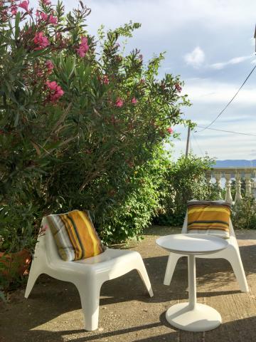 Het studio-appartement en het appartement bevinden zich op de begane grond van de gezinswoning en op 5 minuten lopen van het eerste strand. Parkeerplaats voorzien.