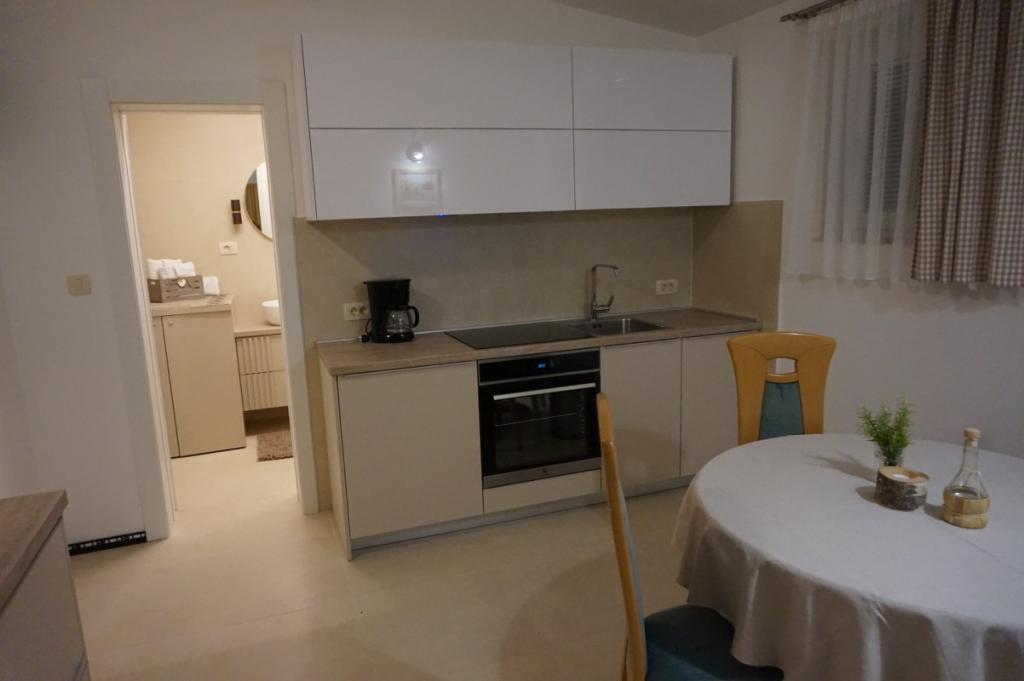 Dit is een van de appartementen die je je maar kunt wensen: een rustige locatie, parkeergelegenheid in de tuin, de zee ligt op ongeveer 250 meter afstand en je kunt via een pad door een klein bos naar een prachtig rotsstrand lopen, waar de zee schoon is en, nog belangrijker, er geen drukte is. Het is niet aan te raden voor kleine kinderen, omdat er geen geleidelijke afdaling in de zee is. Het appartement is brandschoon en netjes en je ziet bij elke stap hoe goed de gastheren voor elke gast zorgen. Wat je ook nodig hebt, er zijn onopvallende gastheren die hun best doen om ervoor te zorgen dat je alles hebt wat je nodig hebt voor een fijne vakantie. Kortom, dit is een heerlijk appartement voor een rustige en vredige vakantie.