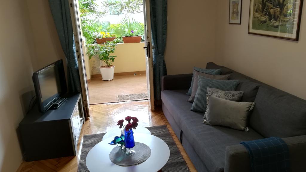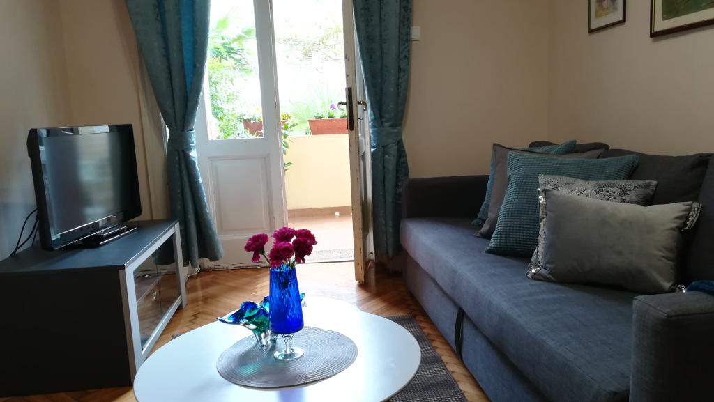 Charmant appartement in een oude villa in het centrum van Opatija. Het appartement ligt op 300 meter van de zee en het strand. Het is zeer ruim, met een oppervlakte van 58 vierkante meter. Het beschikt over een overdekt balkon met uitzicht op zee, en aan de andere kant van het huis is er een uitgang naar de tuin waar u ook kunt zitten en die is voorzien van een tafel en stoelen. Het appartement is een van de weinige in het centrum van Opatija met gratis privéparkeergelegenheid. De markt van Opatija ligt op 400 meter afstand en de Spar-supermarkt op 150 meter van het appartement. Het appartement biedt plaats aan maximaal 5 personen. De slaapkamer heeft een groot tweepersoonsbed en een eenpersoonsbed. Er is een slaapbank in de woonkamer. De keuken is ruim en volledig uitgerust.
