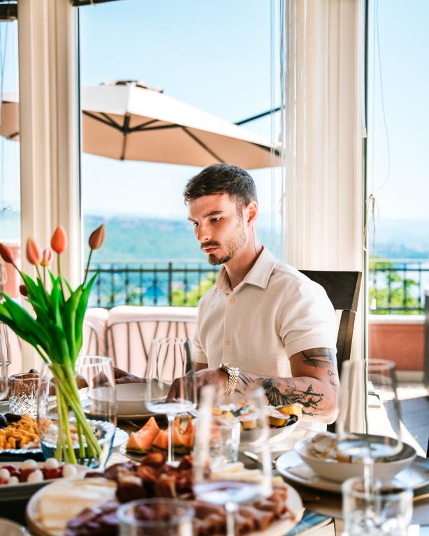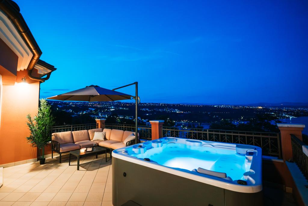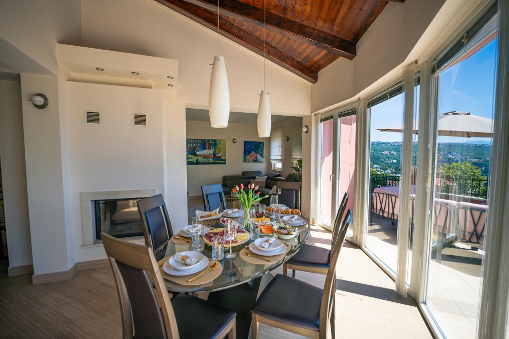Een mooi en modern juweeltje gelegen aan de Opatija Riviera. Het huis is recent gebouwd, dus alles is bijna als nieuw. Het interieurontwerp is erg mooi en is ontworpen door mijn vrouw Alexandra, een binnenhuisarchitect. Een van de meest verbazingwekkende dingen in dit huis is het 180 graden uitzicht vanaf het terras op de Kvarnerbaai, de Istrische kust en de eilanden Krk en Cres. Puur adembenemend. Een foto kan de schoonheid van het uitzicht niet overbrengen. Zonsopgangen en zonsondergangen zijn bijzonder, en diners op het terras behoren tot de mooiste momenten van de dag. Je slaapt als een roosje want 's nachts is het erg rustig en aangenaam en 's nachts komt er een licht briesje uit de zee. Alle kamers zijn voorzien van airconditioning. Belangrijk zijn ook de supercomfortabele bedden in alle kamers, en de binnen- en buitenjacuzzi en douche op het terras met prachtig uitzicht. De Opatija Riviera staat bekend om zijn micro-mediterrane klimaat. De steden aan de Rivièra strekken zich uit van het vissersdorp Volosko, dat op slechts een paar minuten lopen van het huis ligt, tot het prachtige Opatija, dat te voet bereikbaar is. Eén van de dingen waar u van moet genieten is de ongeveer 15 km lange promenade langs de Lungomare-zee. Langs de boulevard vindt u een aantal kleine strandjes en kleine baaien waar u kunt zwemmen, afgewisseld met prachtige paleizen die dateren uit de tijd van Oostenrijk-Hongarije. Het huis ligt op ongeveer 400 meter van verschillende stranden in Volosko. Het water is erg schoon en turkooisblauw. Veel plaatsen aan de Rivièra liggen op een klein eindje rijden en bieden vele gastronomische ervaringen. De supermarkten in de buurt hebben een grote selectie aan eten, waaronder heerlijk brood, lokale wijnen, producten en vlees. Ook toprestaurants liggen op een paar minuten lopen van het huis. Het eten is geweldig, vooral de visselectie. Er is een verse vis- en groentemarkt in de buurt.