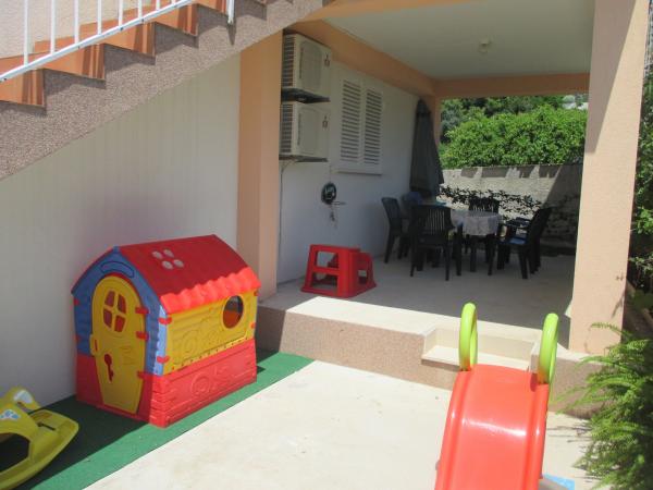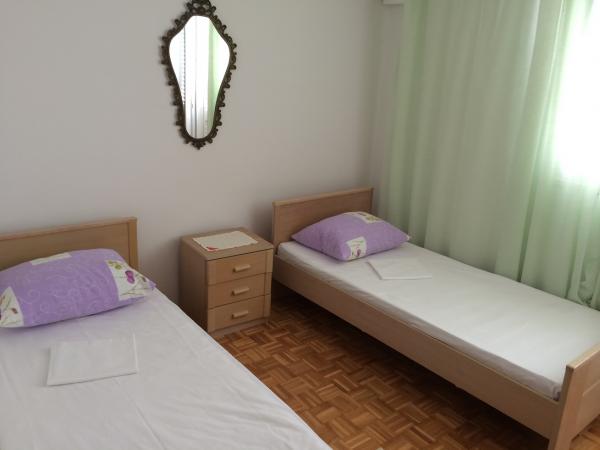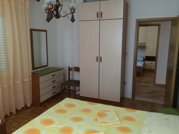 Er is een groot appartement in het familiehuis. Het is volledig uitgerust. Het heeft een aparte ingang en parkeerplaats. De woning ligt op twee minuten lopen van strand, zee, winkel en bank. Het appartement (8+2) bevindt zich op de eerste verdieping en bestaat uit vier slaapkamers (twee driepersoonskamers en twee tweepersoonskamers), een grote keuken, twee badkamers met toilet (één heeft een wasmachine), een groot balkon en een groot terras. Het appartement is voorzien van airconditioning (grote airconditioner geïnstalleerd in de gang), Wi-Fi internet, magnetron, fornuis, oven, vaatwasser, wasmachine, grote koelkast, alle benodigde serviesgoed en beddengoed. Het beddengoed wordt 1 keer per week verschoond. Belastingen, Wi-Fi, parkeren en gebruik van airconditioning zijn inbegrepen in de huurprijs.