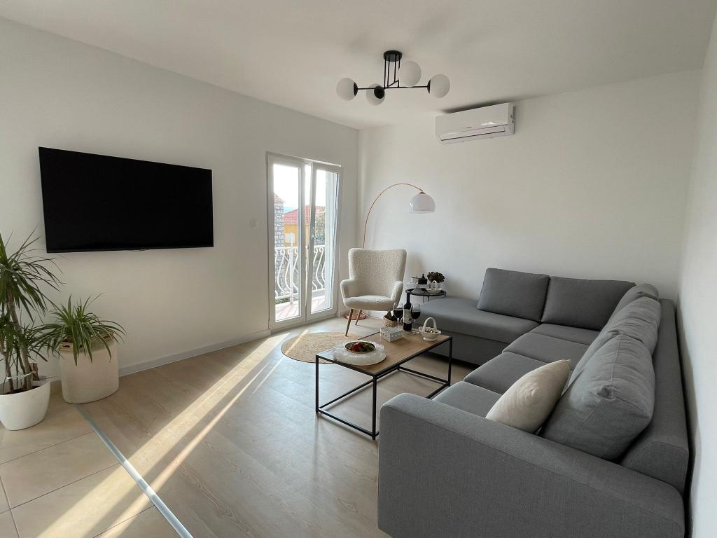 Een ruim en goed onderhouden appartement met uitzicht op zee, voorzien van alle mogelijke gemakken - 2x tv met internetaansluiting, wifi, airconditioning in de woonkamer en in de slaapkamers, volledig uitgeruste en moderne keuken [een groot pluspunt voor de ijs koffiezetapparaat en automatische wasmachine].Vlotte toegang tot het appartement via een tweerichtingsweg, voldoende parkeergelegenheid en een terras met comfortabel tuinmeubilair. Locatie in het centrum van de stad, op een steenworp afstand van het strand, de pier en vele restaurants, plaatst dit appartement op de voorgrond in deze stad. Bij aankomst werden we begroet door een lieve dame die ons hielp tijdens ons verblijf en in het appartement zelf wijn, tinctuur en vers fruit en koekjes op ons wachtte in de slaapkamer. Ik heb zeer mooie herinneringen aan mijn verblijf en ik beveel het appartement van harte aan aan mensen die waarde hechten aan comfort tijdens hun vakantie.