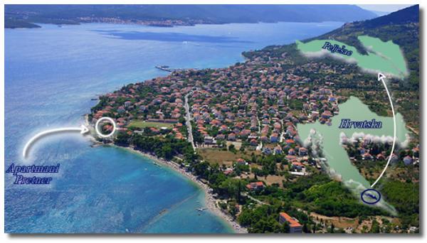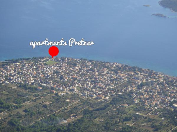 Appartementen Pretner in Orebic op het schiereiland Peljesac zijn gelegen in een rustige en stille omgeving, aan de zee, naast het zandstrand Trstenica. Eerste van 2000m2 omvat de zuidkant tuin vol groen met mediterrane vegetatie en een open haard die beschikbaar is voor de gasten. Aan de noordkant zijn er bomen van citrusvruchten en olijfbomen en een grote parkeerplaats. Elk appartement is voorzien van airconditioning en uitgerust met satelliet-tv en draadloos internet.