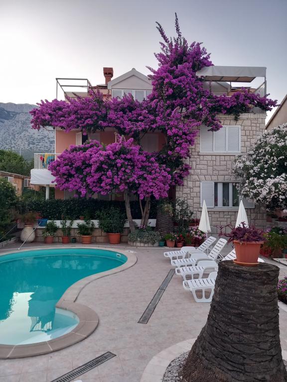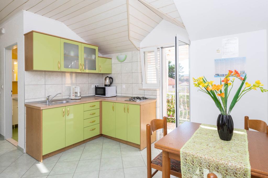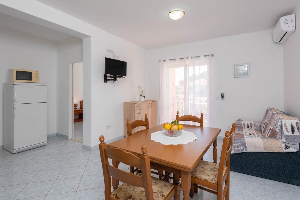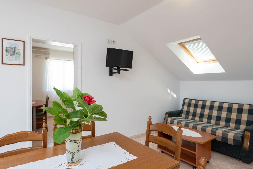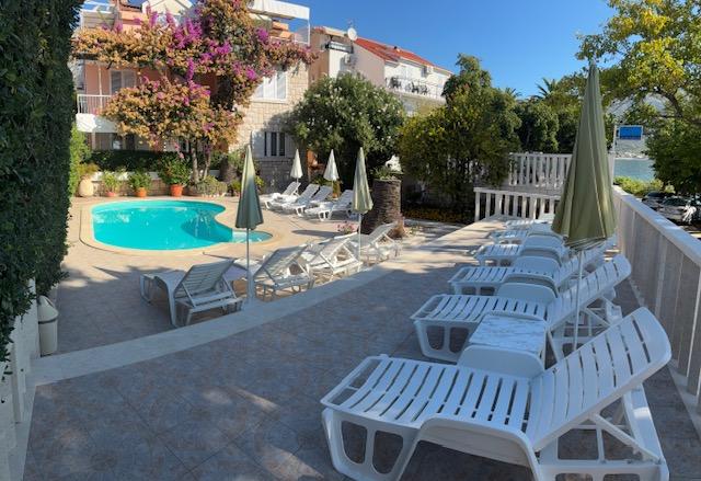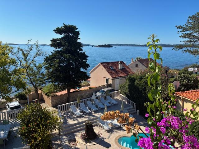 "Villa Melita" ligt direct aan zee en aan een rustige promenade. Deze plek is bijzonder geschikt voor iedereen die er even tussenuit wil. Het huis heeft een prachtige tuin met mediterrane begroeiing, waar zich een zwembad van 32 m² met 14 ligstoelen bevindt. Een barbecue staat ook tot uw beschikking. Onze privéparkeerplaats voor elk appartement is ook vlakbij. Al onze appartementen zijn voorzien van airconditioning, gratis wifi, satelliet-tv, een volledig uitgeruste keuken, een badkamer en een eigen terras. Badhanddoeken en beddengoed zijn inbegrepen. Het huis ligt op loopafstand van diverse restaurants, cafés, winkels en bakkerijen voor al uw dagelijkse behoeften. Bovendien ligt het belangrijkste stadsstrand Trstenica op slechts 40 meter afstand.
