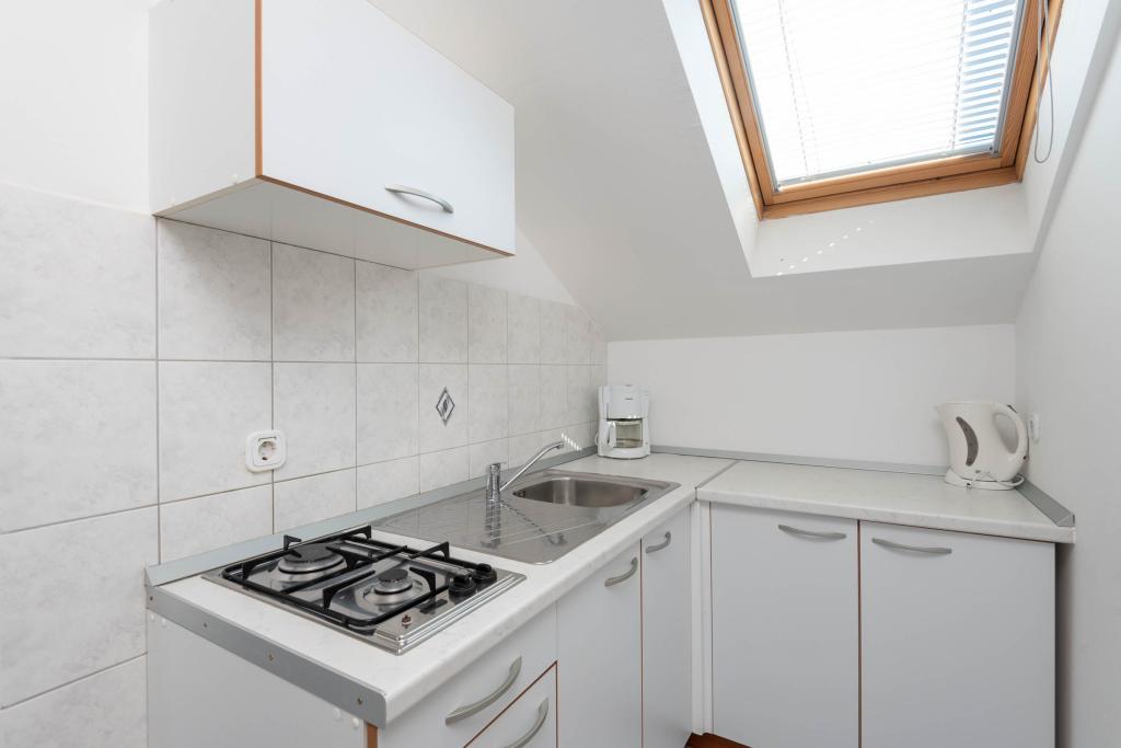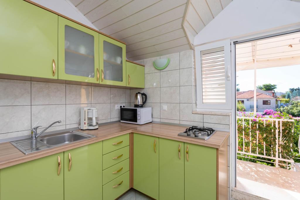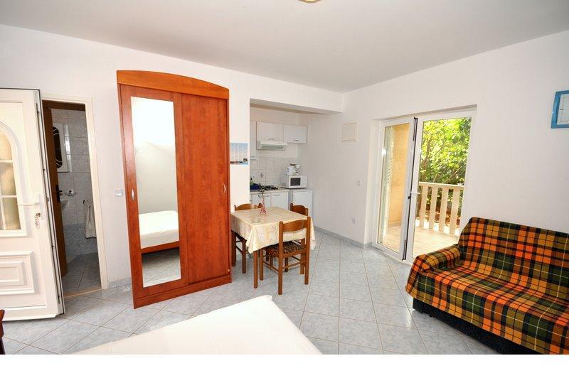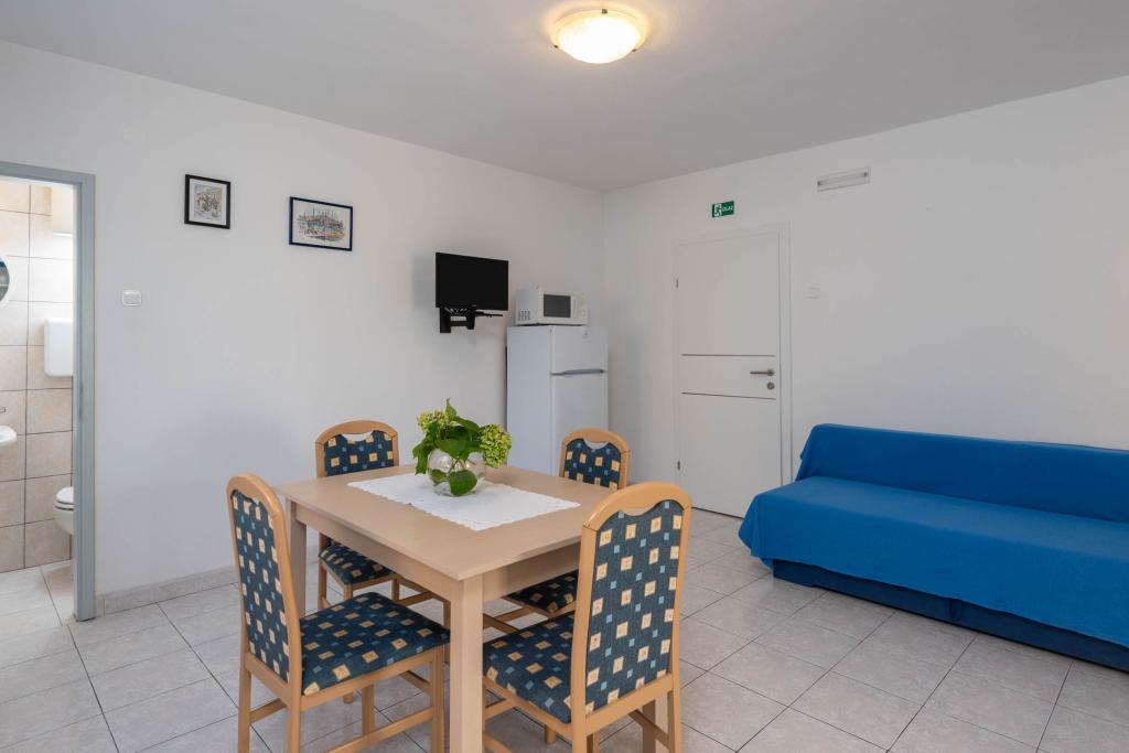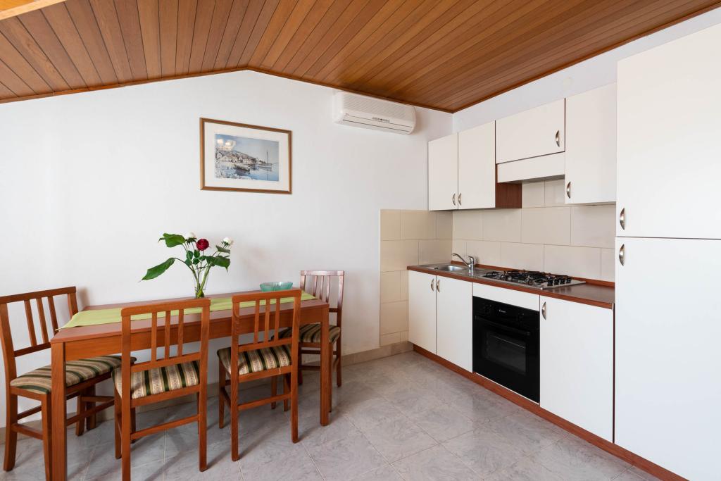 "Villa Melita" ligt direct aan zee en aan een rustige promenade. Deze plek is bijzonder geschikt voor iedereen die er even tussenuit wil. Het huis heeft een prachtige tuin met mediterrane begroeiing, waar zich een zwembad van 32 m² met 14 ligstoelen bevindt. Een barbecue staat ook tot uw beschikking. Onze privéparkeerplaats voor elk appartement is ook vlakbij. Al onze appartementen zijn voorzien van airconditioning, gratis wifi, satelliet-tv, een volledig uitgeruste keuken, een badkamer en een eigen terras. Badhanddoeken en beddengoed zijn inbegrepen. Het huis ligt op loopafstand van diverse restaurants, cafés, winkels en bakkerijen voor al uw dagelijkse behoeften. Bovendien ligt het belangrijkste stadsstrand Trstenica op slechts 40 meter afstand.