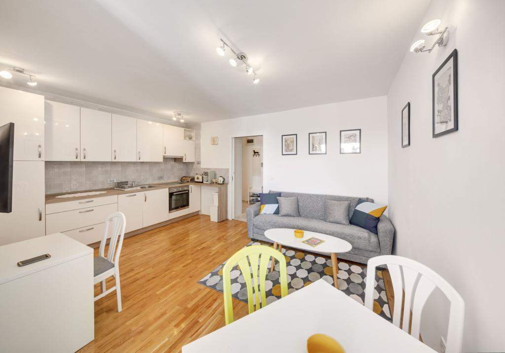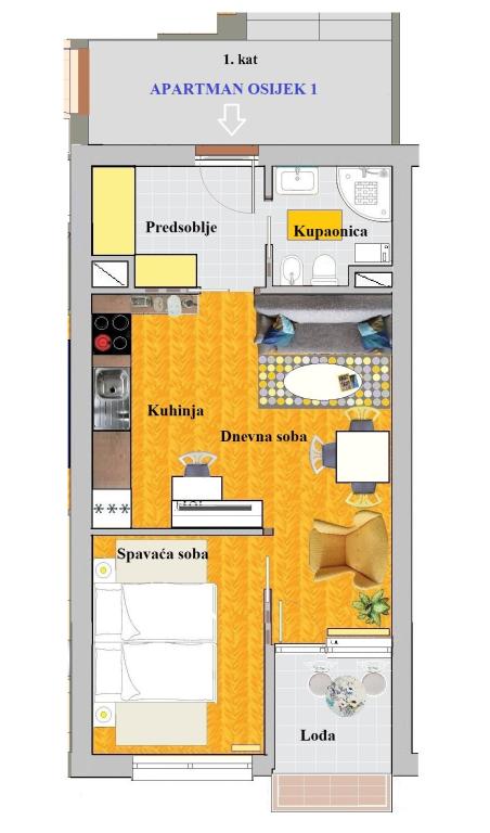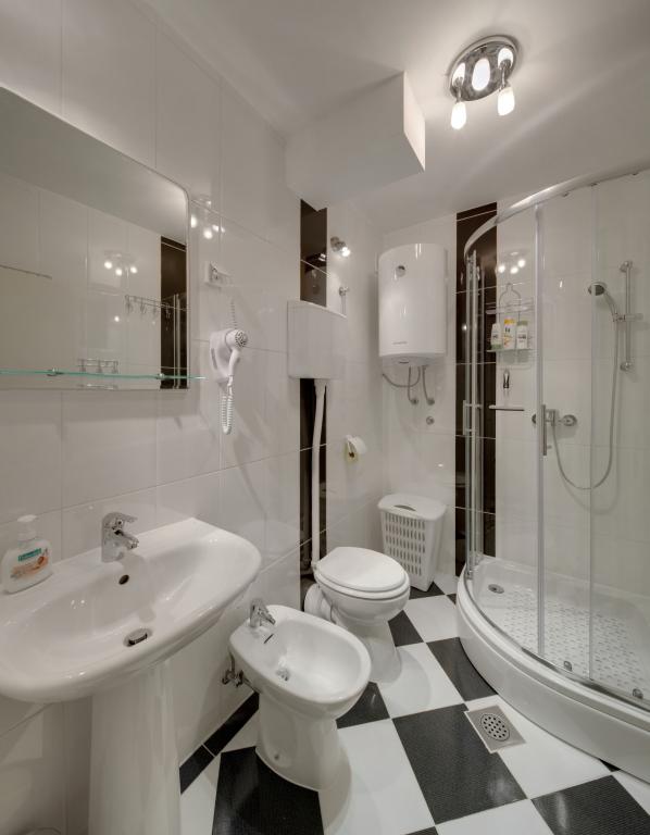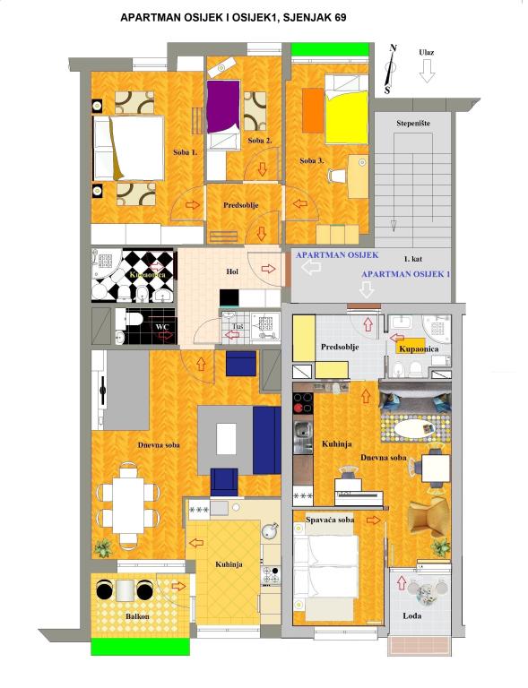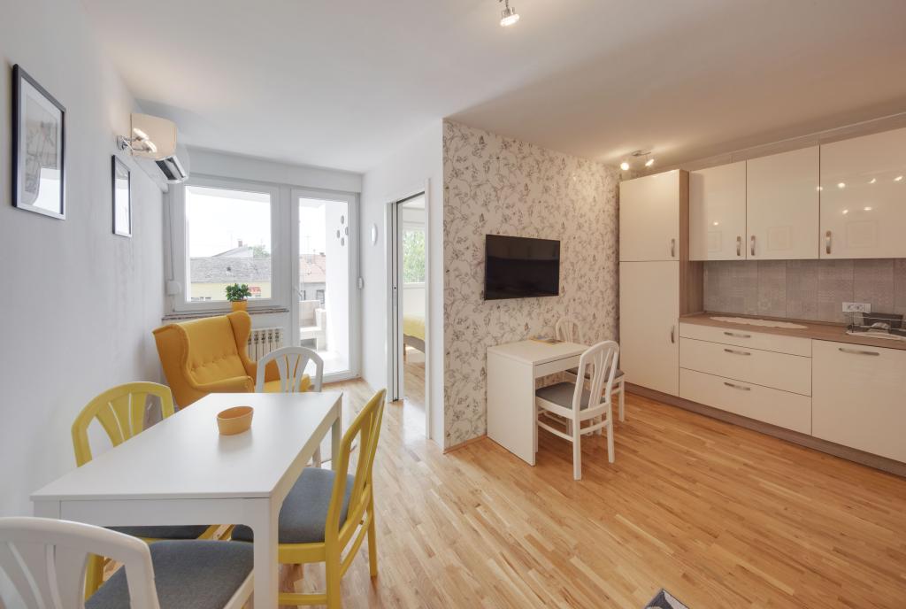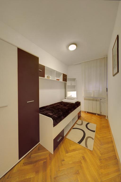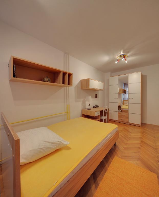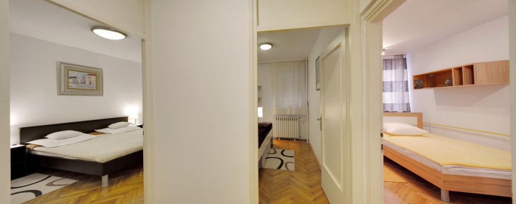 Appartementen Osijek en Osijek 1 bevinden zich op de 1e verdieping van een gebouw in de rustige woonwijk Sjenjak, met daarnaast een grote gratis parkeerplaats en een tramhalte. De appartementen liggen dichtbij de hoofdstraten en uitvalswegen die Osijek verbinden met de omliggende steden en de snelweg A5. In de buurt zijn: het voetbalstadion en de sporthal "City Garden", "City Pools", restaurants en het historische centrum van Osijek - het barokke fort. Appartement Osijek is een vierkamerappartement met een oppervlakte van 92 m², met een zonnige woonkamer en een rustige noordelijke plek voor nachtrust. Er is één kamer met een tweepersoonsbed, twee eenpersoonskamers, een woonkamer met slaapbank, twee badkamers, een apart toilet, een keuken en een balkon. Appartement Osijek 1 is een tweekamerappartement met een grootte van 40 m² en ligt naast het vierkamerappartement Osijek. Het heeft een slaapkamer met een groot tweepersoonsbed, dat kan worden opgesplitst in twee aparte bedden. In de woonkamer, die in verbinding staat met de eetkamer en de keuken, staat een bank: zitbank, fauteuil