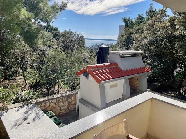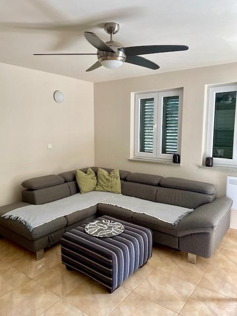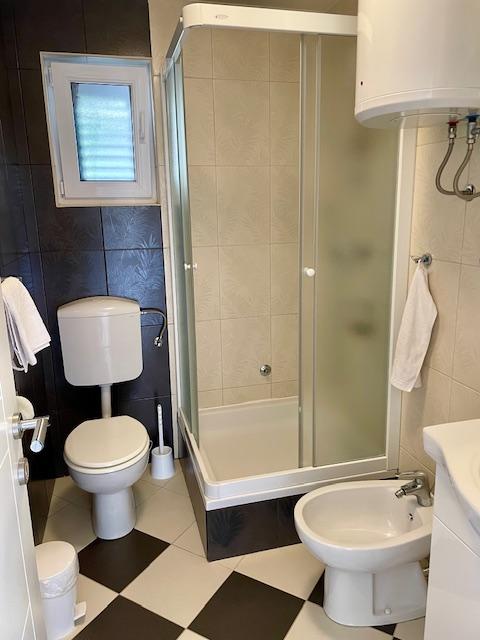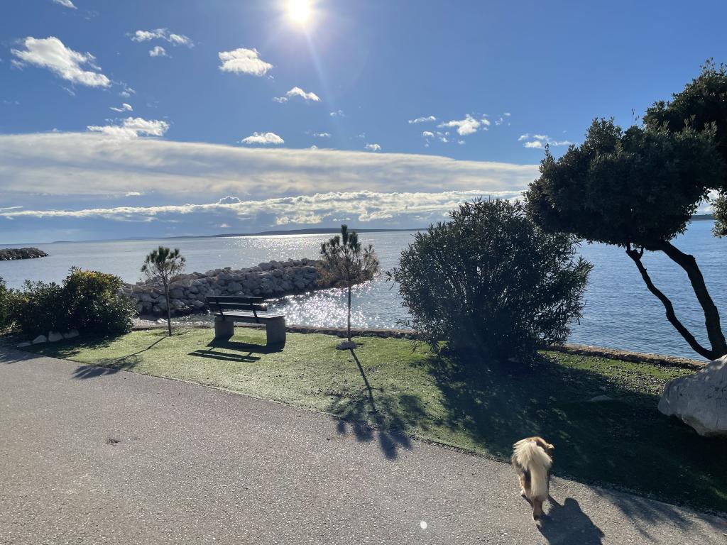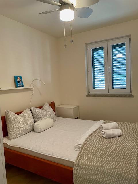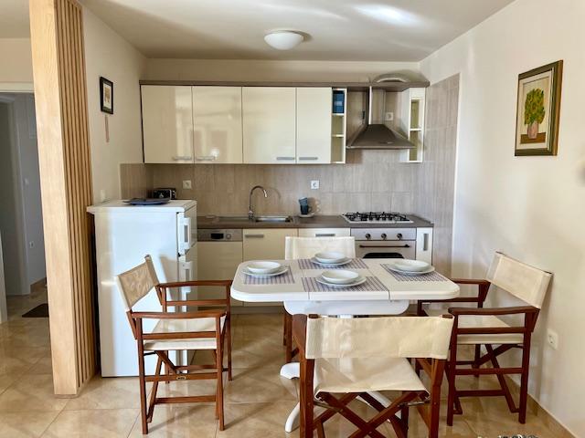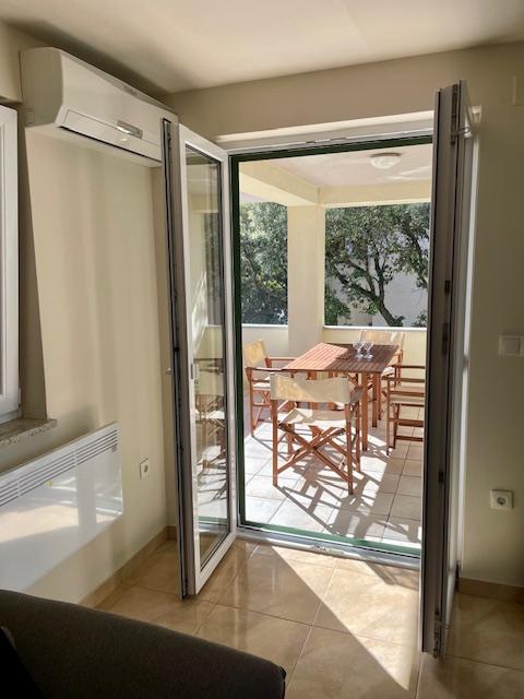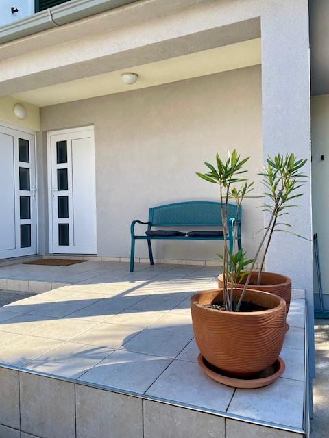 Leuk appartement op de begane grond van het huis met uitzicht op zee. Het terras (10m2) is overdekt. Gasten kunnen gebruikmaken van een tuin met een grote tafel voor gezelligheid, een stenen barbecue en een buitendouche. In de directe omgeving bevinden zich het strand, de markt, cafés en restaurants. Tijdens uw verblijf is er gratis parkeergelegenheid voor één auto op de binnenplaats van het huis. De stad Mandre is ideaal voor een familievakantie met tal van festivals tijdens de zomermaanden, een lange lungo-merriepromenade en ander entertainment. Voor eventuele vragen zijn de appartementeigenaren die op de bovenste verdieping van het huis wonen bereikbaar. Voor alle overige informatie kunt u gerust bellen.