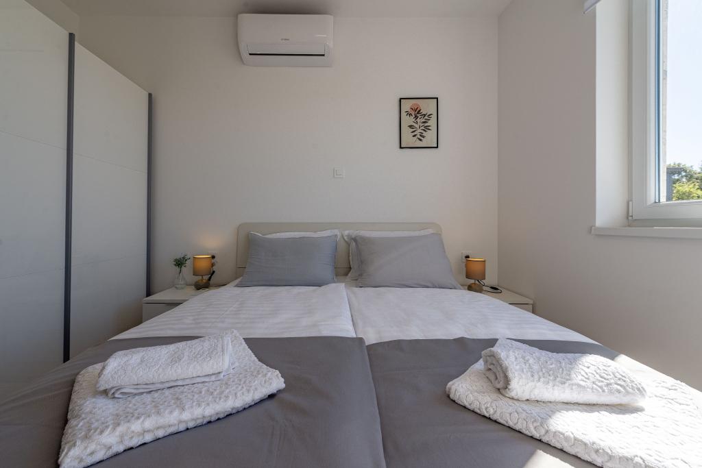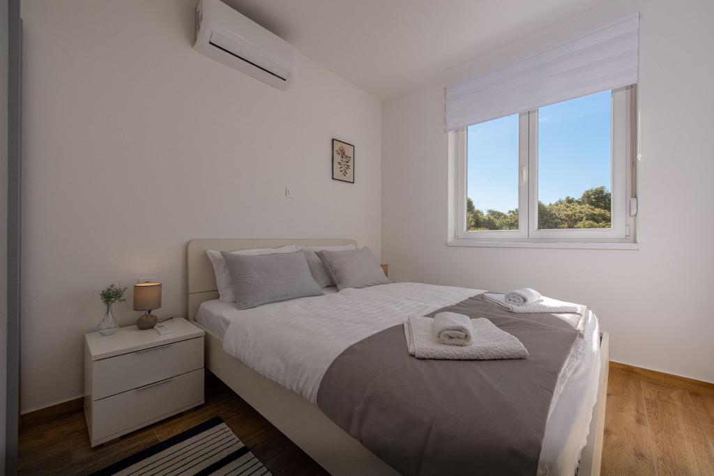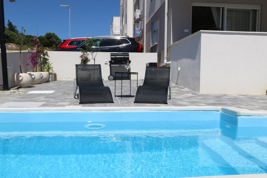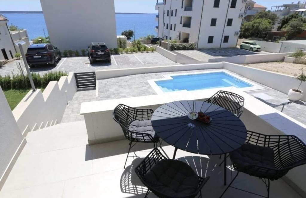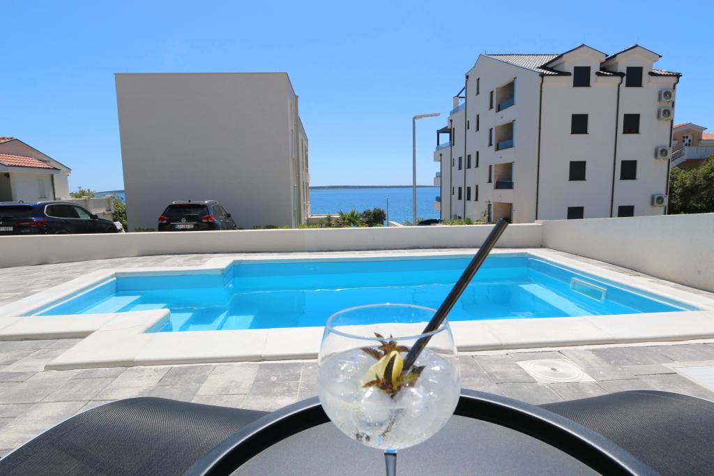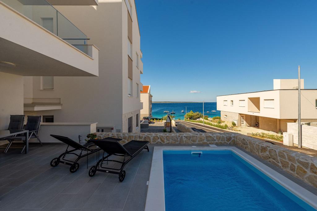 Dolfijnzicht met een zwembad aan het strand is een modern appartement met een privézwembad met uitzicht op de zee, alleen voor uw gebruik. Het ligt in een rustig deel van Mandre op het eiland Pag, op slechts 40 meter van het eerste strand. Appartement met uitzicht op de dolfijnen bestaat uit twee slaapkamers met tweepersoonsbedden, badkamer met inloopdouche, volledig uitgeruste keuken, woonkamer en eetkamer. Het appartement beschikt over 2 parkeerplaatsen in de tuin, evenals een gemeubileerd terras met een zwembad en een tuin met een tuin en een barbecue. Het terras biedt een prachtig uitzicht op de zee en onze vaste bezoekers zijn dolfijnen. Dolphin view II bestaat uit een slaapkamer met een tweepersoonsbed en nog een slaapkamer met twee aparte bedden die kunnen worden gecombineerd tot een tweepersoonsbed, een volledig uitgeruste keuken, een woonkamer en een eetkamer. Het appartement beschikt over 1 parkeerplaats, een gemeubileerd terras met een zwembad speciaal voor u. Restaurants en winkels liggen op slechts 10 minuten loopafstand van het appartement in het centrum van de stad, waar u alles kunt vinden wat u nodig heeft voor een aangename vakantie.