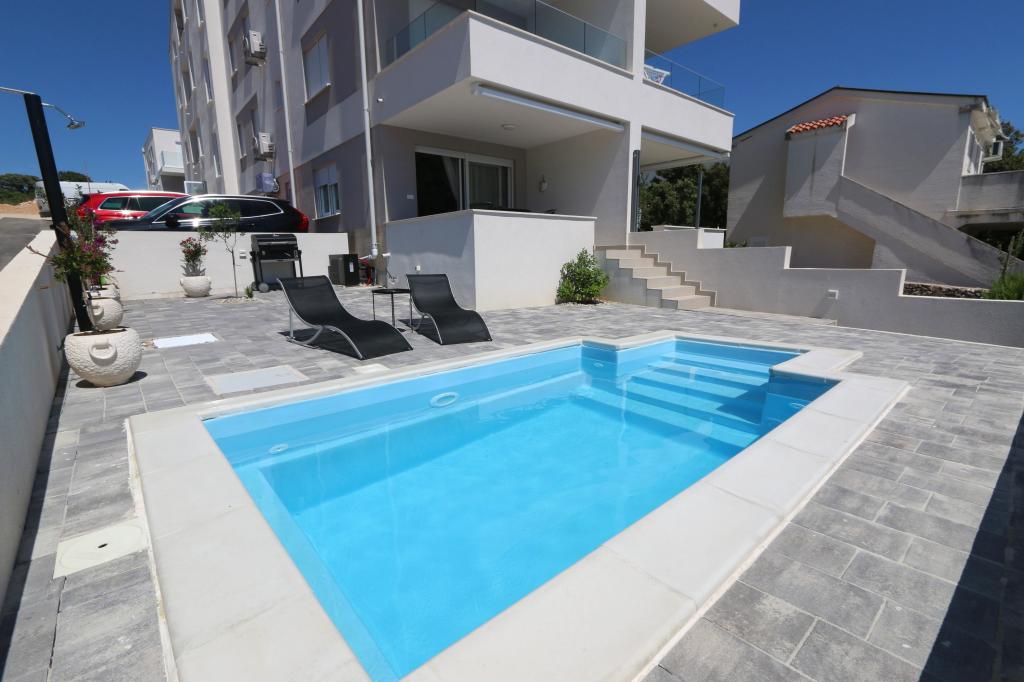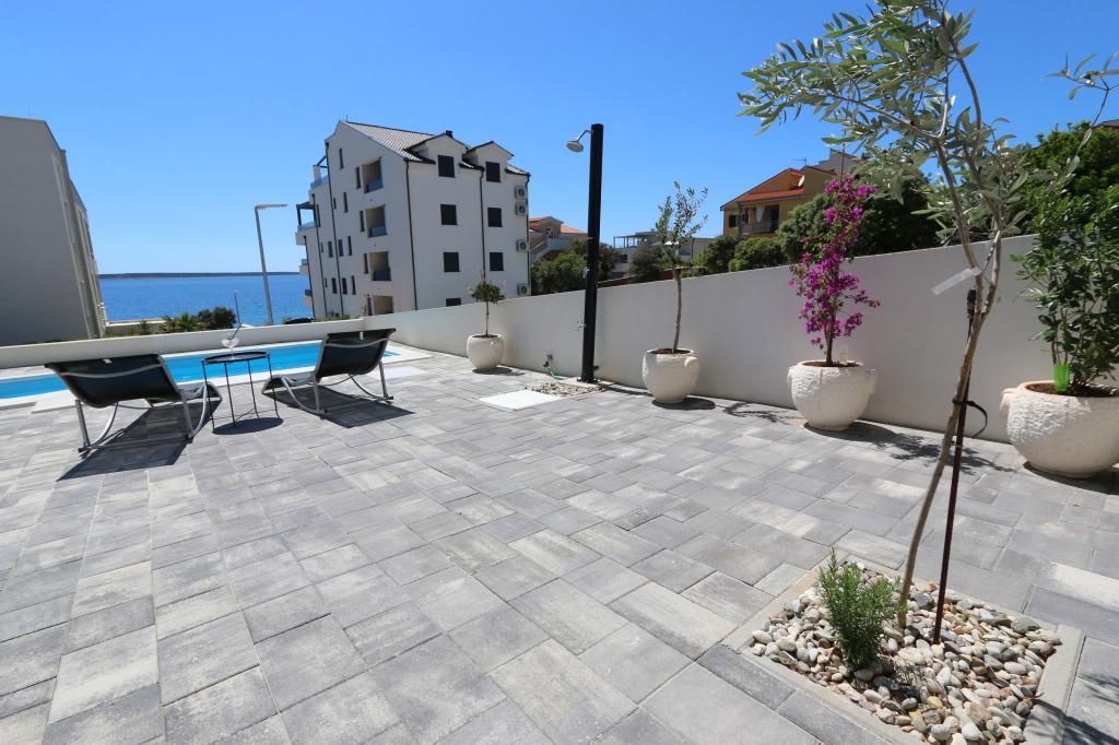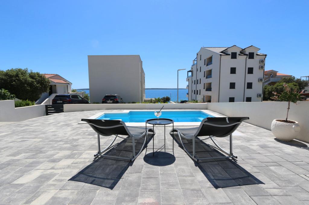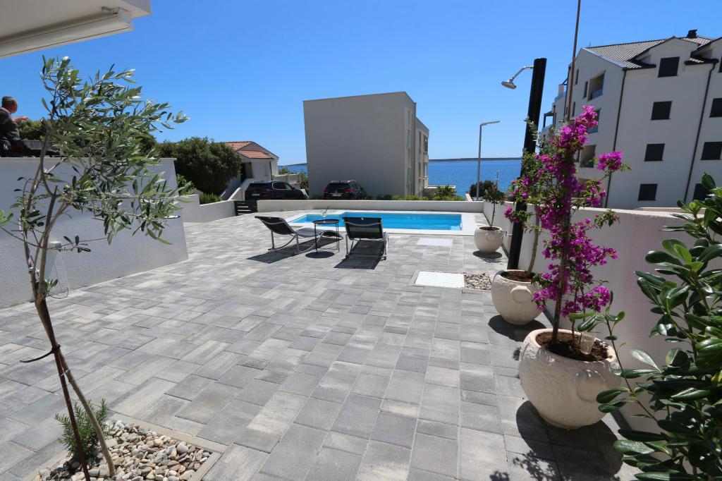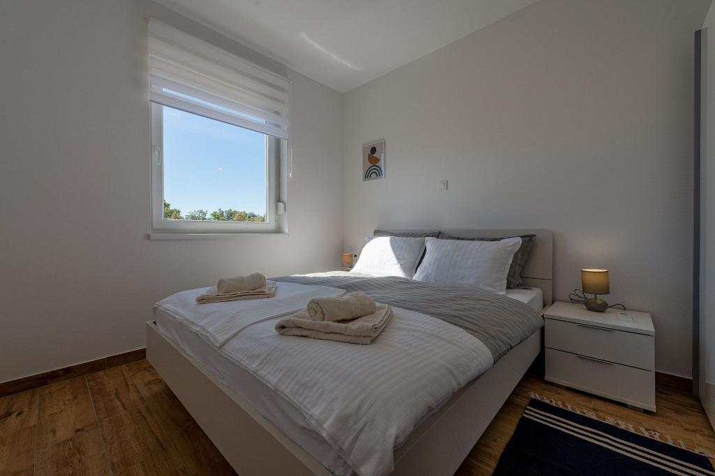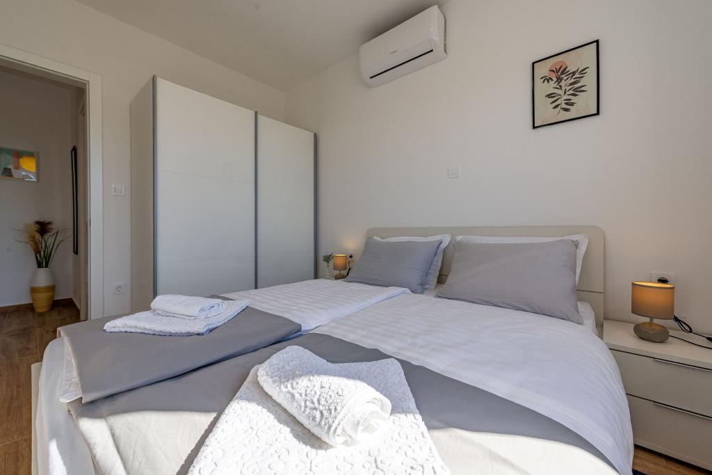 Dolfijnzicht met een zwembad aan het strand is een modern appartement met een privézwembad met uitzicht op de zee, alleen voor uw gebruik. Het ligt in een rustig deel van Mandre op het eiland Pag, op slechts 40 meter van het eerste strand. Appartement met uitzicht op de dolfijnen bestaat uit twee slaapkamers met tweepersoonsbedden, badkamer met inloopdouche, volledig uitgeruste keuken, woonkamer en eetkamer. Het appartement beschikt over 2 parkeerplaatsen in de tuin, evenals een gemeubileerd terras met een zwembad en een tuin met een tuin en een barbecue. Het terras biedt een prachtig uitzicht op de zee en onze vaste bezoekers zijn dolfijnen. Dolphin view II bestaat uit een slaapkamer met een tweepersoonsbed en nog een slaapkamer met twee aparte bedden die kunnen worden gecombineerd tot een tweepersoonsbed, een volledig uitgeruste keuken, een woonkamer en een eetkamer. Het appartement beschikt over 1 parkeerplaats, een gemeubileerd terras met een zwembad speciaal voor u. Restaurants en winkels liggen op slechts 10 minuten loopafstand van het appartement in het centrum van de stad, waar u alles kunt vinden wat u nodig heeft voor een aangename vakantie.
