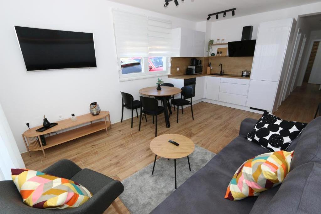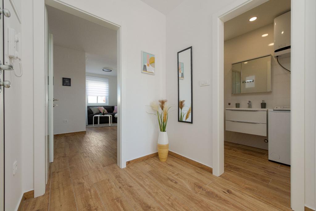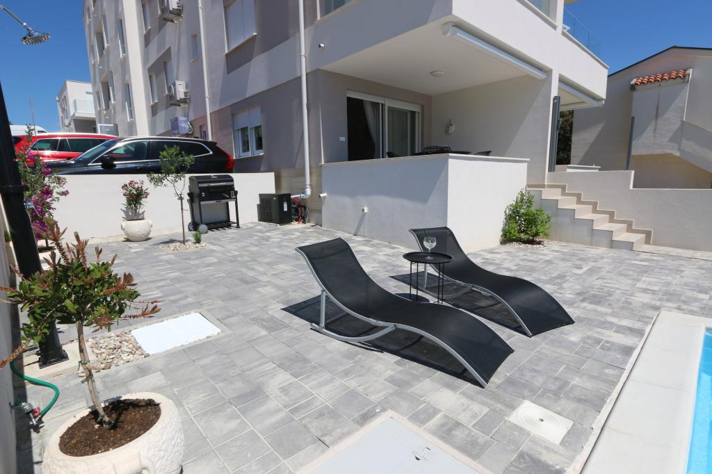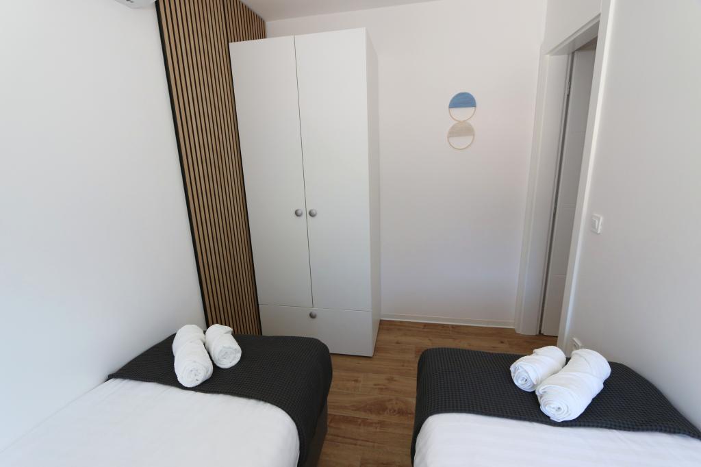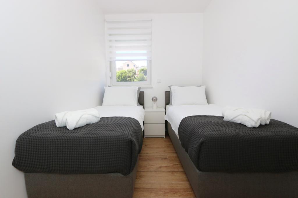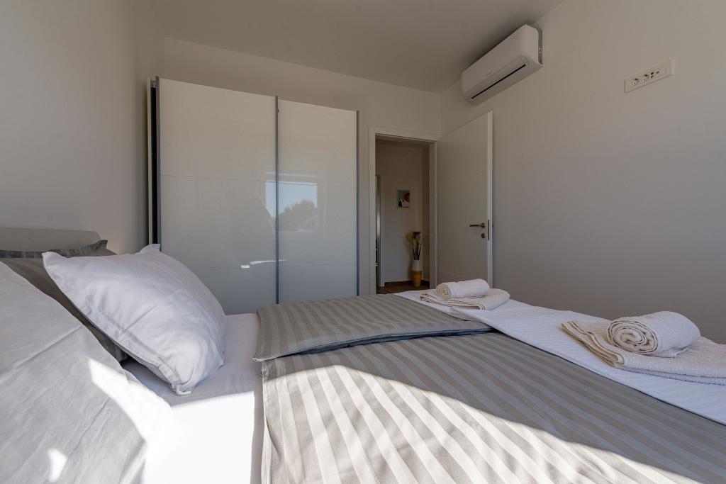 Dolfijnzicht met een zwembad aan het strand is een modern appartement met een privézwembad met uitzicht op de zee, alleen voor uw gebruik. Het ligt in een rustig deel van Mandre op het eiland Pag, op slechts 40 meter van het eerste strand. Appartement met uitzicht op de dolfijnen bestaat uit twee slaapkamers met tweepersoonsbedden, badkamer met inloopdouche, volledig uitgeruste keuken, woonkamer en eetkamer. Het appartement beschikt over 2 parkeerplaatsen in de tuin, evenals een gemeubileerd terras met een zwembad en een tuin met een tuin en een barbecue. Het terras biedt een prachtig uitzicht op de zee en onze vaste bezoekers zijn dolfijnen. Dolphin view II bestaat uit een slaapkamer met een tweepersoonsbed en nog een slaapkamer met twee aparte bedden die kunnen worden gecombineerd tot een tweepersoonsbed, een volledig uitgeruste keuken, een woonkamer en een eetkamer. Het appartement beschikt over 1 parkeerplaats, een gemeubileerd terras met een zwembad speciaal voor u. Restaurants en winkels liggen op slechts 10 minuten loopafstand van het appartement in het centrum van de stad, waar u alles kunt vinden wat u nodig heeft voor een aangename vakantie.