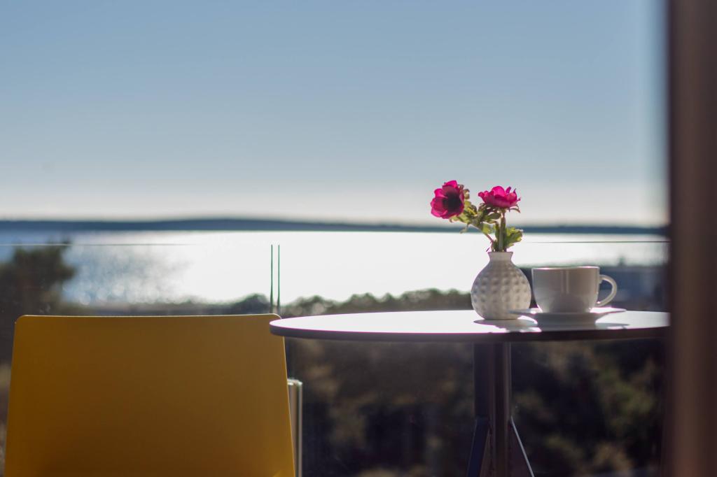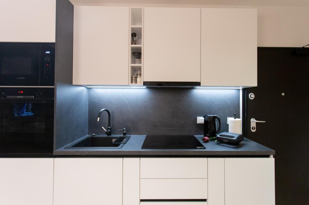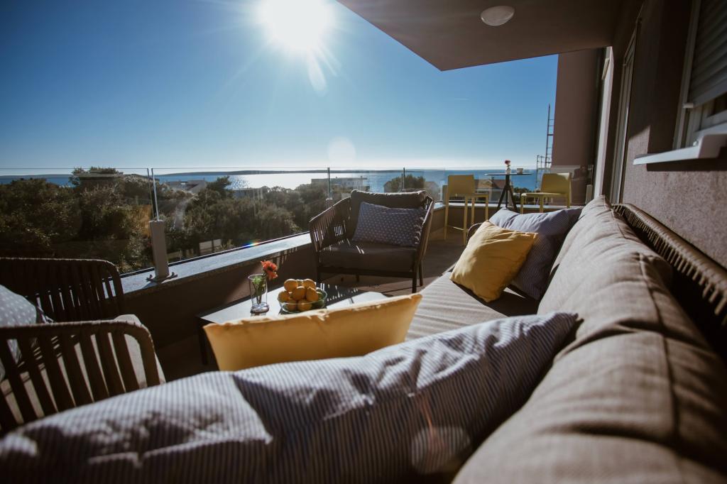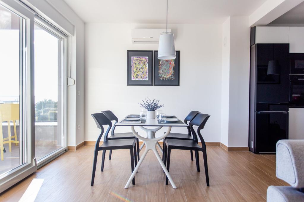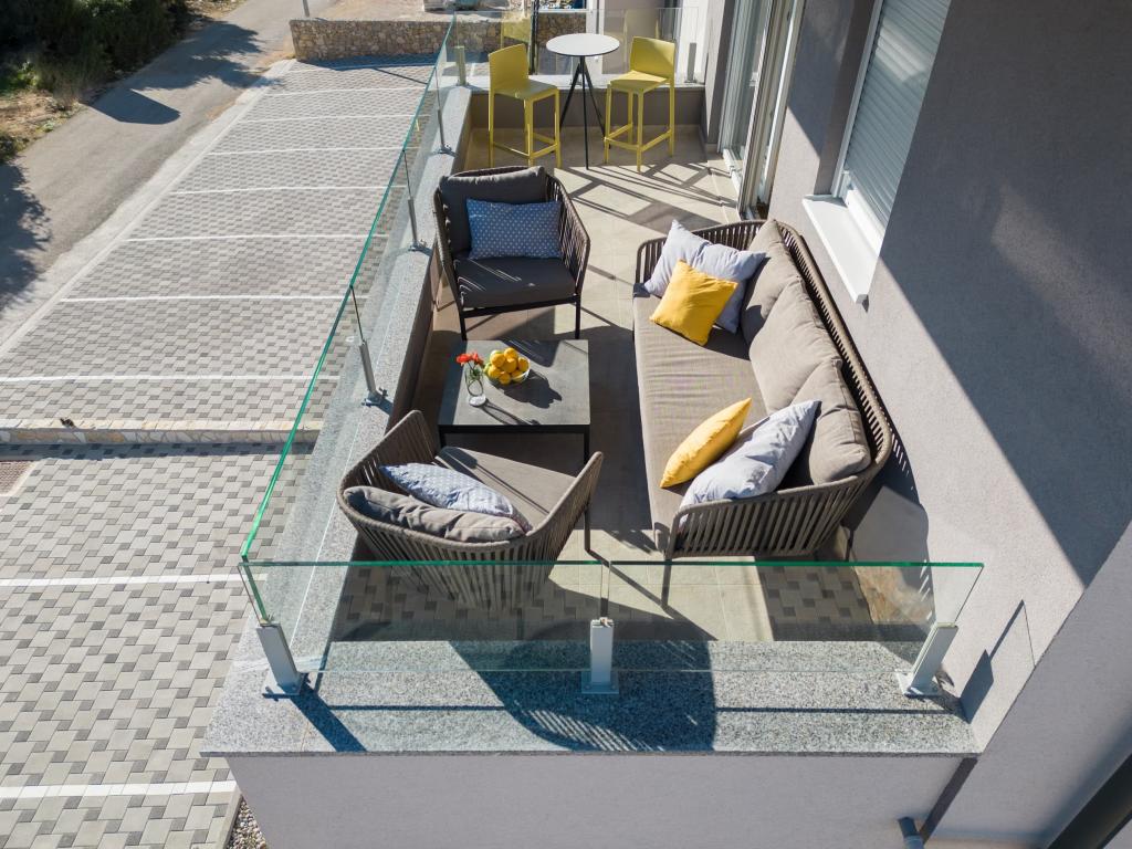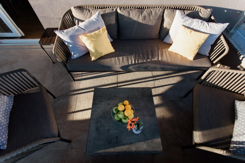 Het appartement is comfortabel, gezellig, met een zeer modern interieur, een zeer hoog niveau van gastheerservice: meubilair, apparaten en apparaten van hoge kwaliteit, comfortabele bedden om te slapen met beddengoed en kussens van zeer hoge kwaliteit, discrete verlichting..... We bereidden onze eigen maaltijden en genoten van ontbijt, lunch en diner in het appartement en op het balkon. Een prachtig uitzicht op de zee vanaf dat zorgvuldig ingerichte grote balkon. De zeer comfortabele zit- en ligbank op het balkon nodigt uit om erop te gaan liggen en niet te bewegen... je ademt de schone zeelucht in en luistert naar het getjilp van de vogels in het bosje recht tegenover het appartement... dat De groene gordel langs de hele straat staat vol met olijfbomen, laurier, sparren, cipressen en andere mediterrane planten. Nette entree, marmeren trap... In dezelfde straat (aan zee) is er een banketbakkerij met een terras en heerlijke ijsjes en kopjes, en iets verderop in de hoofdstraat een bistro met een terras op de zeeklif met uitstekende koffie en cocktails. Naast de zee ligt een promenade van een paar kilometer, waar we 's ochtends en bij de indrukwekkende zonsondergang maximaal gebruik van maakten. Het zwemseizoen is net begonnen, we waren tevreden met het onderdompelen van onze voeten in de kleine zandbaai. De zee is heerlijk blauw, schoon, helder. Het strand strekt zich uit over het gehele deel van de boulevard. als het niet mogelijk is om in de buurt van het groen te verblijven, is een parasol nodig. We voelden ons heel, heel goed tijdens ons hele verblijf in het appartement.., het straalt duidelijk "positieve energie" uit. Wij adviseren!!!!!