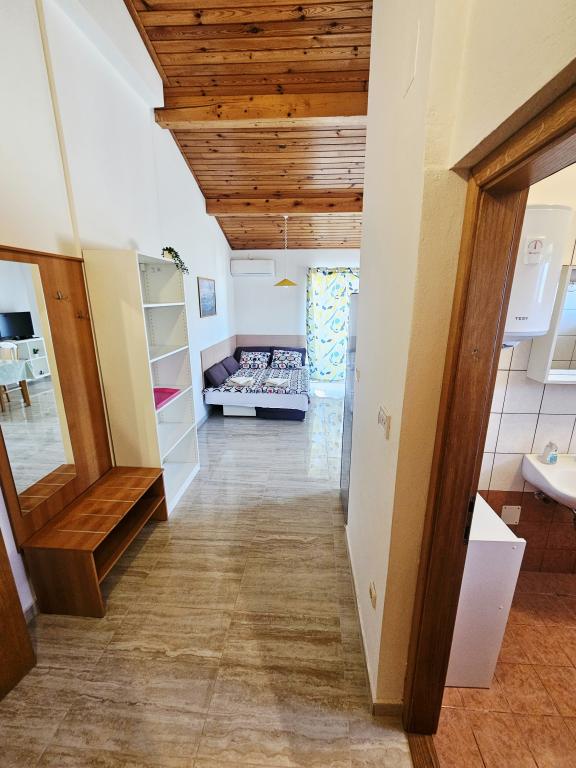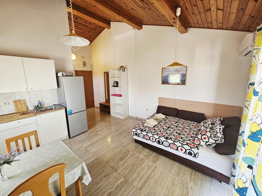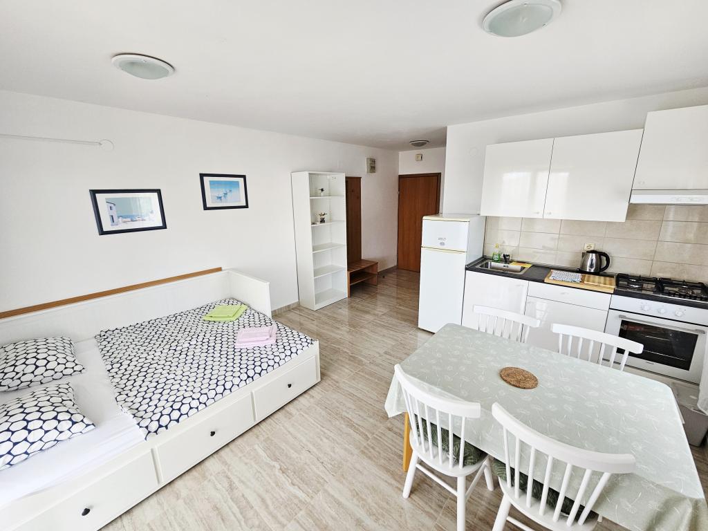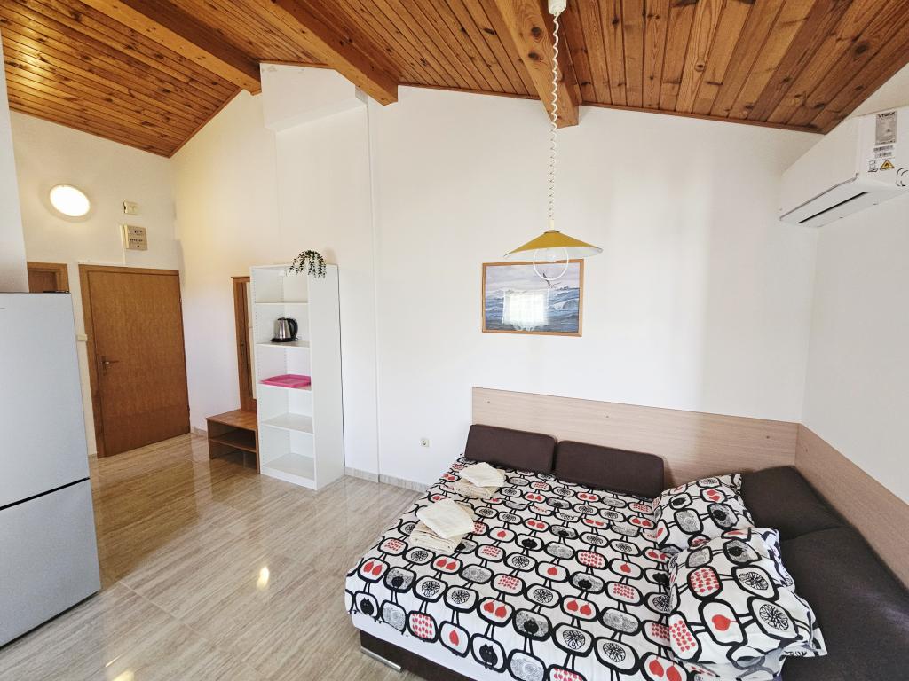 Een fantastische plek om een vakantie door te brengen. We verbleven in appartement A6 + 1 op de begane grond, het is echt de moeite waard om terug te denken. Prachtig ruim appartement, naast een groot buitenterras, waar we een prachtig uitzicht op zee hadden. Buitenhaard waar het naar lekker eten rook. Grote tuin, parkeerplaats, buitendouche, een paar stappen naar het strand, dat is wat we wilden. We waren hier voor het eerst, maar ik hoop niet voor de laatste keer. De eigenaren zijn erg vriendelijk en behulpzaam, als we iets nodig hadden, brachten ze ons. We raden het aan, vooral voor diegenen die graag zo dicht mogelijk bij het strand willen zijn. In de buurt is een banketbakkerij, waar ijs van topkwaliteit is, een broodwinkel, de verkoop van zelfgemaakte groenten en fruit, en nog iets anders dat de heldere zee als een parel telt, en prachtige zonsondergangen. Alles was onvergetelijk.