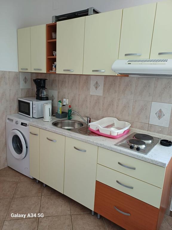 De appartementen zijn gelegen in een rustige wijk genaamd Mandre, op de tweede rij aan zee, op 40 meter van de zee. De accommodatie ligt op 10 minuten lopen van het centrum, waar alle benodigde voorzieningen (apotheek, winkel, fruitwinkel, cafés en restaurants) zich bevinden.