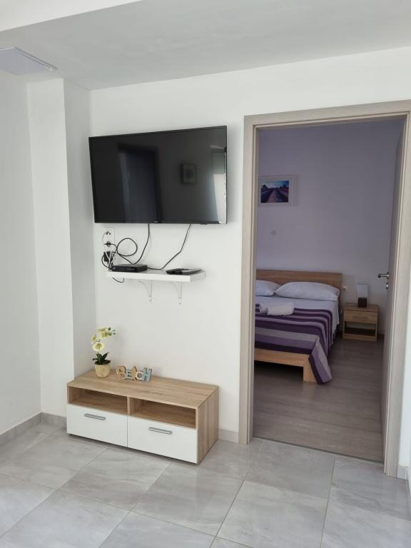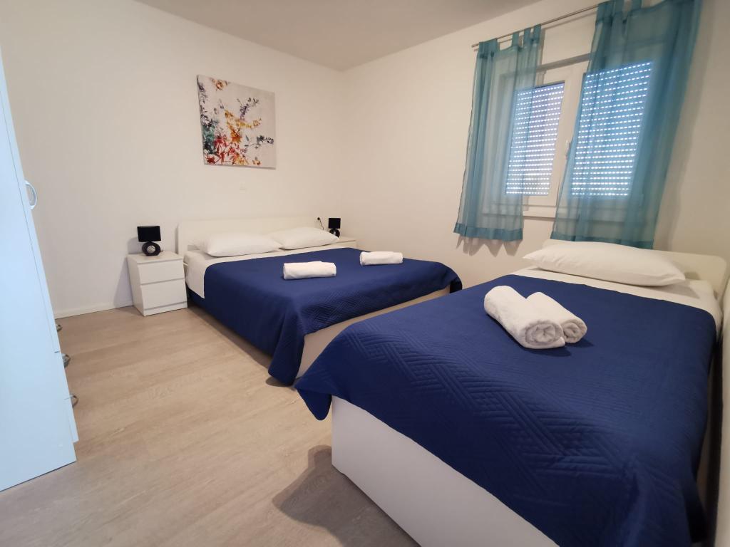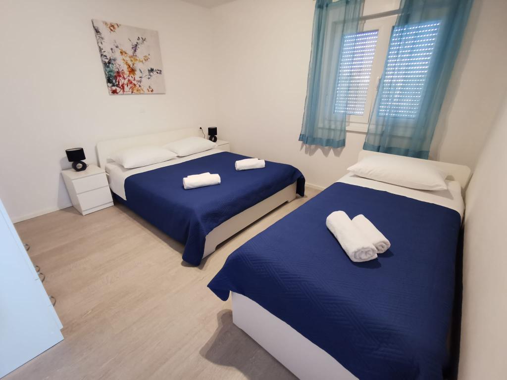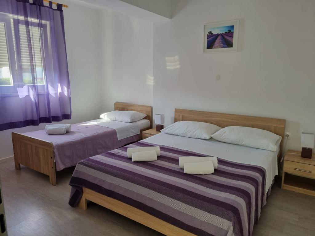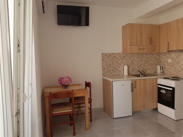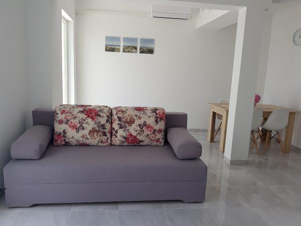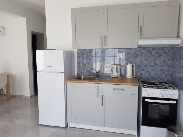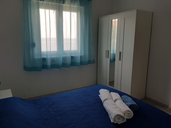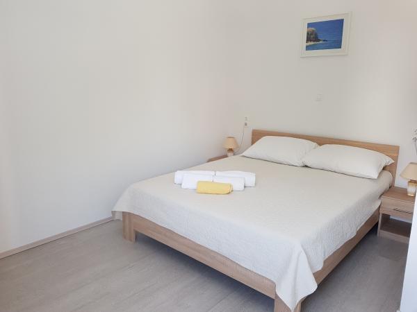 Onze appartementen zijn gelegen aan zee, in het centrum van Mandri, op het eiland Pag. Alle appartementen bevinden zich op de 1e verdieping van ons familiehuis en bieden dus een prachtig uitzicht op de zee. De appartementen zijn onlangs gerenoveerd en voorzien van internet, airconditioning, TV/SAT, volledig uitgeruste keukens en als extra kunt u naast de zonwering ook horren voor alle ramen laten zakken ter bescherming tegen muggen. Elk appartement heeft een eigen parkeerplaats en alle gasten kunnen gebruikmaken van de barbecue in de tuin. Via ons erf gaat u direct naar het strand, dus voor een fijne vakantie in de zon heeft u alleen een handdoek over uw schouder nodig! Wij kijken enorm uit naar uw komst!