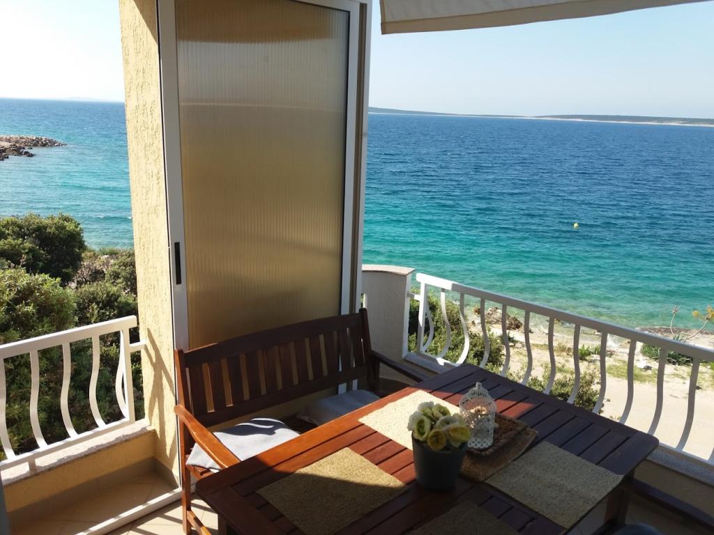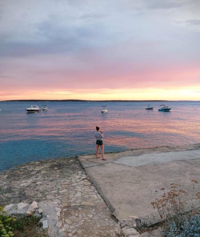 Rustig gelegen, ideaal voor een gezin met kinderen omdat het strand letterlijk voor de deur ligt. Het appartement bovenaan is goed uitgerust, schoon en het uitzicht vanaf het terras is prachtig. De gastheren zijn uiterst vriendelijk en meegaand, als we iets nodig hadden, reageerden ze onmiddellijk. Mandre is een kleine plaats, relaxte sfeer en alles is binnen handbereik. We zullen zeker terugkomen.