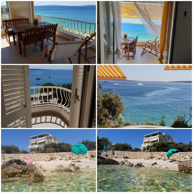 Huis op 10 meter van de zee, strand voor het huis. Elk appartement is 45 m², terras 12 m², balkon 4 m², allemaal met direct uitzicht op zee en de eilanden. Parkeren is mogelijk, barbecue in de tuin, water uitstekend om te drinken. De zee is schoon, de stranden zijn prachtig aangelegd. Mandre is gericht op familietoerisme.
