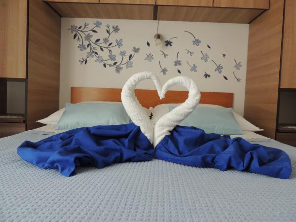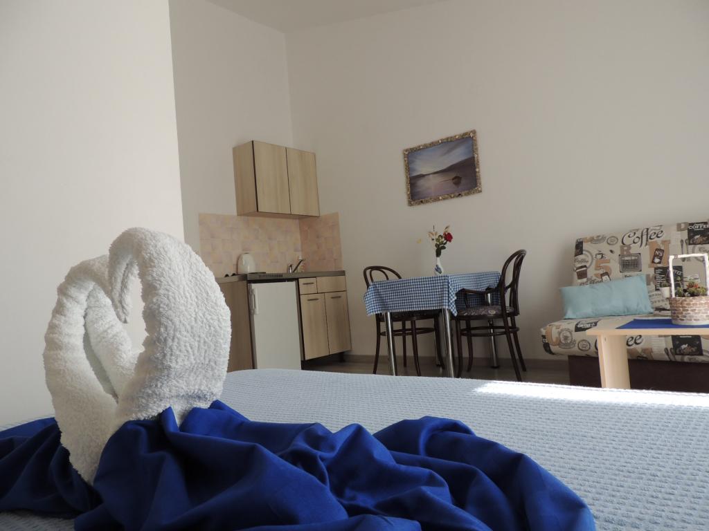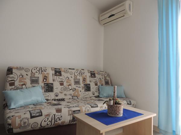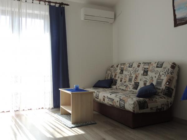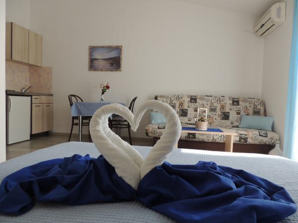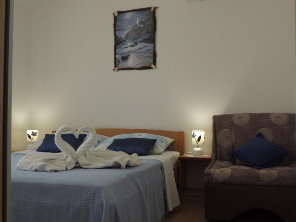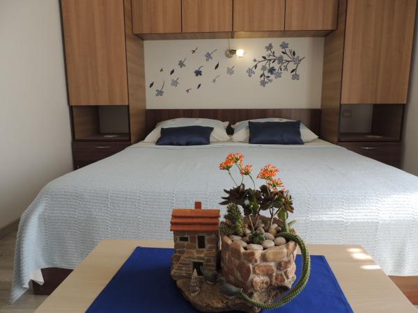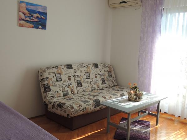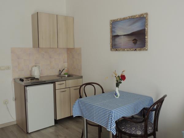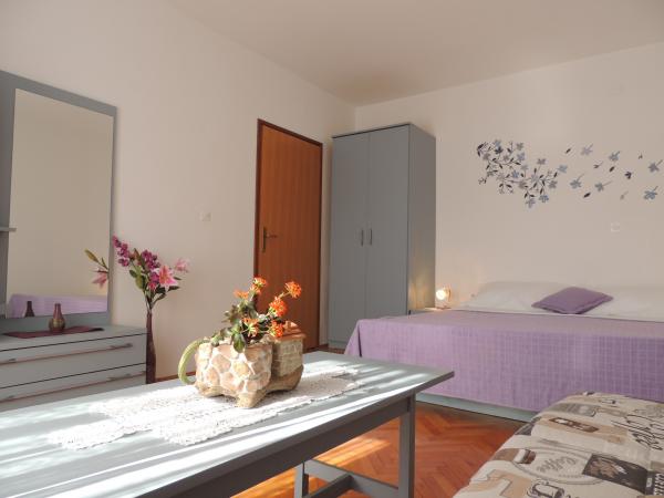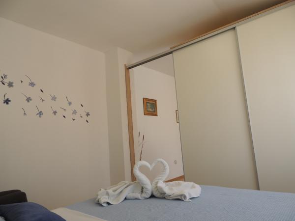 Het appartement ligt op een geweldige locatie op loopafstand. Je krijgt een parkeerkaart voor de auto. De kamer was schoon en goed uitgerust met de AC, was een geweldige kast, een comfortabel bed. Het beste is echter de eigenaar Marija een zeer grote en warme vrouw die haar pensioen leidt met liefde en enthousiasme. Ze spreekt goed Duits en staat altijd voor vragen We werden hartelijk verwelkomd met koffietaartwater-schnaps en kregen een leuk afscheidscadeau. Gewoon super. Ook is het bijbehorende restaurant top geweldig eten toppersoneel. Bedankt Susanna Uwe Tyson