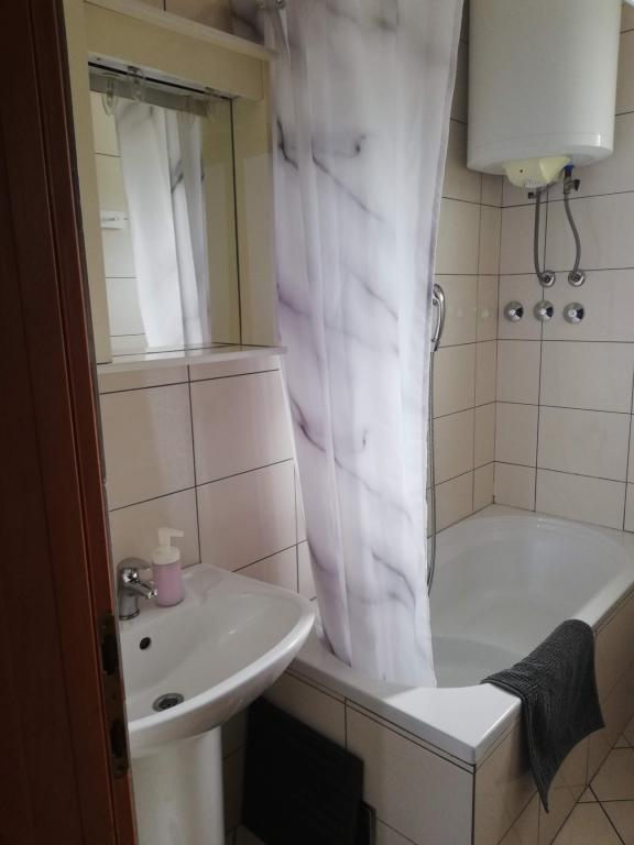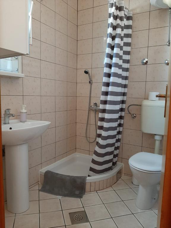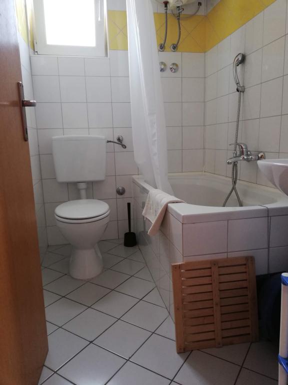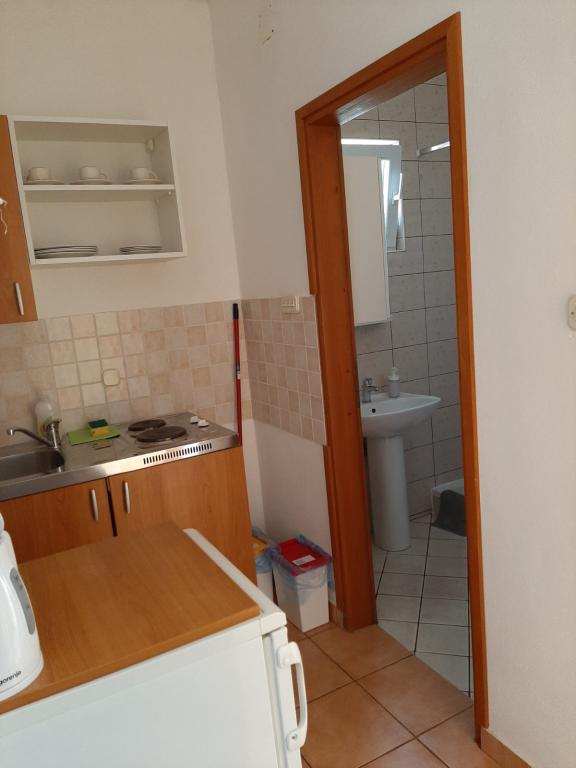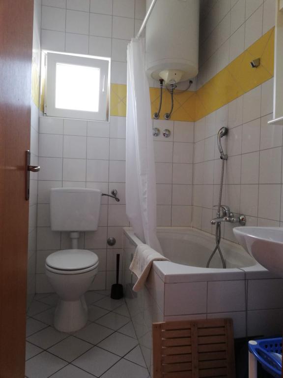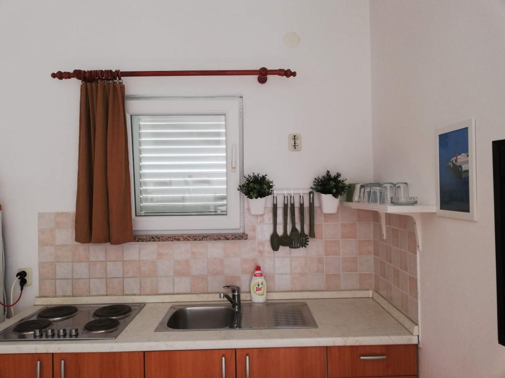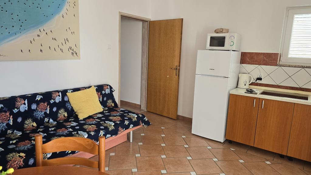 Bij het inchecken wordt u begroet door receptionisten, een fatsoenlijke en discrete familie op de begane grond van het huis en u kunt altijd op hun hulp rekenen. Komt u met de auto, dan kunt u gratis parkeren voor de deur. Ook is er gratis draadloos Wi-Fi in huis. Het huis is gelegen in een rustige straat, 100 meter van de zee. Er is geen geluid te horen van het strand en de nabijgelegen cafés. Pag biedt talloze plaatsen voor entertainment en culturele evenementen (het beroemde Pag Zomercarnaval is iets dat u niet mag missen, evenals de Pag Culturele Zomer), en uitstekende lokale gerechten en wijn. Vooral de wereldberoemde schapenkaas van Pag is uitstekend, die in elk restaurant op het eiland kan worden geproefd. Om nog maar te zwijgen van de vis en het wereldberoemde Lam van Pag (vanwege de hoge concentratie zout in het gras hebben Pag-schapen bijna geen vet). De stad Pag is middeleeuws, bijna bewaard gebleven, dus u kunt genieten van sightseeing en het prachtige handgemaakte kant bewonderen dat is gemaakt met een naald en is geregistreerd bij UNESCO.