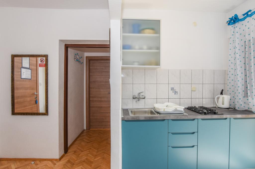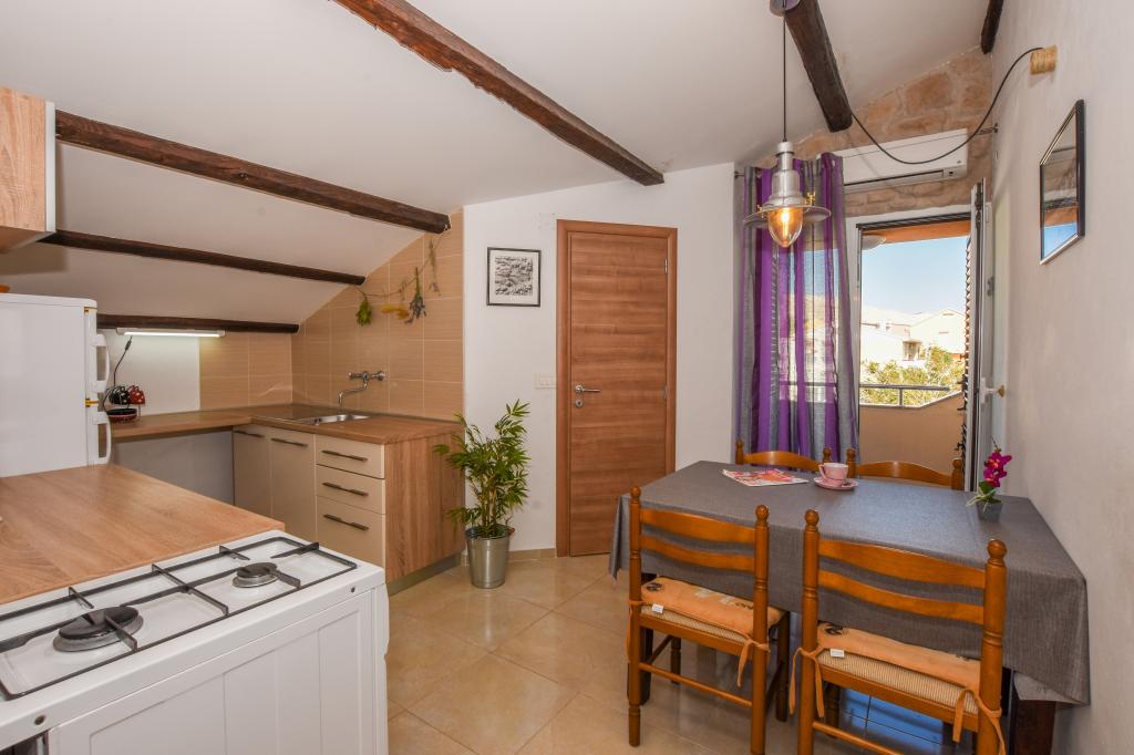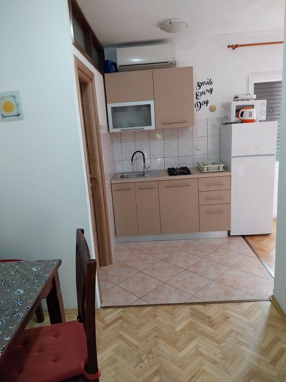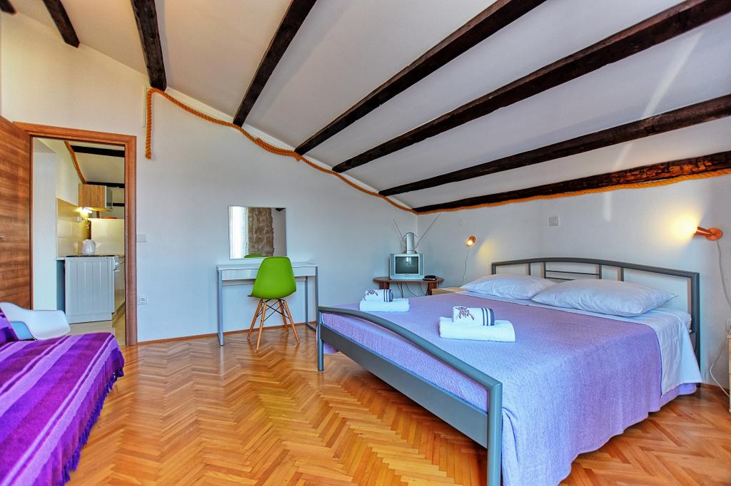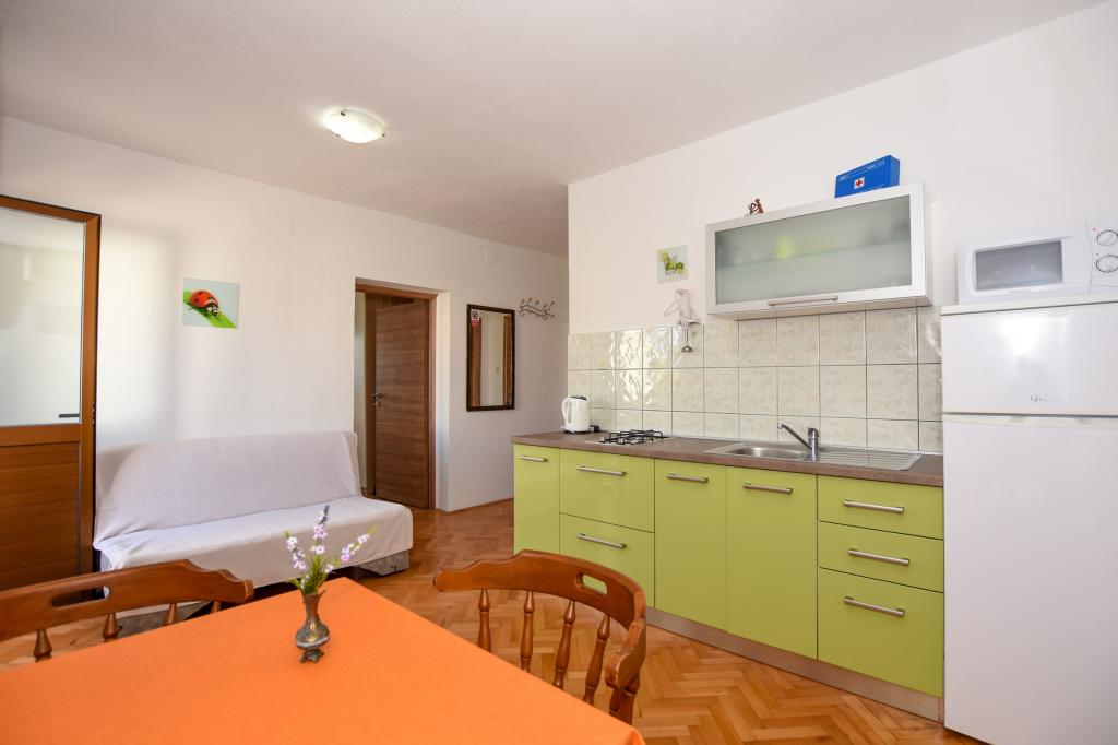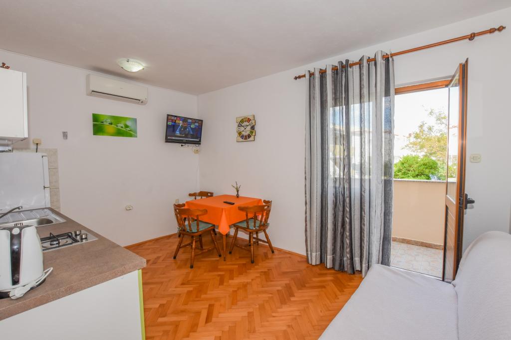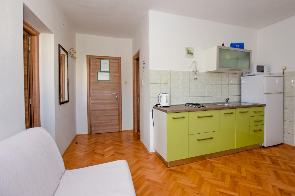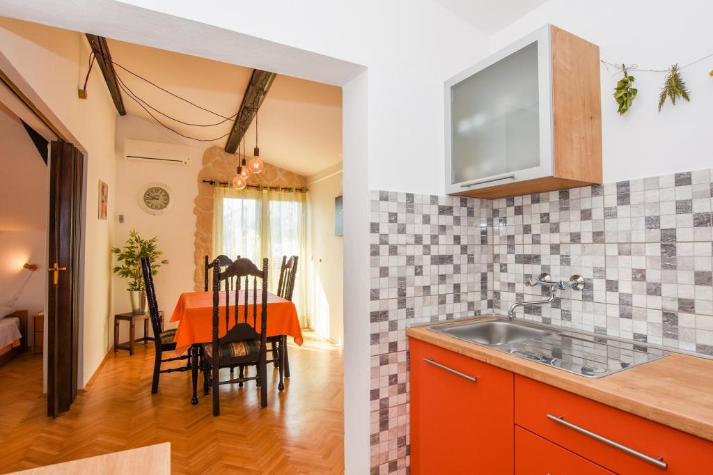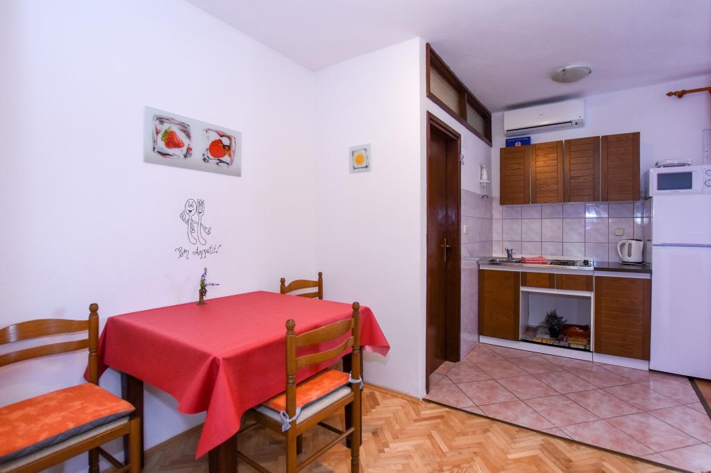 Zeer mooie, vriendelijke en behulpzame eigenaars. Zeer goed contact. Kamer - schoon, goed onderhouden, grote, zeer goed uitgerust (koelkast, fornuis, borden, bestek, potten, haardroger, parasol op het strand, zijn blij met schone ruikende lakens en handdoeken). Mooi uitzicht vanaf het terras en balkon. Verzekerd van een parkeerplaats op ongeveer 100 meter van het kleine strand in de buurt van het huis. Mooie, charmante stad. Dit gebied heeft veel plaatsen om te verkennen. Zowel wij als de kinderen waren erg blij en blij Kroatië. Wij raden!
