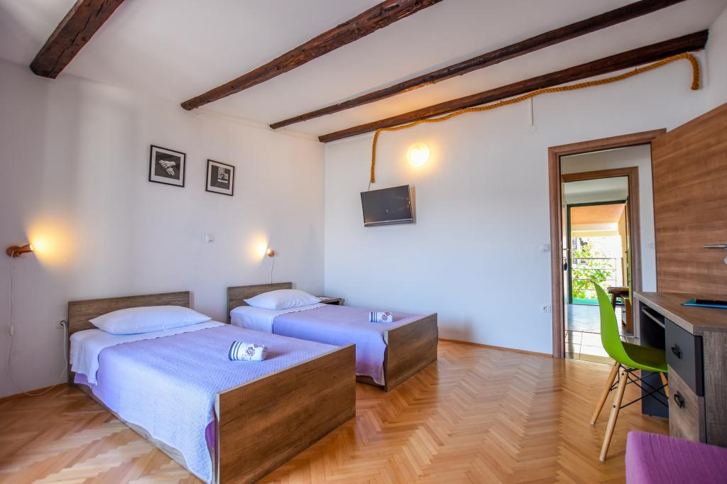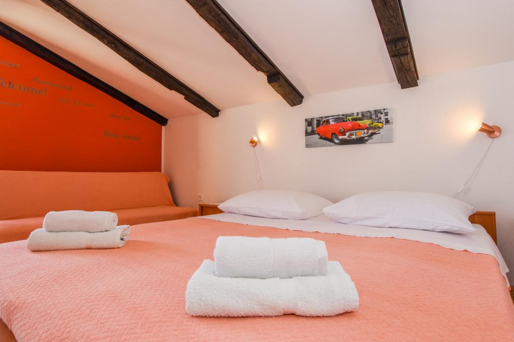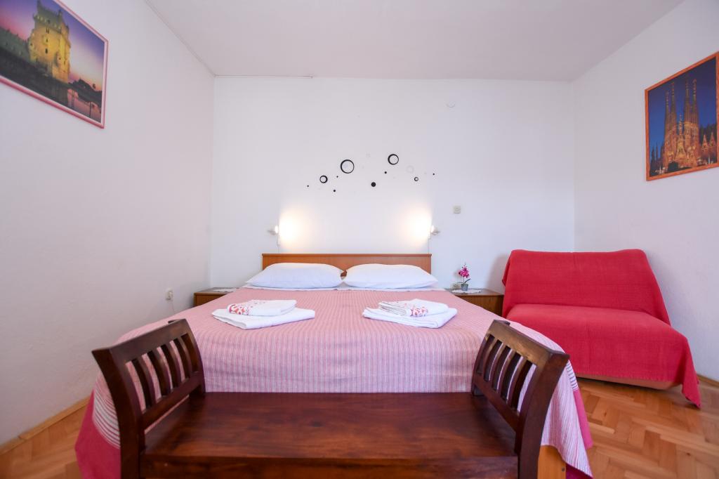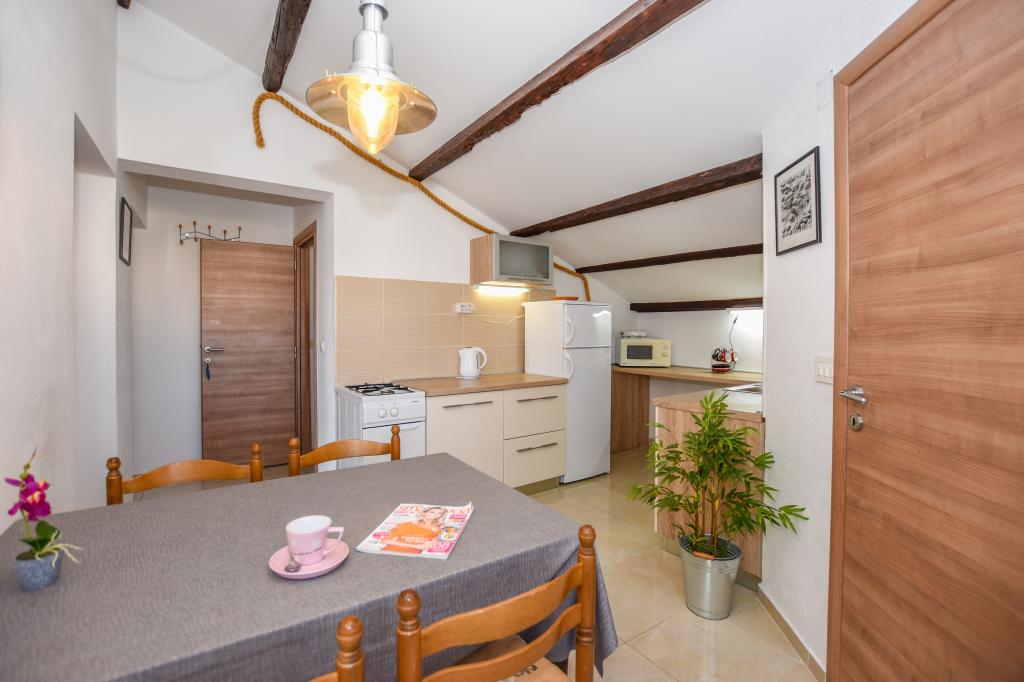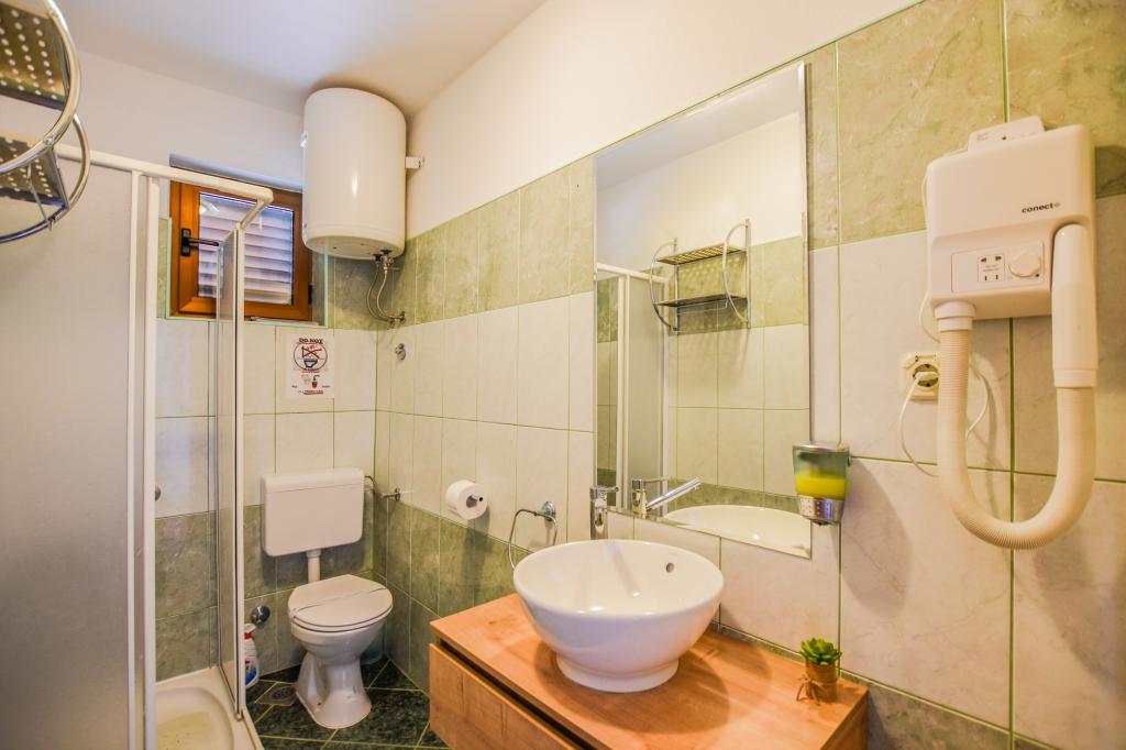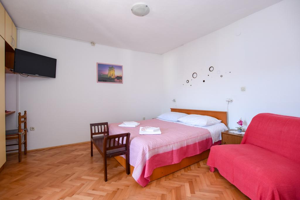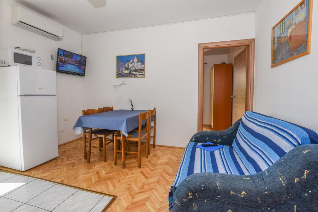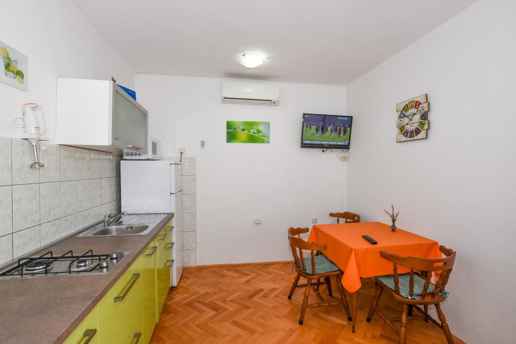 Zeer mooie, vriendelijke en behulpzame eigenaars. Zeer goed contact. Kamer - schoon, goed onderhouden, grote, zeer goed uitgerust (koelkast, fornuis, borden, bestek, potten, haardroger, parasol op het strand, zijn blij met schone ruikende lakens en handdoeken). Mooi uitzicht vanaf het terras en balkon. Verzekerd van een parkeerplaats op ongeveer 100 meter van het kleine strand in de buurt van het huis. Mooie, charmante stad. Dit gebied heeft veel plaatsen om te verkennen. Zowel wij als de kinderen waren erg blij en blij Kroatië. Wij raden!