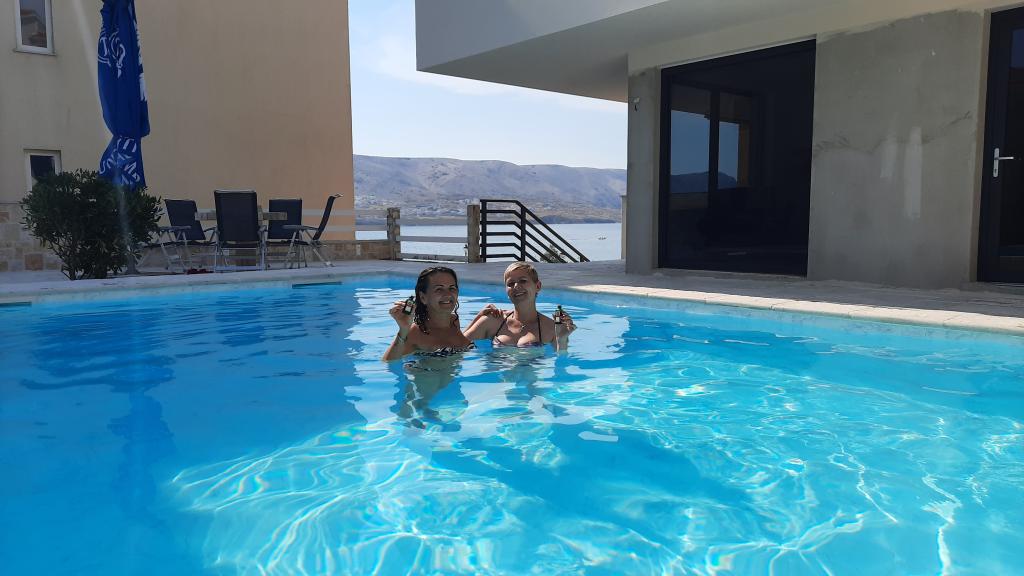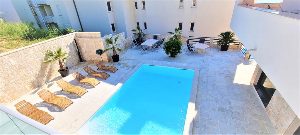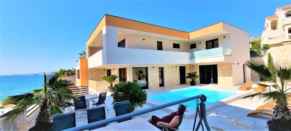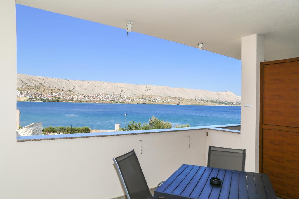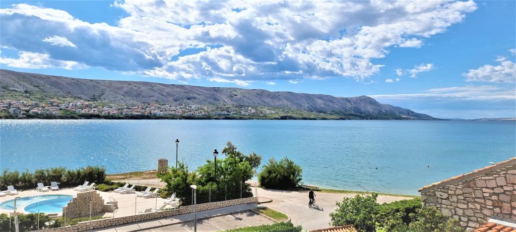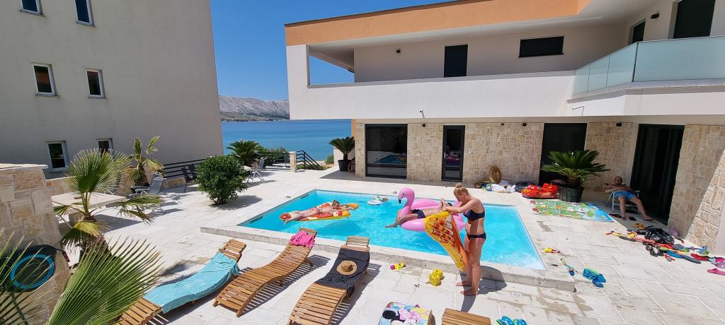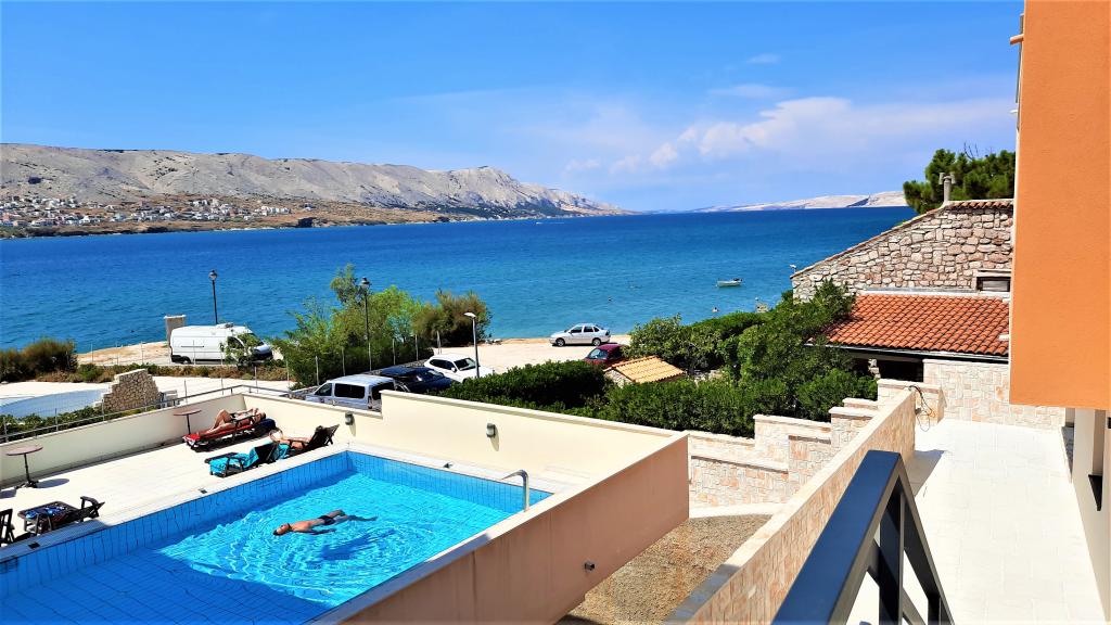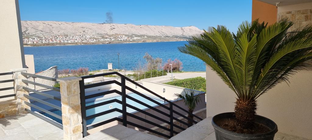 Moderne appartementsvilla met zwembad - eerste rij naar de zee, 400 m van het centrum van Pag - wandeling door de zee. De capaciteit van de accommodatie is 6 appartementen met verschillende afmetingen en interieurs. De appartementen zijn voorzien van airconditioning en modern uitgerust, met ruime terrassen en uitzicht op zee.