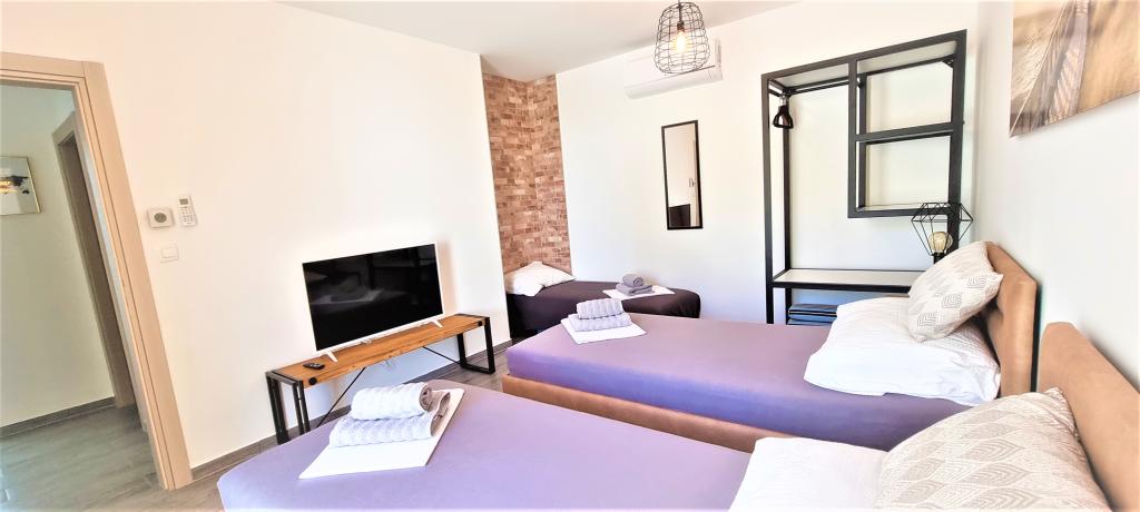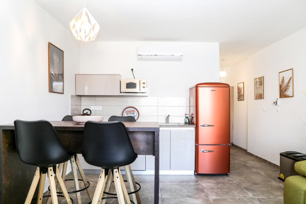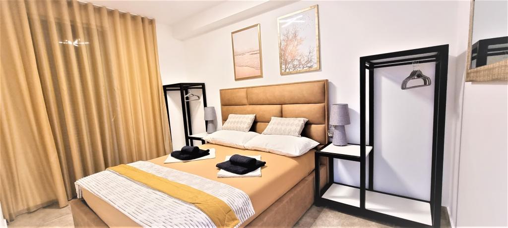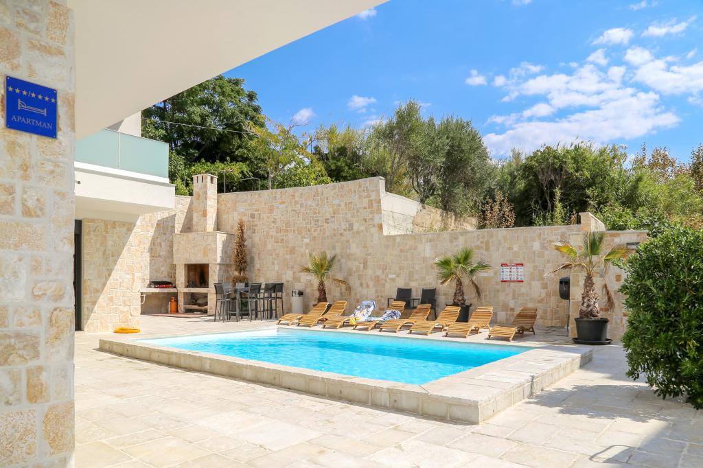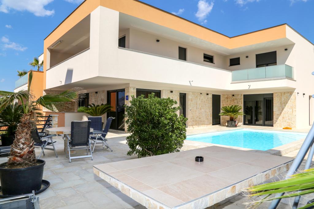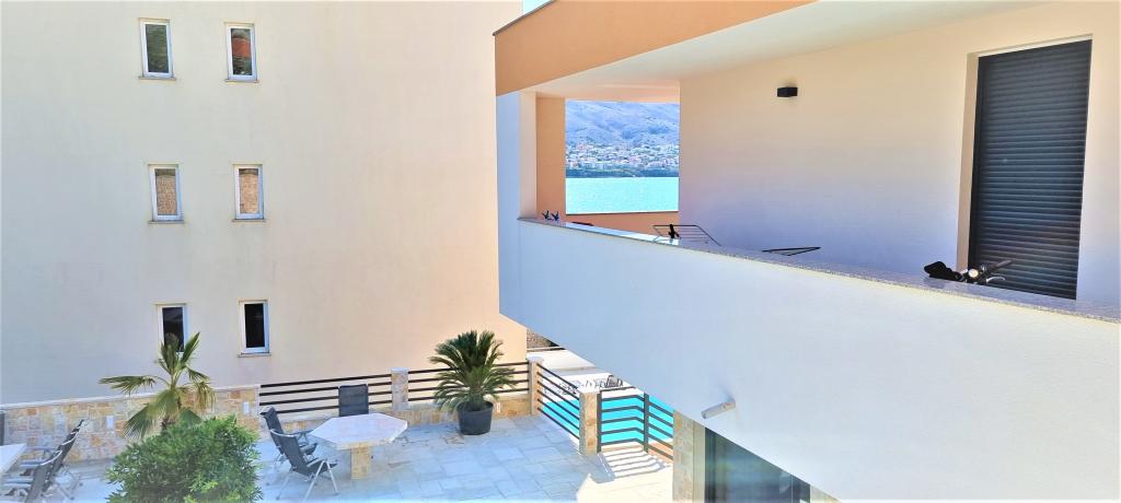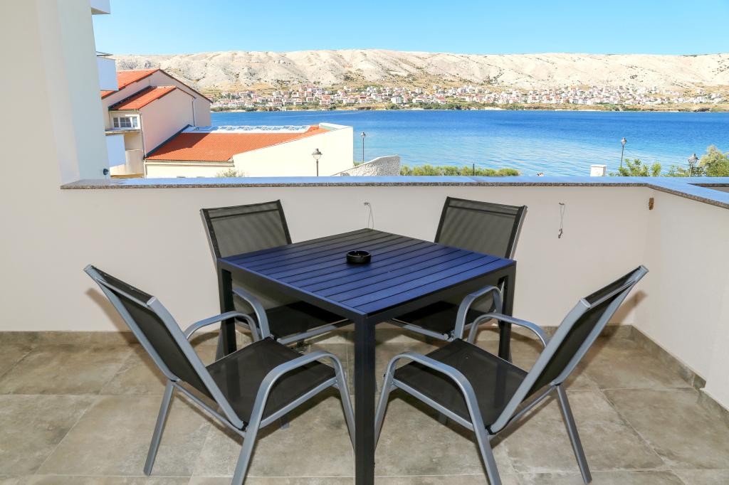 Moderne appartementsvilla met zwembad - eerste rij naar de zee, 400 m van het centrum van Pag - wandeling door de zee. De capaciteit van de accommodatie is 6 appartementen met verschillende afmetingen en interieurs. De appartementen zijn voorzien van airconditioning en modern uitgerust, met ruime terrassen en uitzicht op zee.