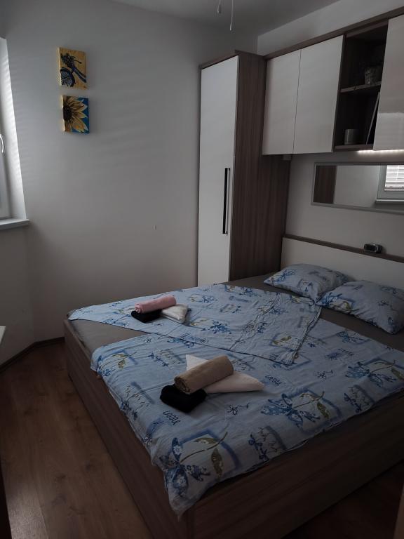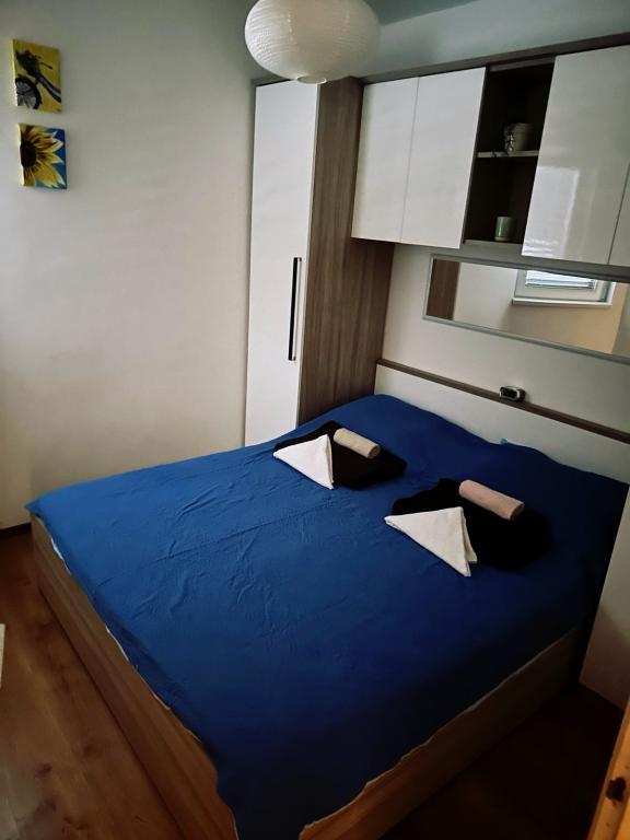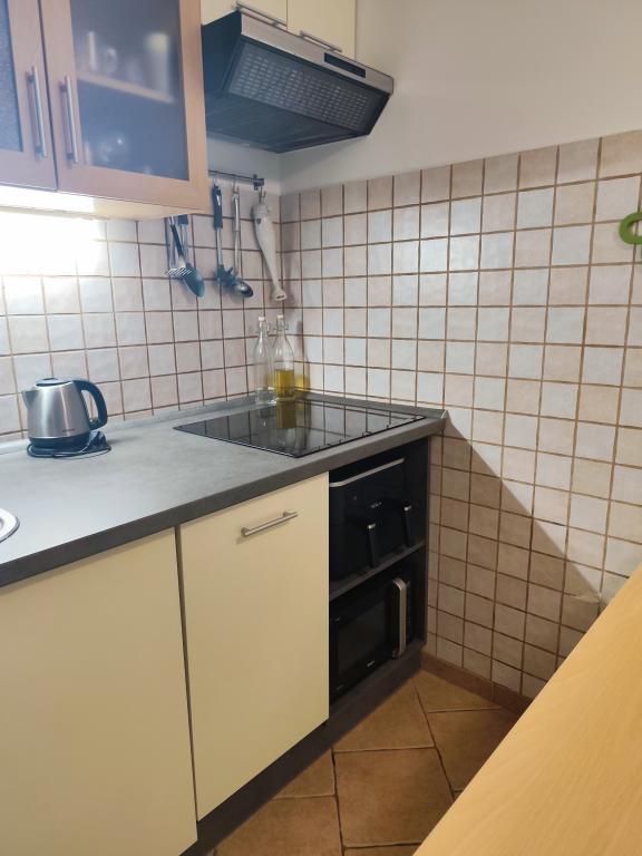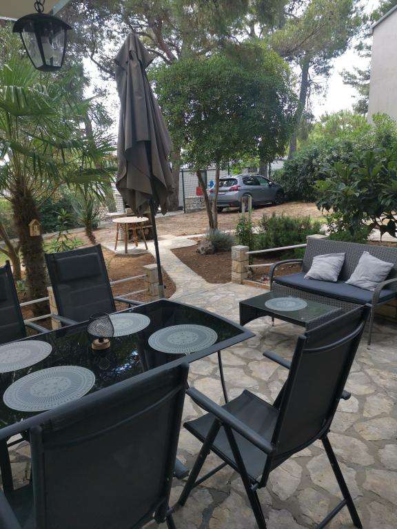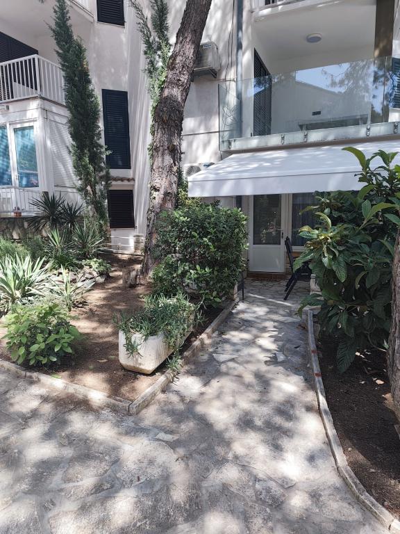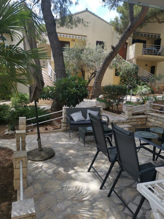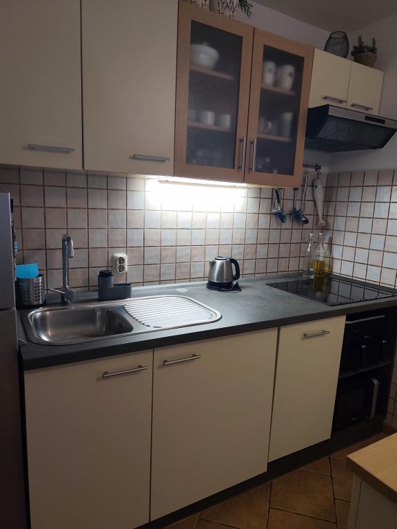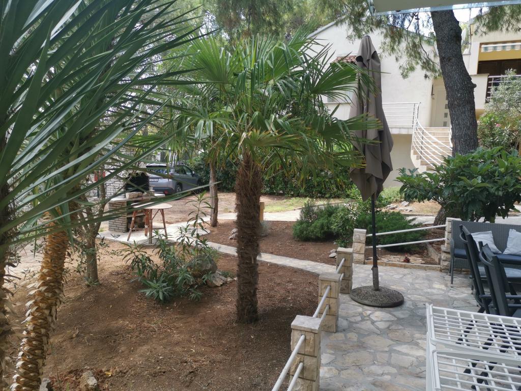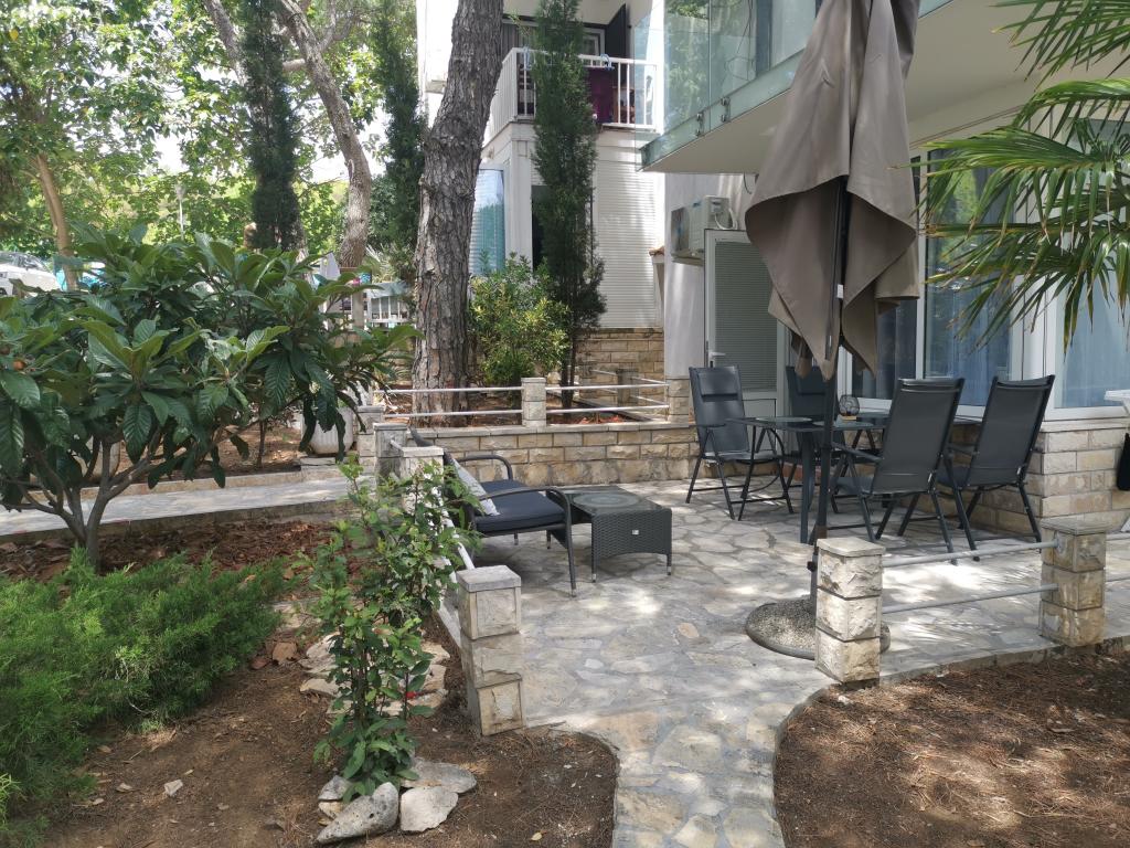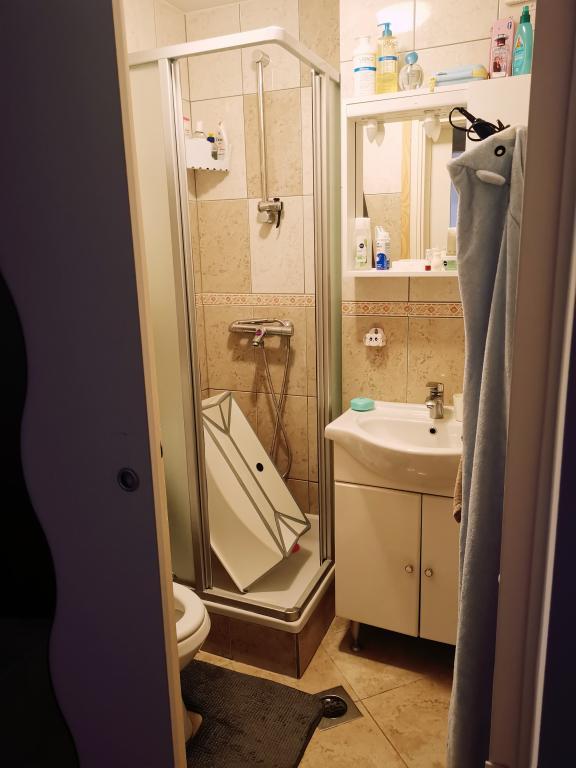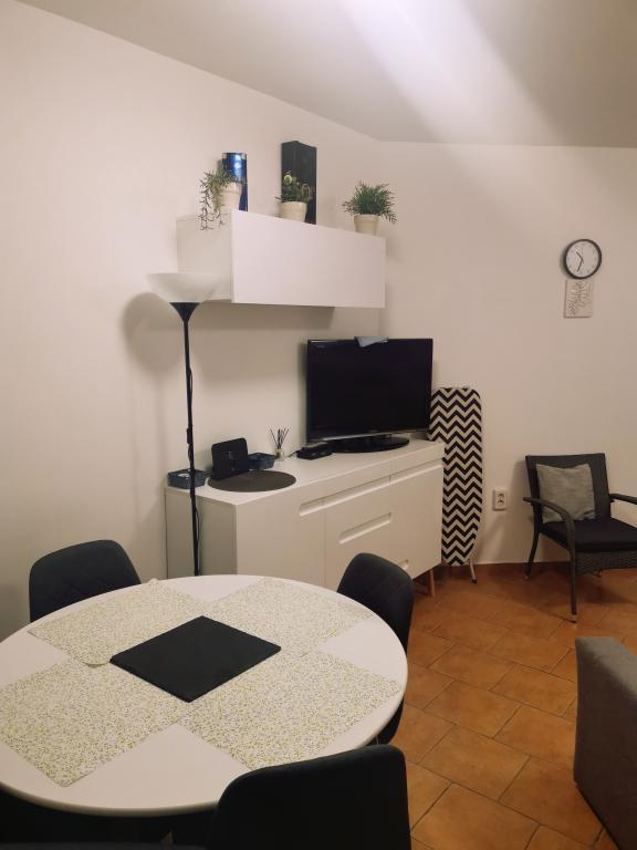 Een romantisch en sfeervol appartement voor een gezin in een rustige doodlopende straat. De pittoreske mediterrane omgeving van het terras is een weldaad voor lichaam en geest. Het appartement maakt deel uit van een gebouw in een beveiligde woonwijk. Het beschikt over een prachtig, 20 meter groot terras waar u de zomer, dag en nacht, kunt doorbrengen, met het geluid van krekels op de achtergrond. Het terras is voorzien van een tafel met 6 stoelen, een comfortabele zithoek en een barbecue (hout of houtskool). Het interieur bestaat uit een slaapkamer met een tweepersoonsbed, een loggia met een bed van 160x200 cm en, indien nodig, een kinderbedje. De badkamer heeft een douchecabine en alle benodigde accessoires. Vanuit een kleine hal komt u in de open woonkamer met eethoek en keuken. De keuken is van alle gemakken voorzien (vaatwasser, wasmachine, boiler, koelkast met vriezer, magnetron, handmixer en klassieke mixer, airfryer) en er is ook een extra bed dat als tweepersoonsbank kan dienen tegenover de televisie. Er zijn diverse kledingkasten. De eettafel bestaat uit 4 stoelen met twee extra zitplaatsen.