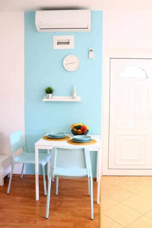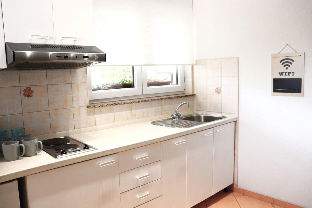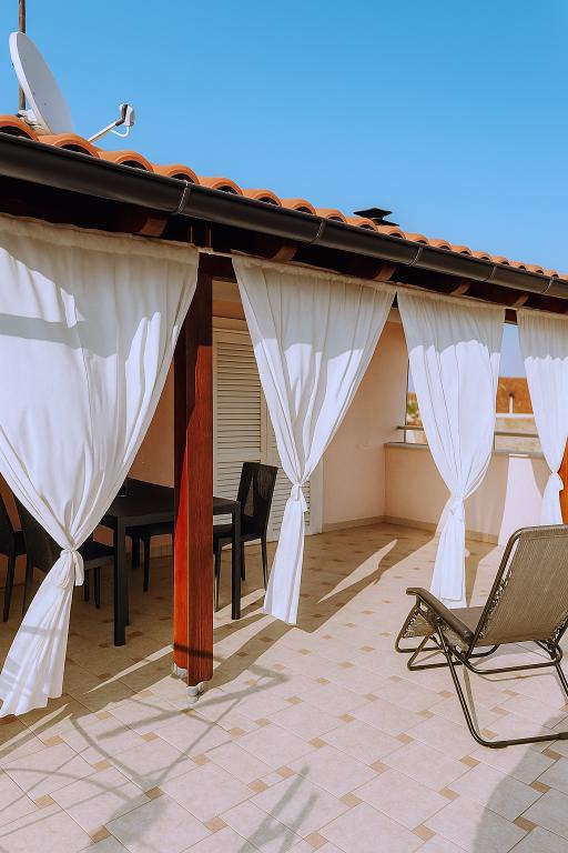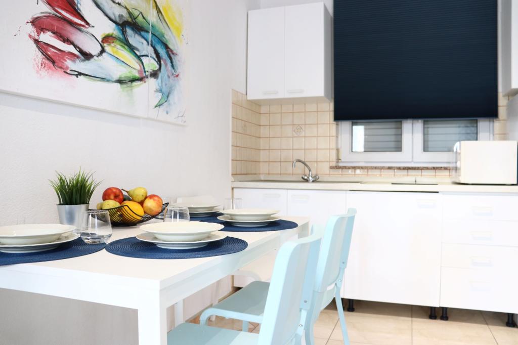 Appartement A4 is erg mooi, ruim, schoon met een groot terras met uitzicht op zee en een zeer goed uitgeruste keuken. De vrouw des huizes is aardig en vriendelijk. De locatie van het appartement is op een rustige locatie, maar tegelijkertijd op een steenworp afstand van de zee, winkels en restaurants. Voor gezinnen met hele kleine kinderen is het appartement niet het meest geschikt, de toegang is via een wenteltrap en de slaapkamer met aparte bedden bevindt zich buiten het appartement met een aparte ingang vanaf het terras, we moesten slapen op de bank, die we wilde vermijden door te kiezen voor een appartement met meerdere slaapkamers. Maar voor anderen is het appartement een goede keuze.
