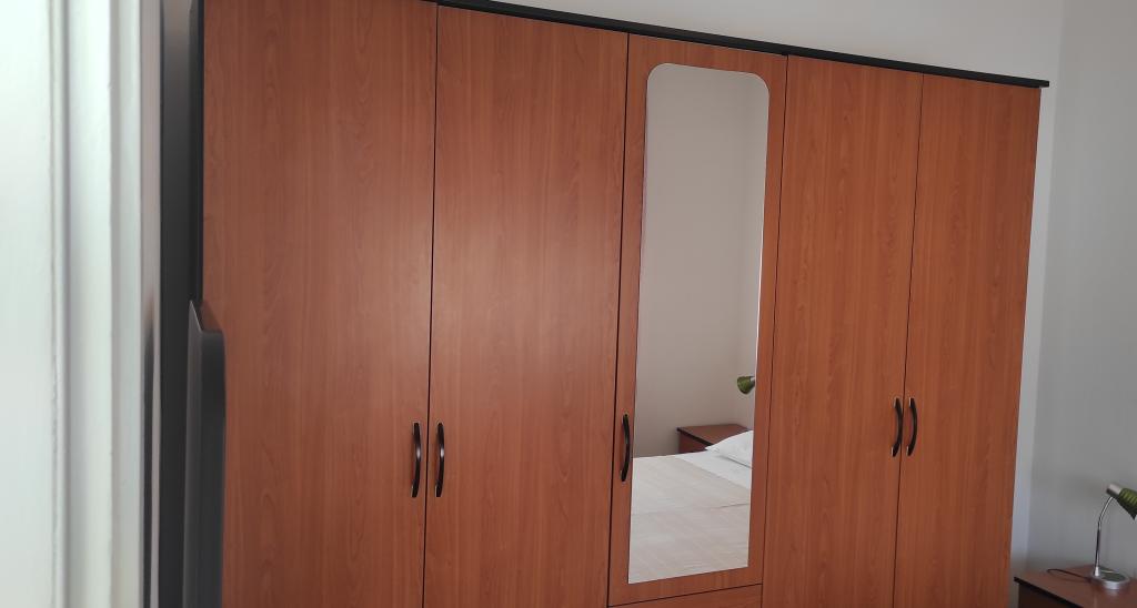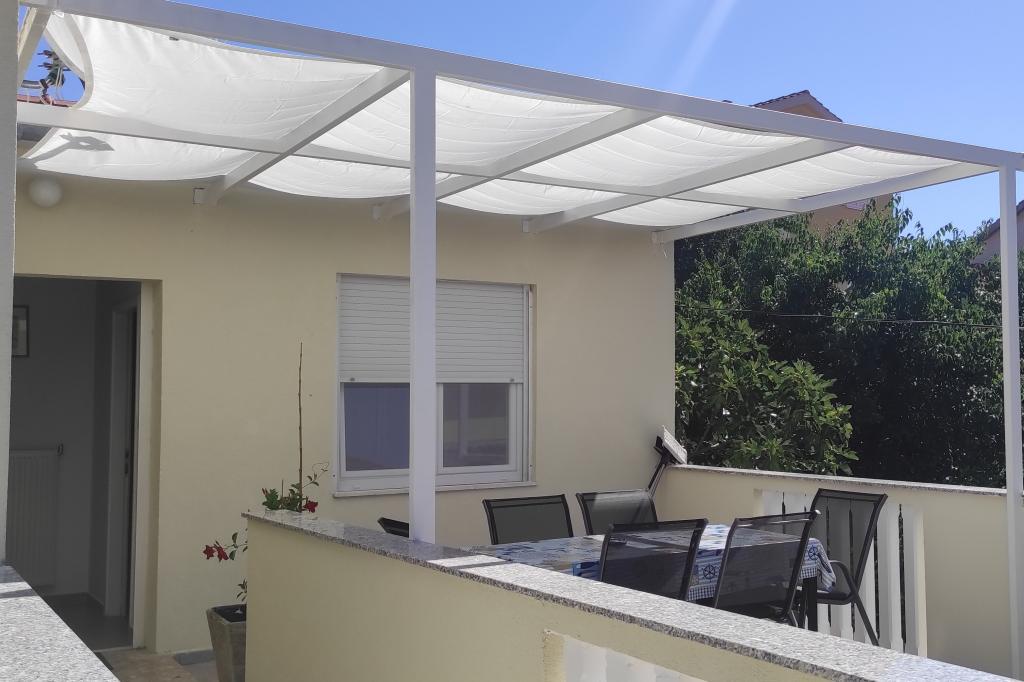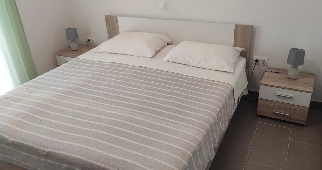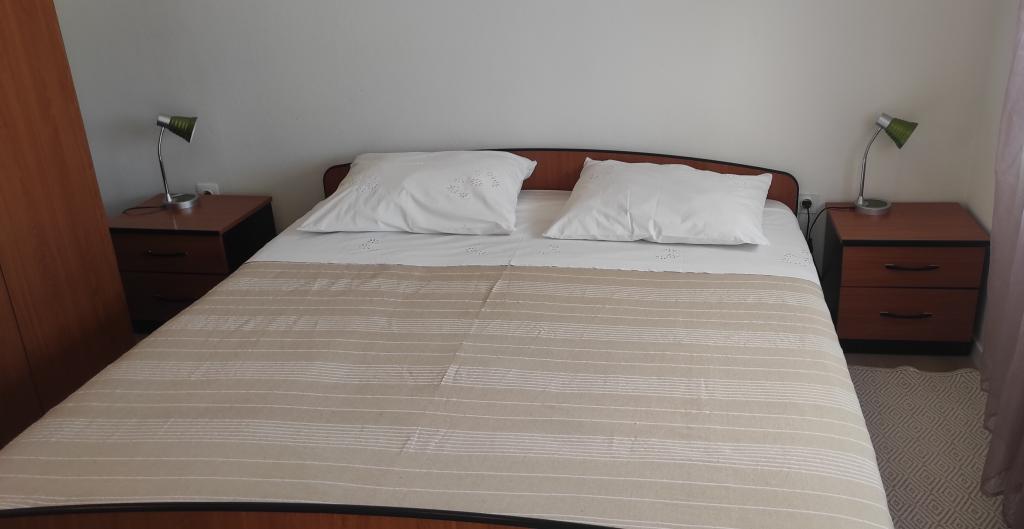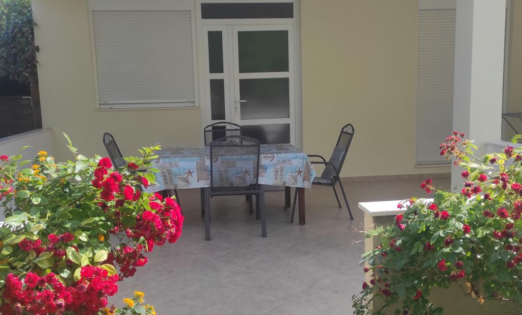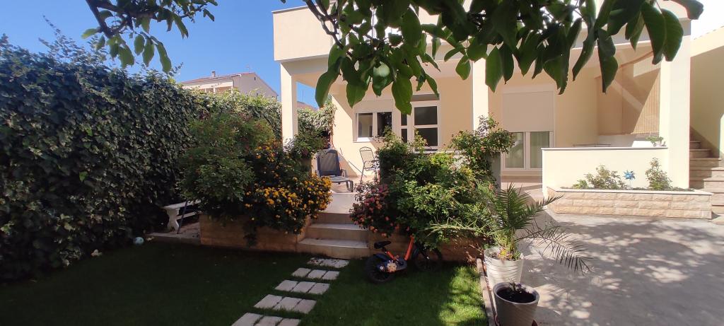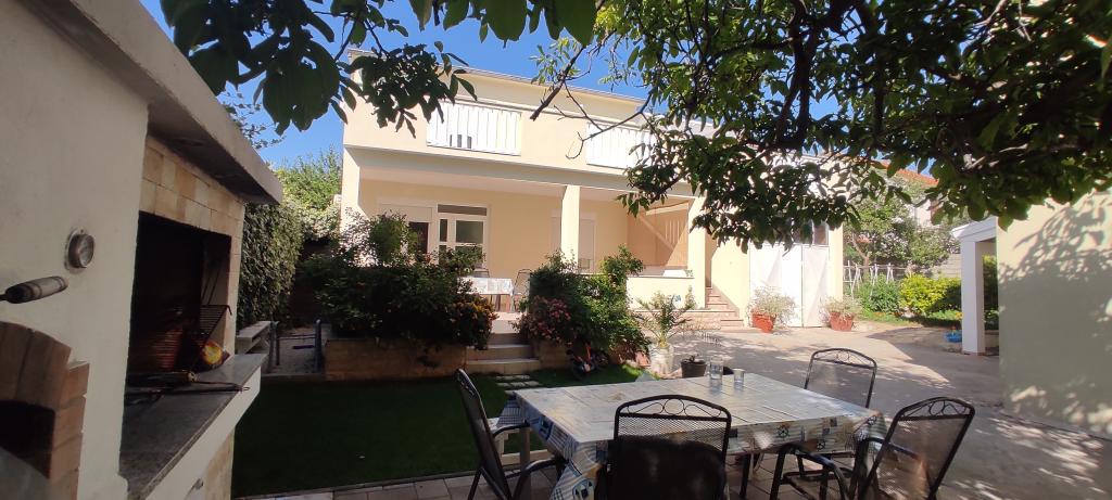 Het familiehuis met twee volledig uitgeruste appartementen ligt in een rustig deel van de stad, niet ver van het centrum (2 minuten lopen) en het strand (3 minuten lopen). Het gebouw wordt omgeven door een grote tuin met veel groen en schaduw en ligt wat terug van de weg, wat naast rust ook een gevoel van veiligheid geeft. Er is ook een grote privéparkeerplaats aan de voorkant en een grasveld waar gespeeld kan worden. Appartement A2+2 bevindt zich op de begane grond van het huis en bestaat uit een slaapkamer, keuken, eetkamer, woonkamer met slaapbank en badkamer. Er is een ruim overdekt terras aan de voorzijde. Appartement A4+2 bevindt zich op de eerste verdieping en bestaat uit twee slaapkamers, keuken, eetkamer, woonkamer met slaapbank en badkamer. Er zijn twee ruime overdekte terrassen aan de voorzijde. Alle gasten kunnen gebruikmaken van de grill in de tuin. De gastheren zijn vriendelijk en meegaand.