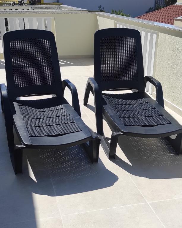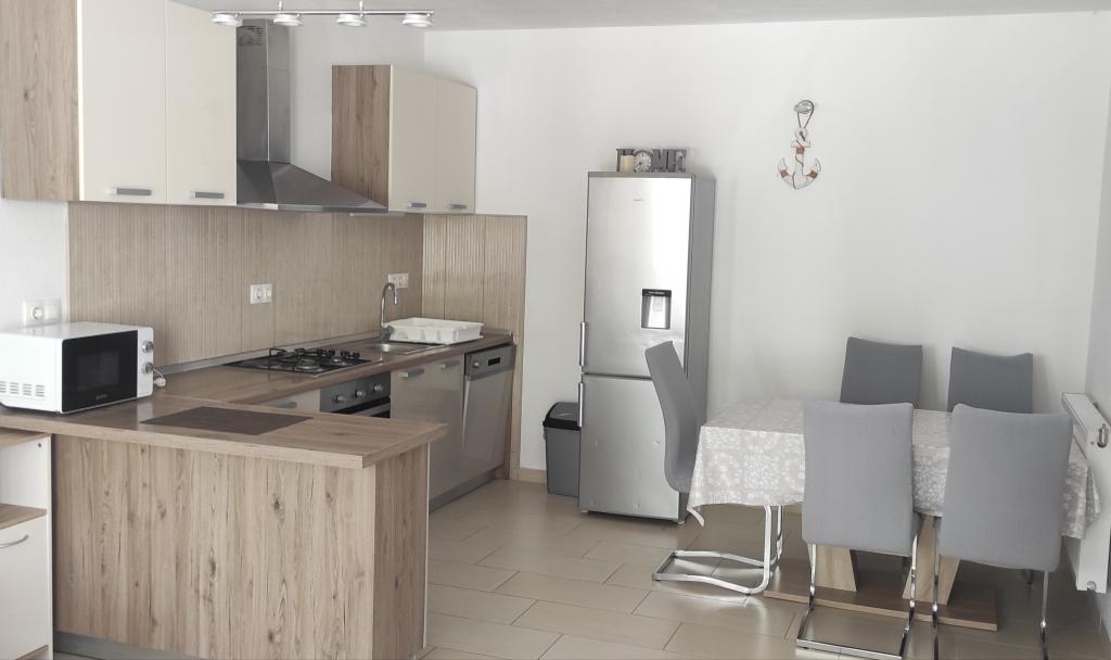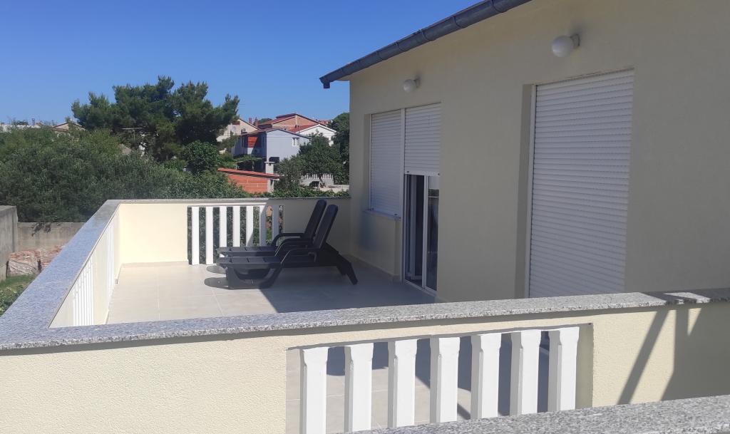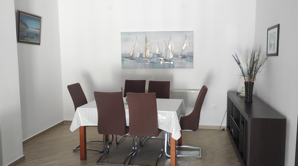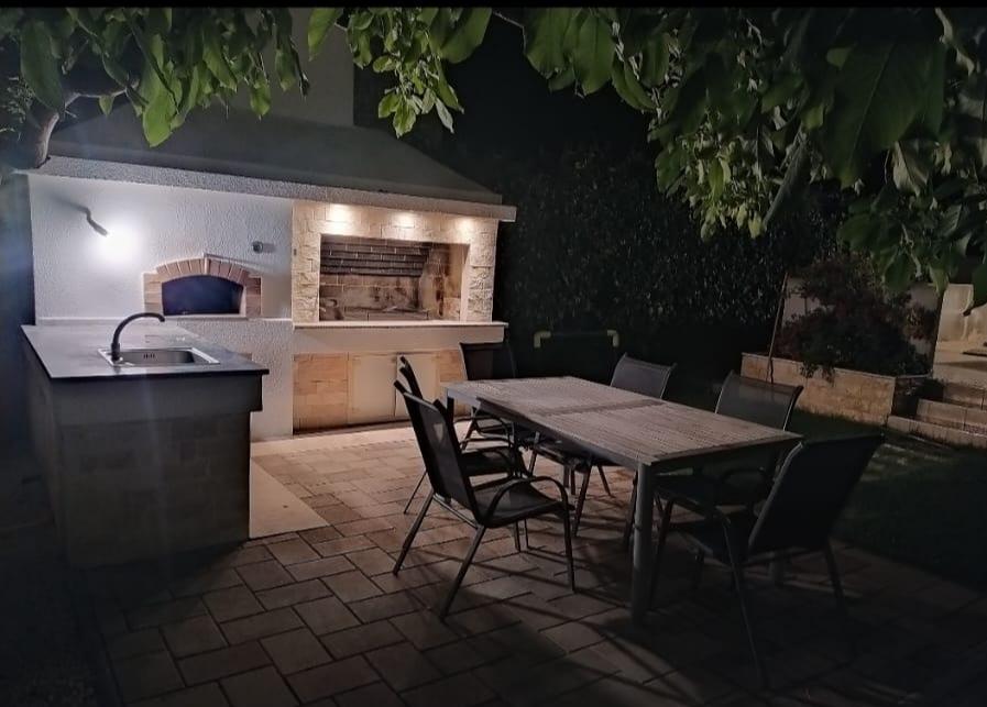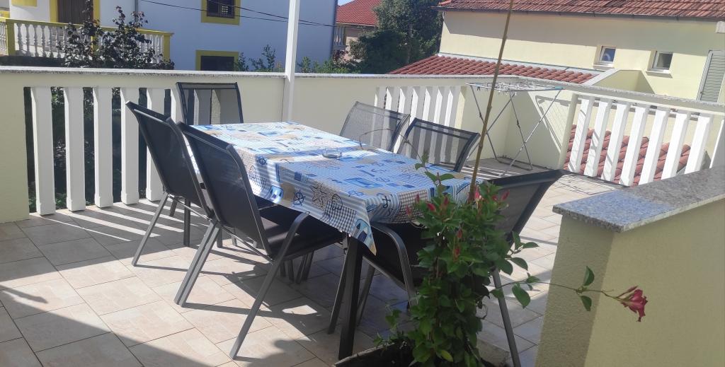 Het familiehuis met twee volledig uitgeruste appartementen ligt in een rustig deel van de stad, niet ver van het centrum (2 minuten lopen) en het strand (3 minuten lopen). Het gebouw wordt omgeven door een grote tuin met veel groen en schaduw en ligt wat terug van de weg, wat naast rust ook een gevoel van veiligheid geeft. Er is ook een grote privéparkeerplaats aan de voorkant en een grasveld waar gespeeld kan worden. Appartement A2+2 bevindt zich op de begane grond van het huis en bestaat uit een slaapkamer, keuken, eetkamer, woonkamer met slaapbank en badkamer. Er is een ruim overdekt terras aan de voorzijde. Appartement A4+2 bevindt zich op de eerste verdieping en bestaat uit twee slaapkamers, keuken, eetkamer, woonkamer met slaapbank en badkamer. Er zijn twee ruime overdekte terrassen aan de voorzijde. Alle gasten kunnen gebruikmaken van de grill in de tuin. De gastheren zijn vriendelijk en meegaand.
