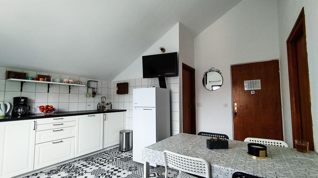 Volledig ingerichte appartementen in een rustig deel van de stad, op 3 minuten van het strand van Punta en op ongeveer 10 minuten van het centrum van Pakoštane. In de tuin vindt u een barbecue en een grote tafel om gezellig samen te zijn. Er zijn fietsen en een SUP beschikbaar. Voor de allerkleinsten zijn er speelgoed, een zandbak, een kitchenette, diverse voertuigen... alles wat u nodig heeft voor een aangename en ontspannen vakantie.