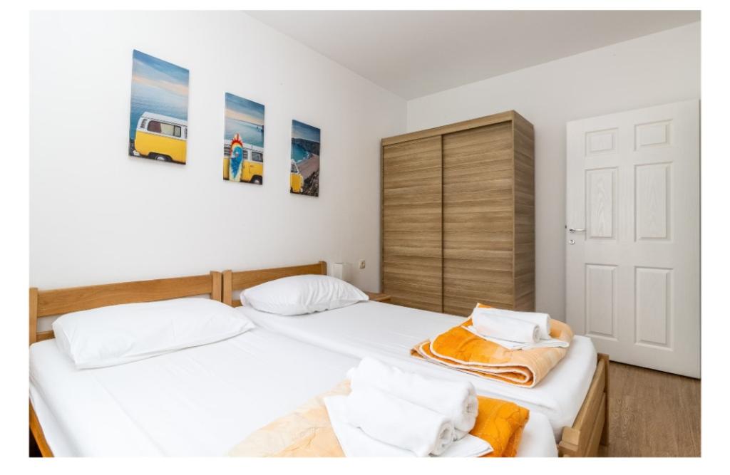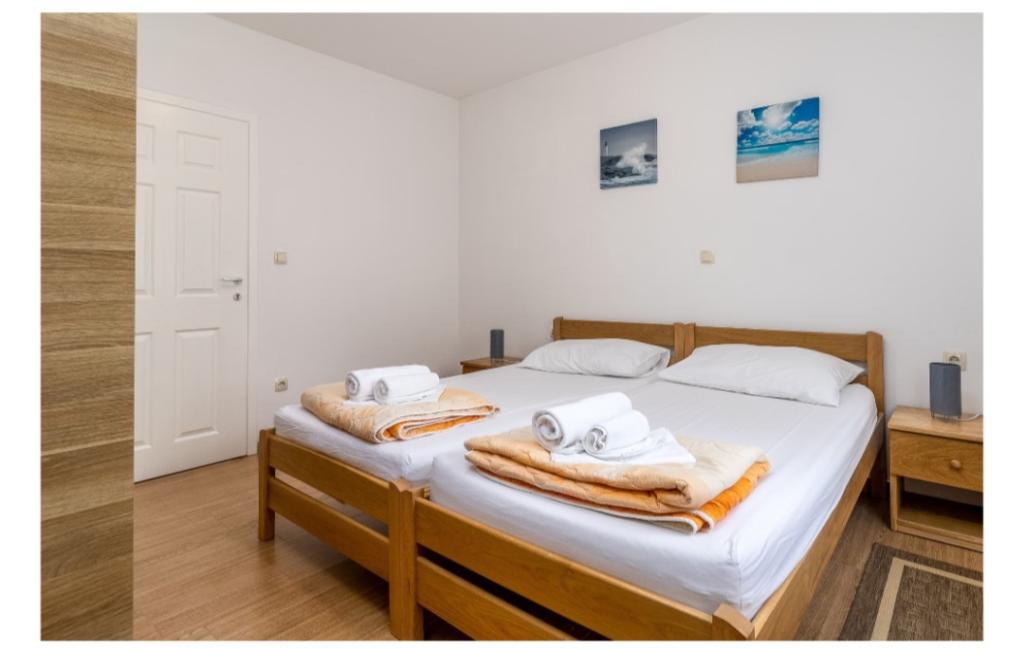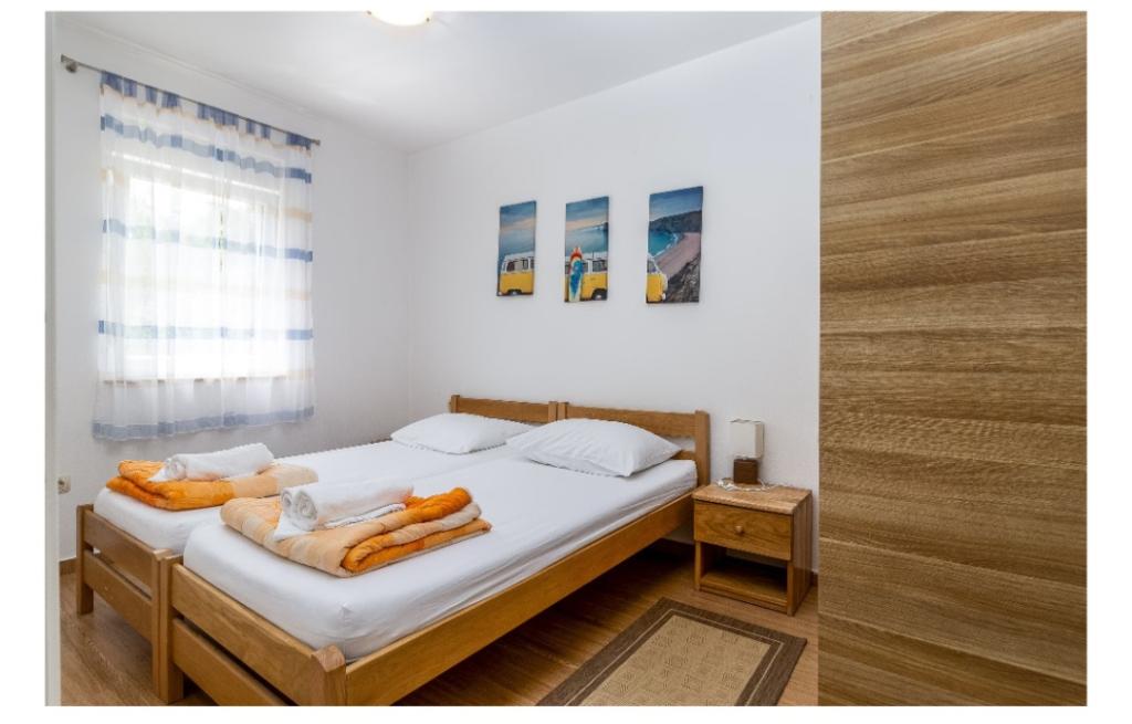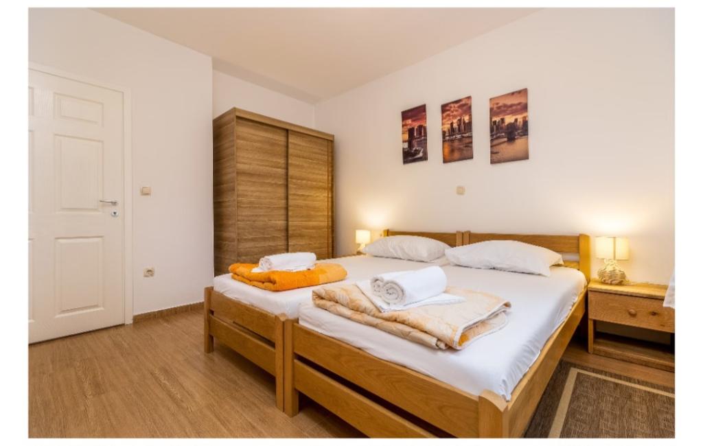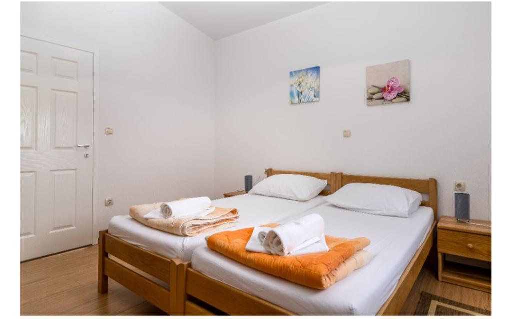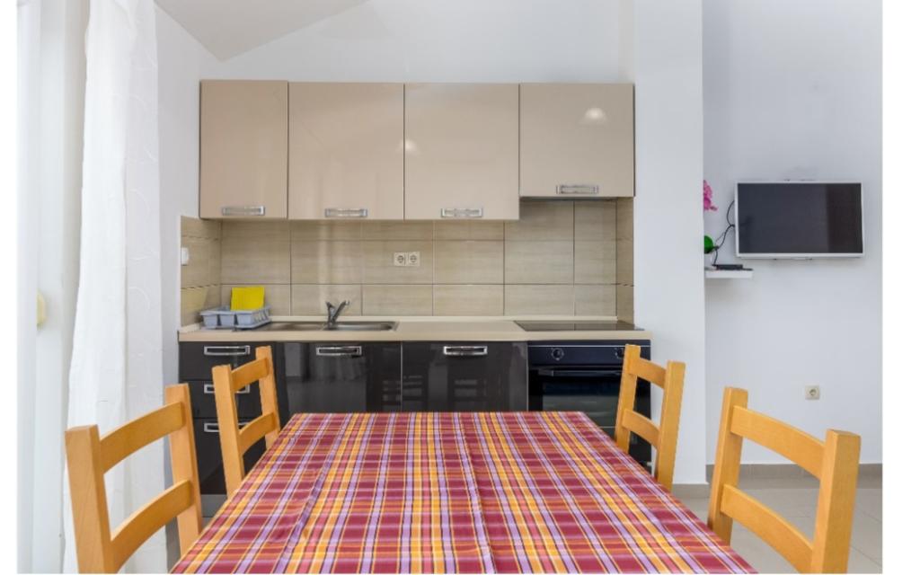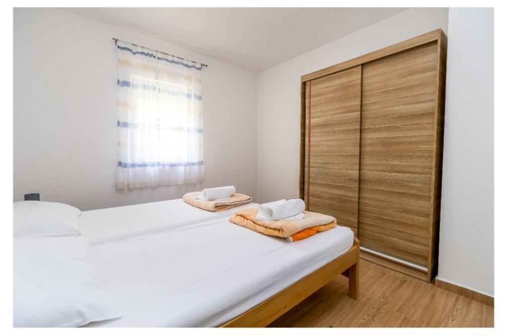Cuka appartementen zijn gelegen in een rustig deel van Pakostane, omringd door pijnbomen, gelegen op ong. 150 meter van de zee. De appartementen zijn nieuw gebouwd 2014 jaar. Ze zijn uitgerust met een vaatwasser, satelliet-tv lcd, beddengoed, handdoeken, airconditioning, wi-fi, fornuis, waterkoker, broodrooster. Parkeren is gelegen op de binnenplaats, waarvan 800 m2 waarin er een mogelijkheid tot barbecue meet. Centrum, winkel, bank, restaurants en andere horeca en toeristische voorzieningen bevinden zich op 5 minuten lopen van het huis Cuka