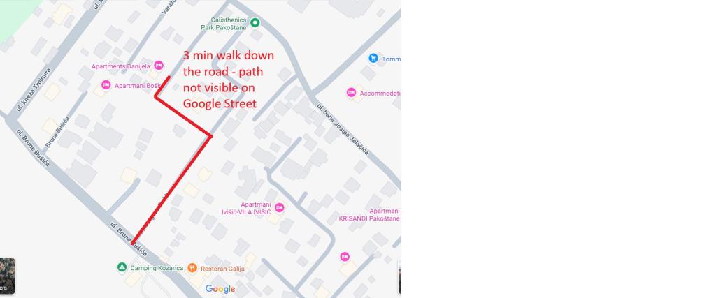 Appartementen Danijela liggen vlak bij het aantrekkelijke resort Pine Beach en de camping Adria-Kozarica. Onze gasten zijn meestal gezinnen met kleine kinderen. omdat we aan een rustige straat liggen zonder lawaai en verkeer. De straat is bij de ingang wat smaller en onverhard, maar wel kort. Er is gratis parkeergelegenheid voor de deur. Wij hebben geen uitzicht op zee. Het eerste strand ligt ongeveer 300 m verderop, via de camping Kozarica. De andere stranden liggen op ongeveer 500-1000 m afstand. Wij verhuren 2 appartementen op de eerste verdieping van het huis. wat ook de laatste is. Elk appartement heeft 2 slaapkamers, een keuken met woonkamer, een badkamer met douche en een klein balkon met luifel. De keuken is voorzien van een elektrische kookplaat, complete keukeninrichting, vaatwasser, koelkast met grote vriezer en wasmachine. Strijkijzer, strijkplank, haardroger en handdoeken zijn aanwezig, evenals linnengoed. Het Riba appartement beschikt over extra hoogwaardige matrassen (Nieuw) voor een optimale nachtrust. De overige bedden zijn voorzien van hoogwaardige matrastoppers en matrassen die, afhankelijk van het bed, 2-3 jaar oud zijn.