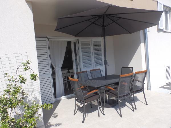 We hebben een geweldig verblijf gehad in het appartement van Sandra. Het appartement is modern, zeer goed uitgerust en smaakvol ingericht. Vanaf het terras kunt u genieten van een klein uitzicht op zee zeer merkbaar. Deze is groot genoeg om comfortabel te zijn tijdens de maaltijden. Het beddengoed is echt comfortabel. Wat ons betreft, vonden we dat de situatie ideaal was vanwege het stadscentrum, zo stil en toch dichtbij. Pakostane is een centrale stad die en bezoek de regio voor meerdere dagen. En bovendien is Sandra een opmerkelijke gastheer. Het is onmogelijk om het beter te doen. We kunnen haar alleen maar uit het diepst van haar hart bedanken voor haar welkom. We raden zonder aarzeling aan alle vakantiegangers. Zoek niet verder dan Sandra voor een paar dagen in deze regio. Het is 20/20! We hebben niet de gelegenheid gehad om afscheid van haar te nemen omdat ze weg was toen we weggingen, dus we kussen haar vandaag voor het bijdragen aan 6 heerlijke vakantiedagen.