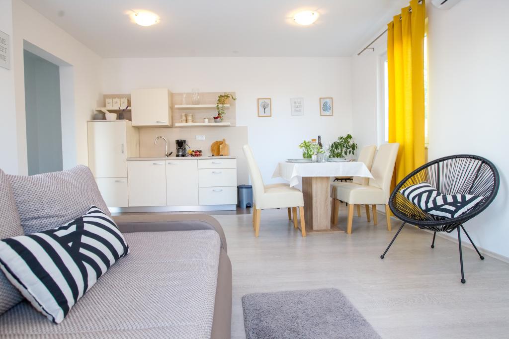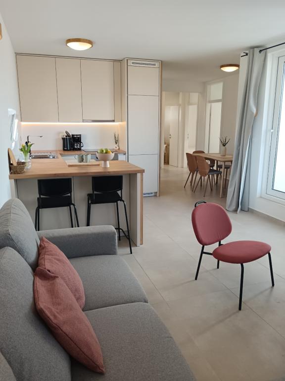 We hebben er voor 9 dagen, op het einde van augustus en begin september 2016 en we hadden echt een geweldige tijd. Accommodatie was schoon, zeer mooi, comfortabel, met alle benodigde benodigdheden. Keuken was goed uitgerust. Appartement beschikt over een groot, mooi terras - balkon bereikbaar vanuit de keuken en vanuit de kamer ook. We hebben er 3 jaar oud en de baby 9 maanden oud zijn geweest met twee kinderen, en ze hield echt van deze plek. Strand is heel dichtbij, nog beter met twee kleine kinderen. Het centrum van de stad is in de buurt, ook een aantal boodschappen en restaurants. Dank u voor de grote vakantie, zullen we u graag opnieuw te bezoeken.