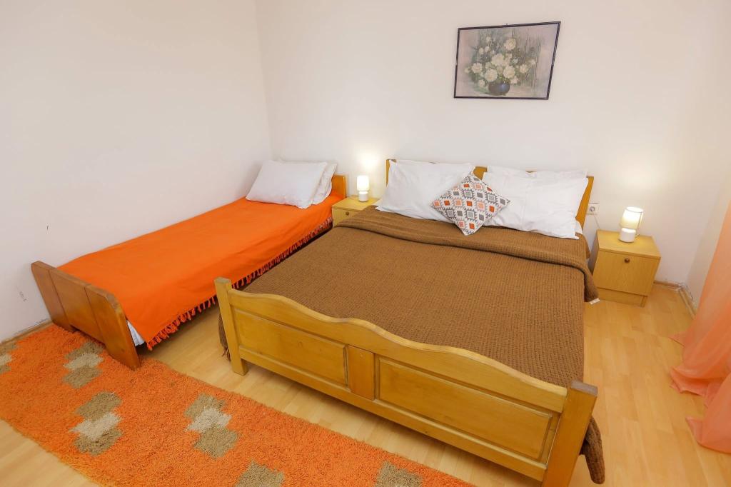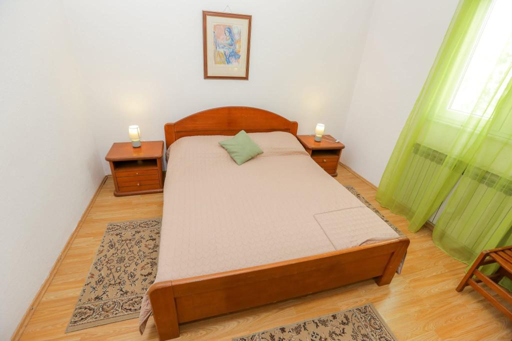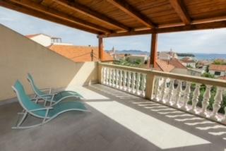 Het huis ligt op 300 meter van het stadscentrum en het stadsstrand. De modern ingerichte appartementen op de eerste en tweede verdieping hebben grote terrassen met uitzicht op de Kornati-eilanden. Rustige buurt vlakbij de markt, dokter en bushalte. Grote flatscreen-tv's met meer dan 100 programma's in verschillende talen. Achter het huis bevindt zich een tuin met barbecue.